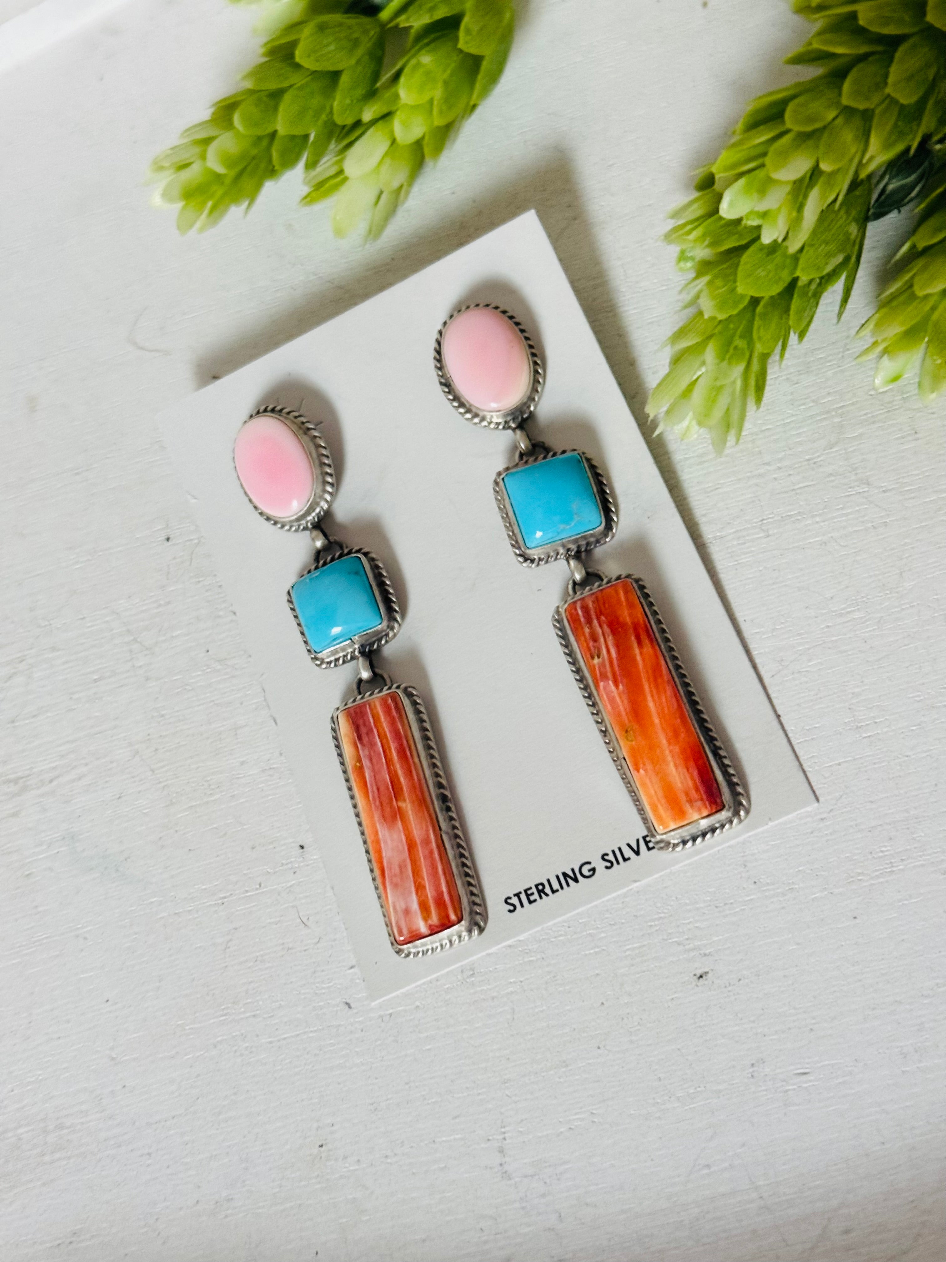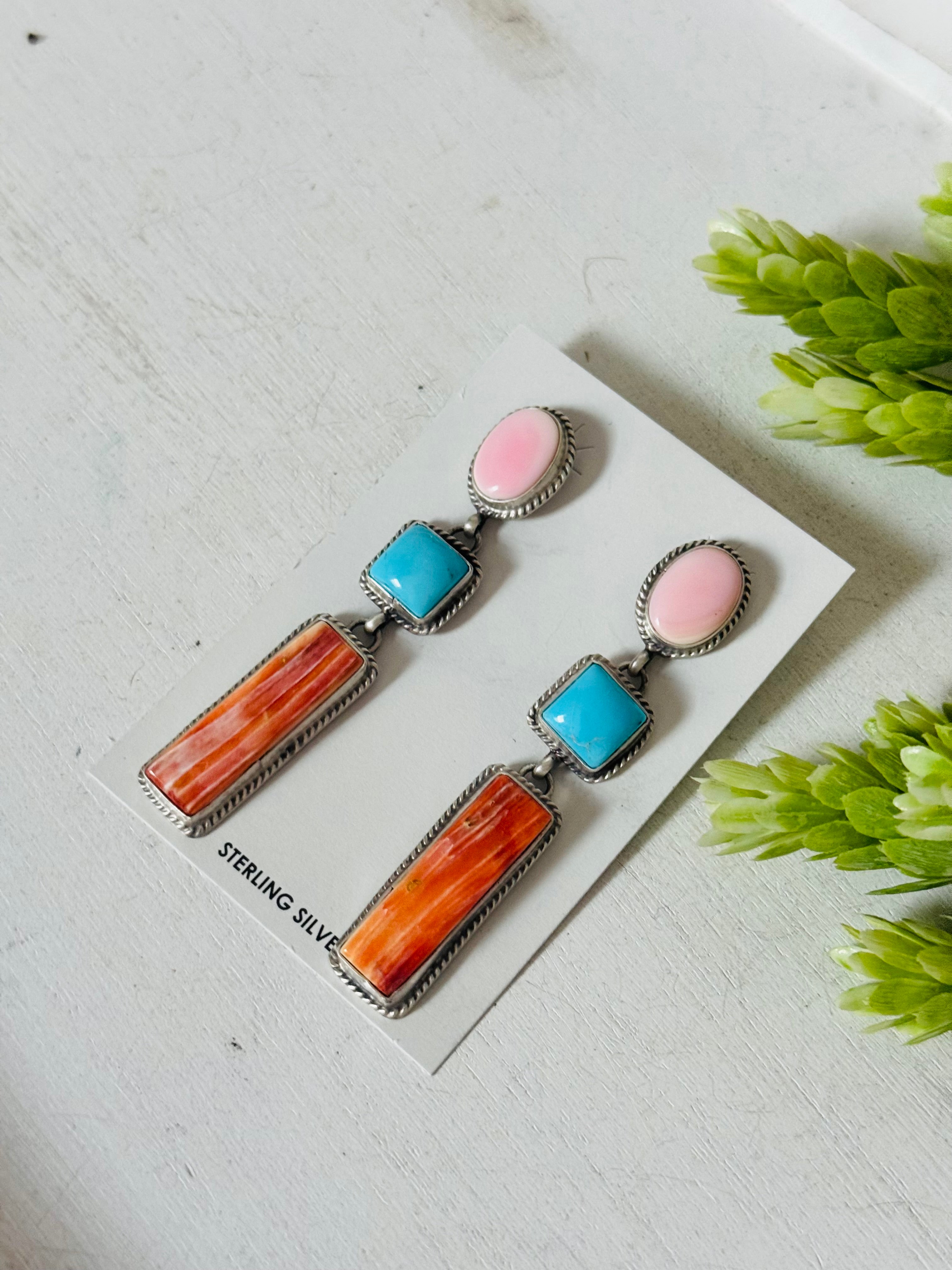 Marcella James Multi Stone & Sterling Silver Post Dangle Earrings