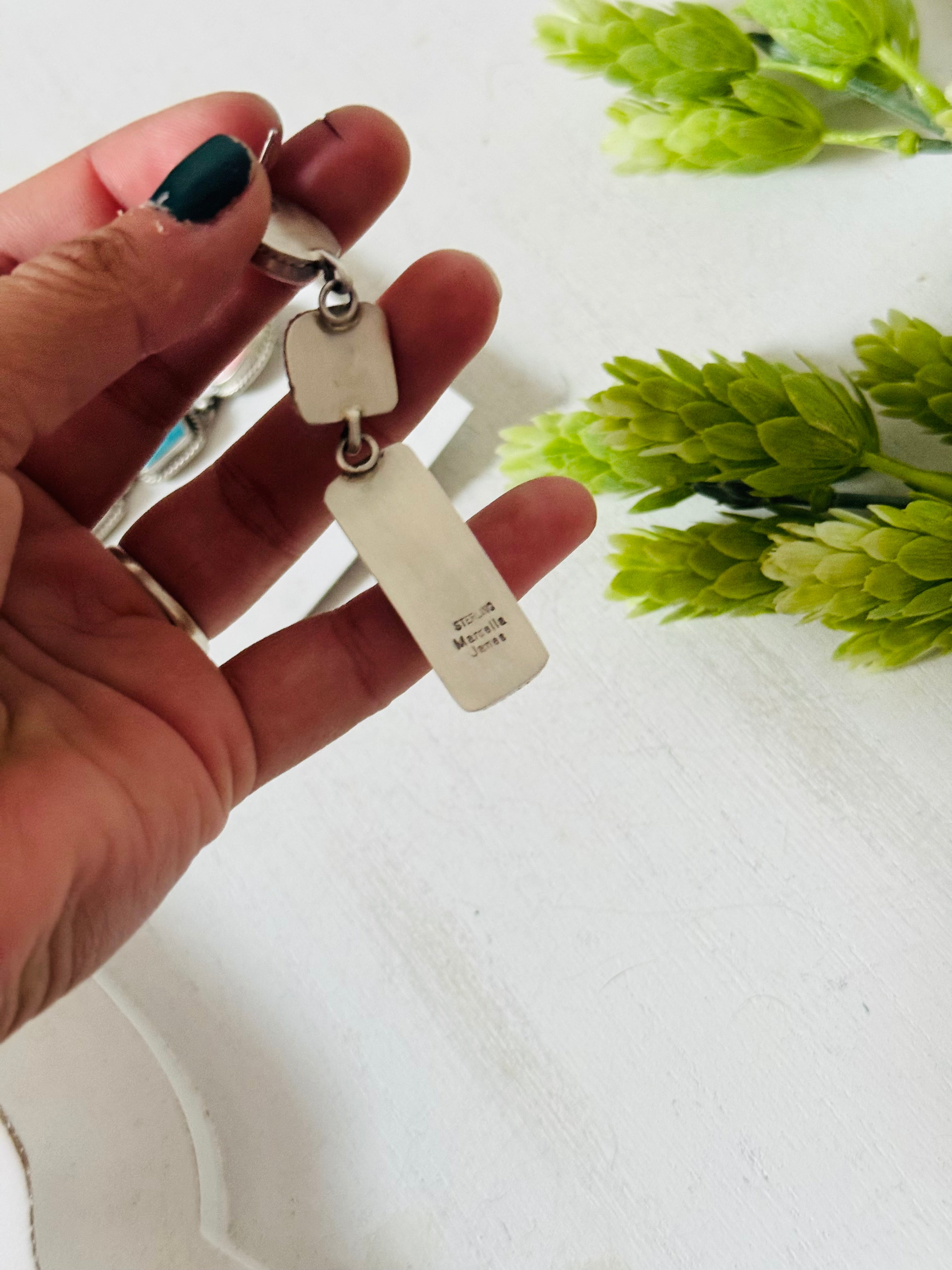 Marcella James Multi Stone & Sterling Silver Post Dangle Earrings. They measure 3 1/8 inches long and 1/2 of an. inch wide. Stamped sterling silver and signed by the artist.