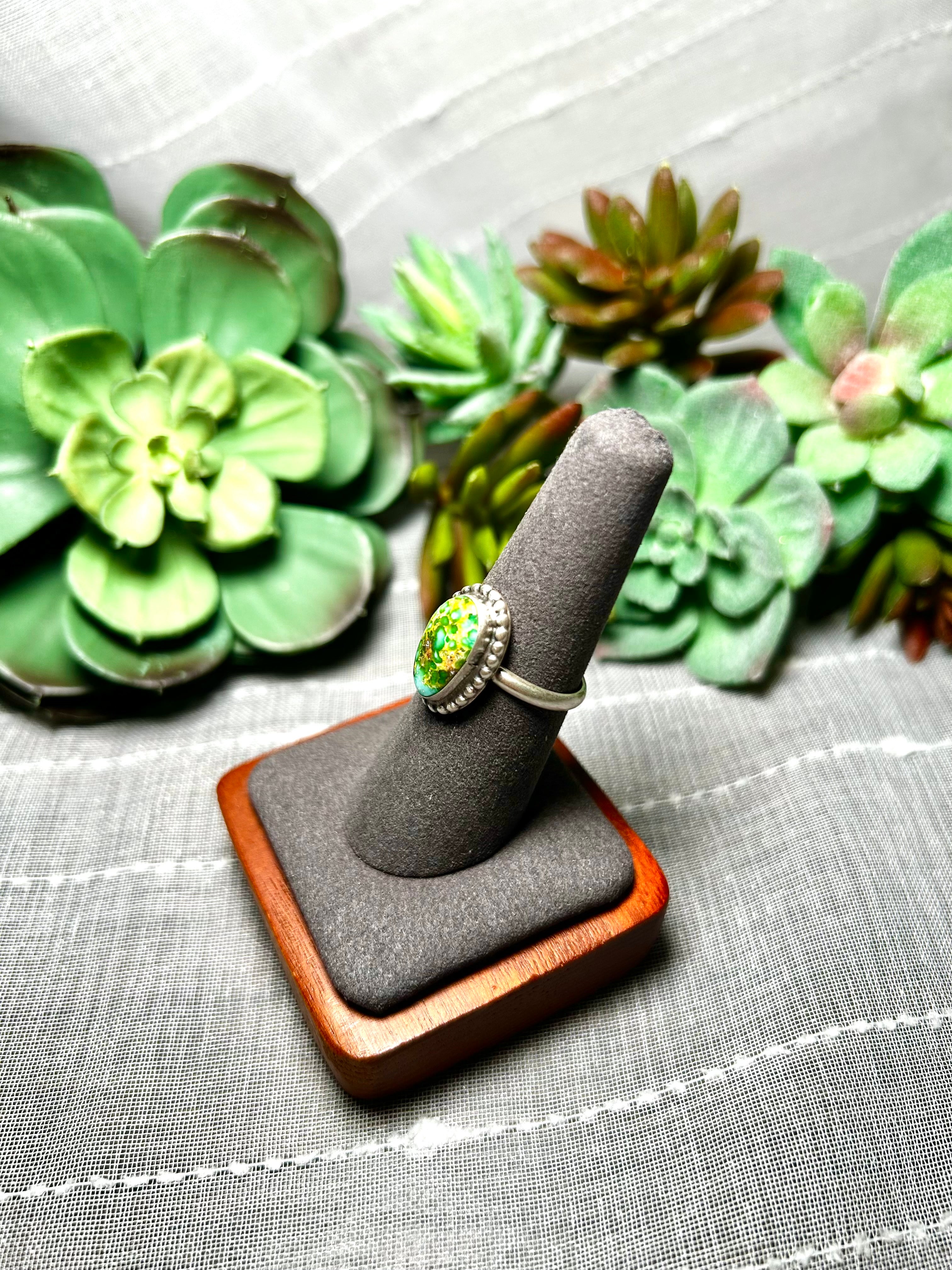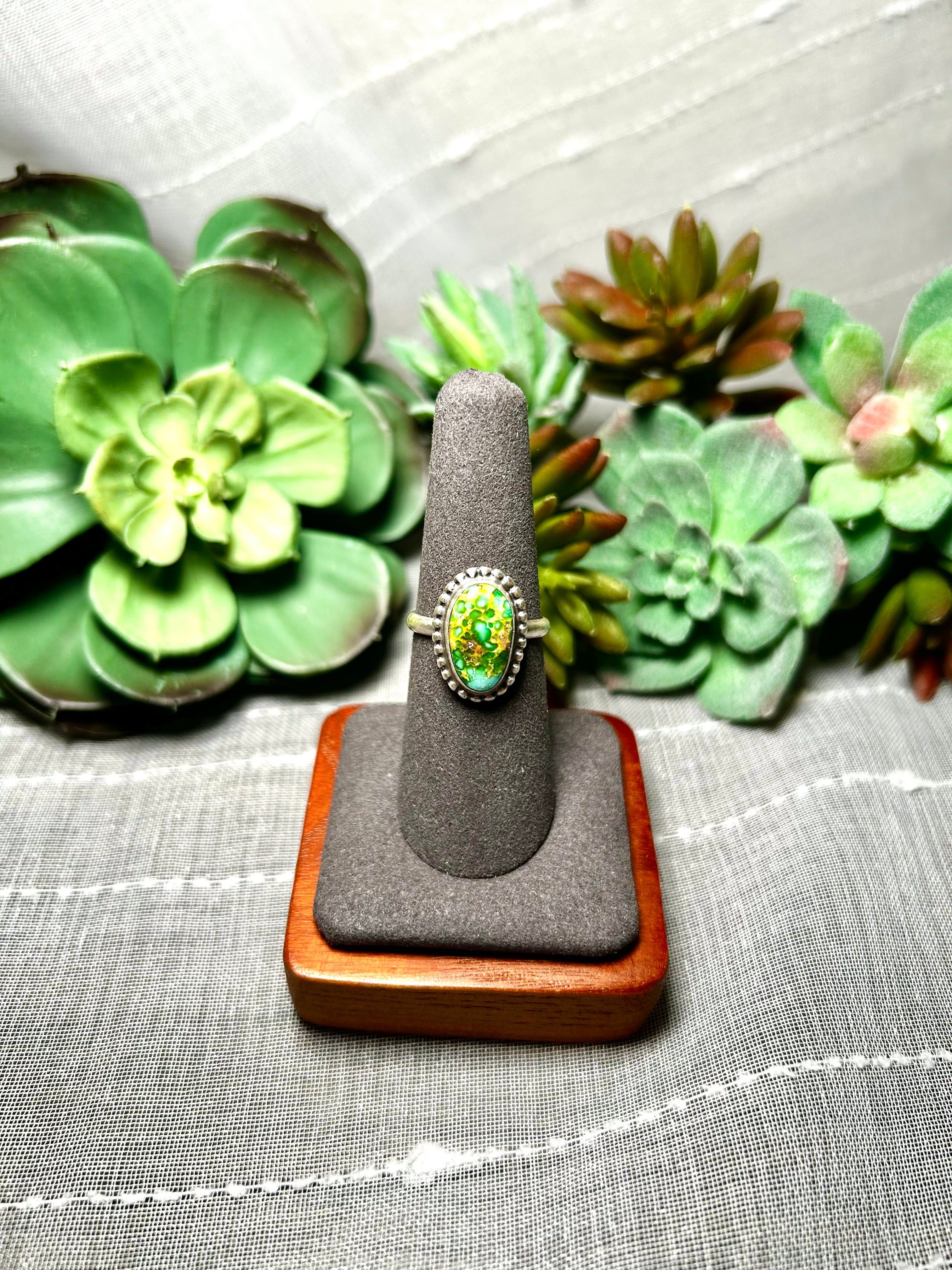 Navajo Made Sonoran Mountain Turquoise & Sterling Silver Ring Size 7.5