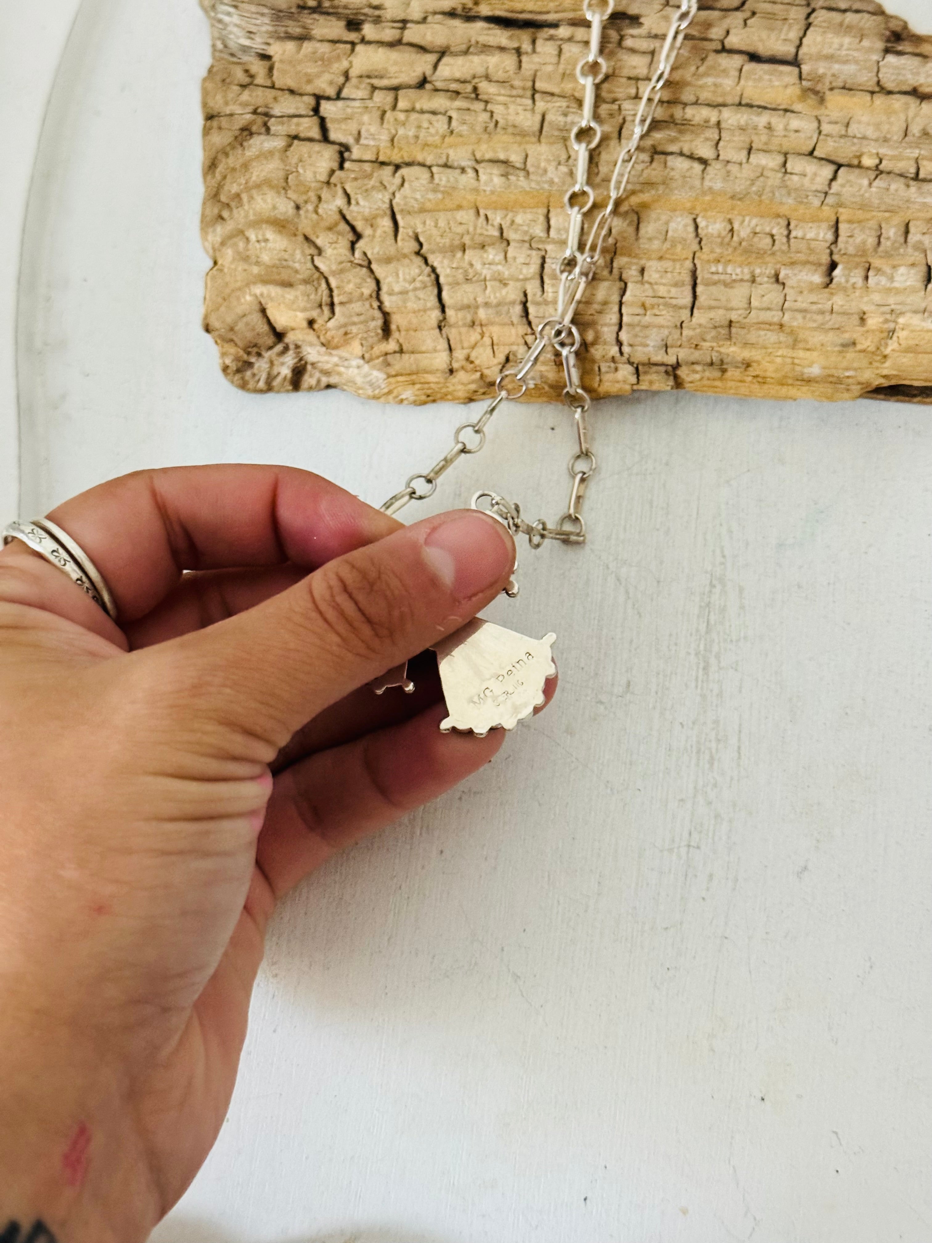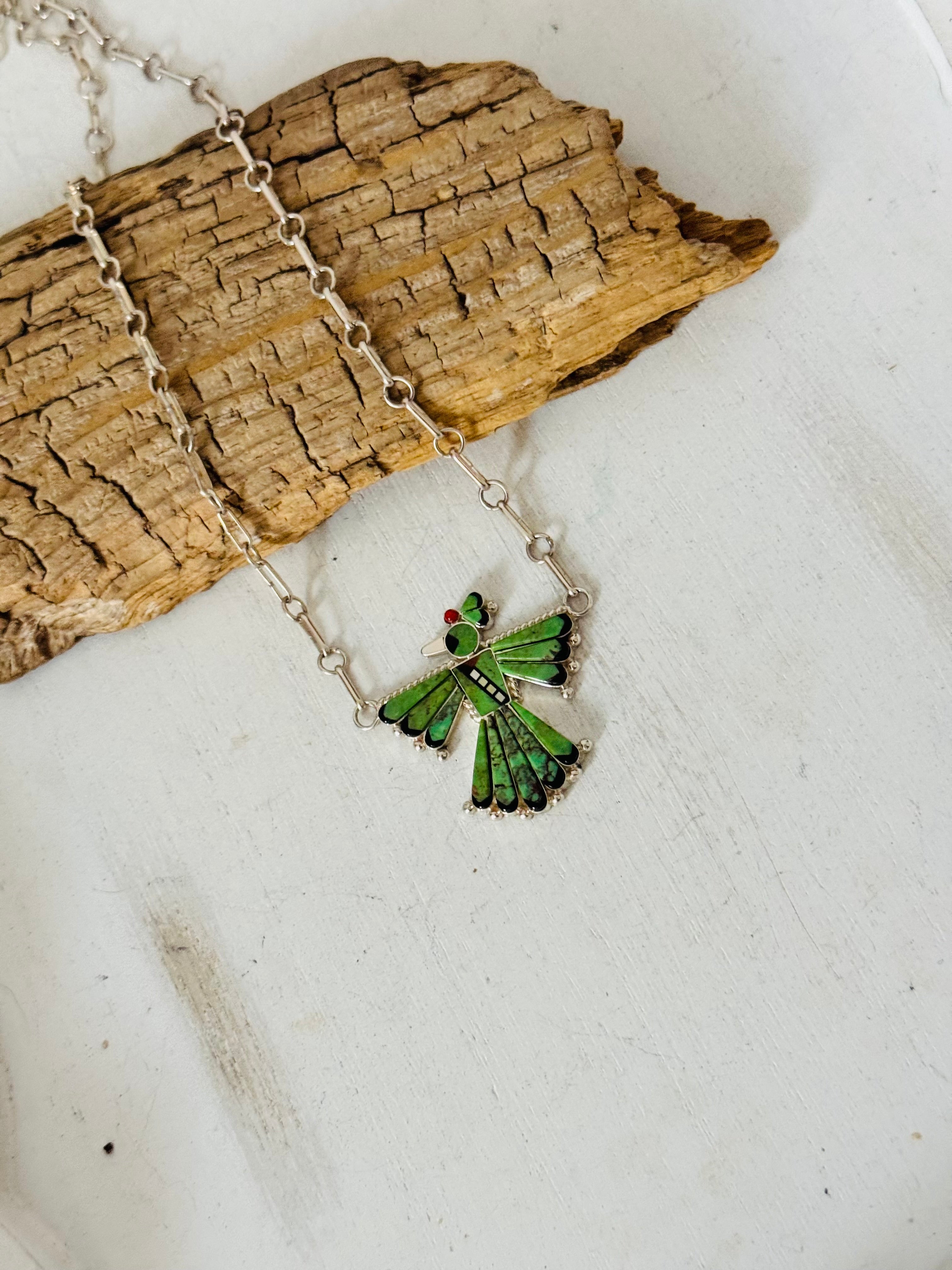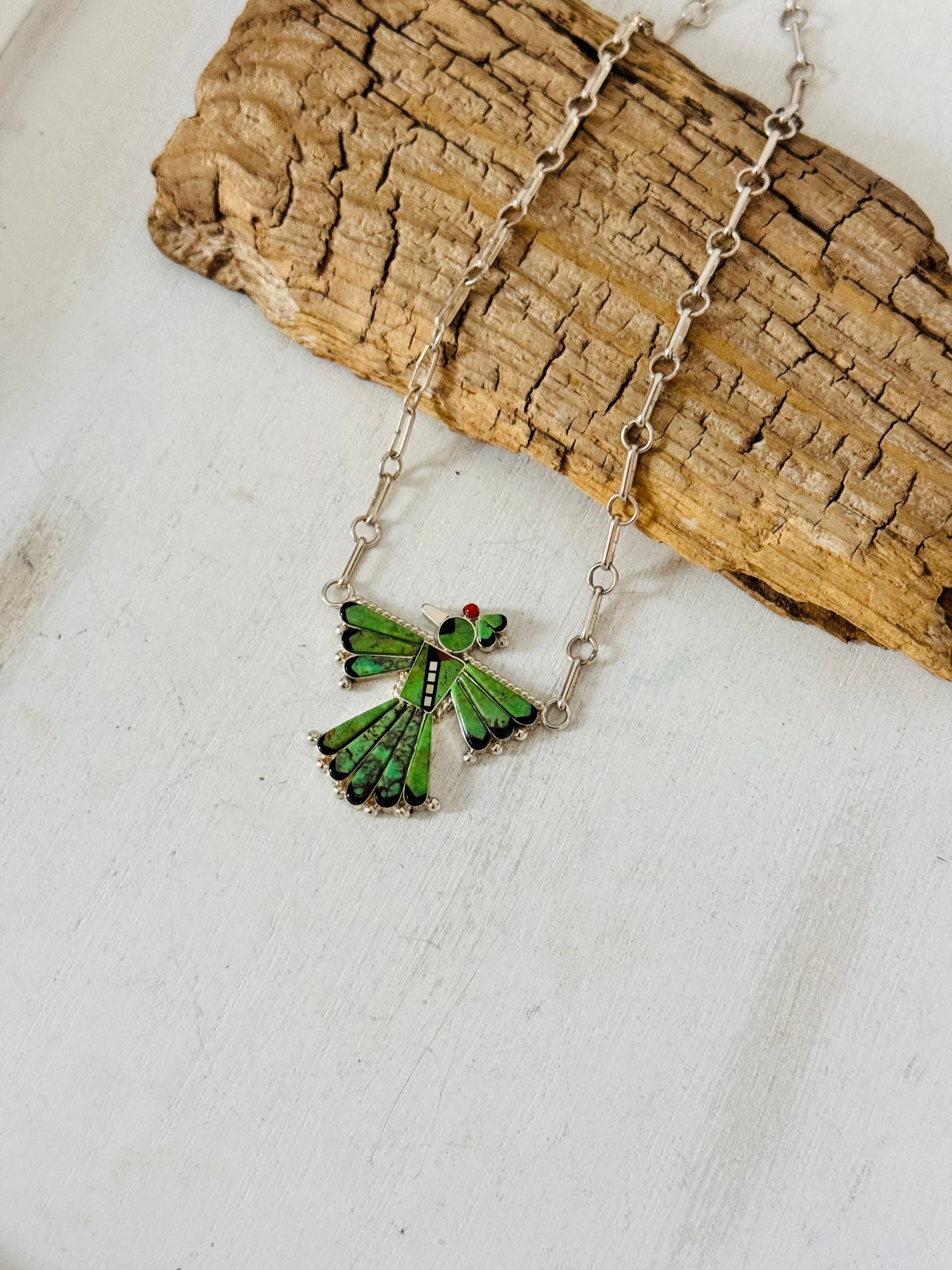 Michelle Pena Multi Stone & Sterling Silver Thunderbird Inlay Necklace. It measures just under 20 inches long. Stamped and signed