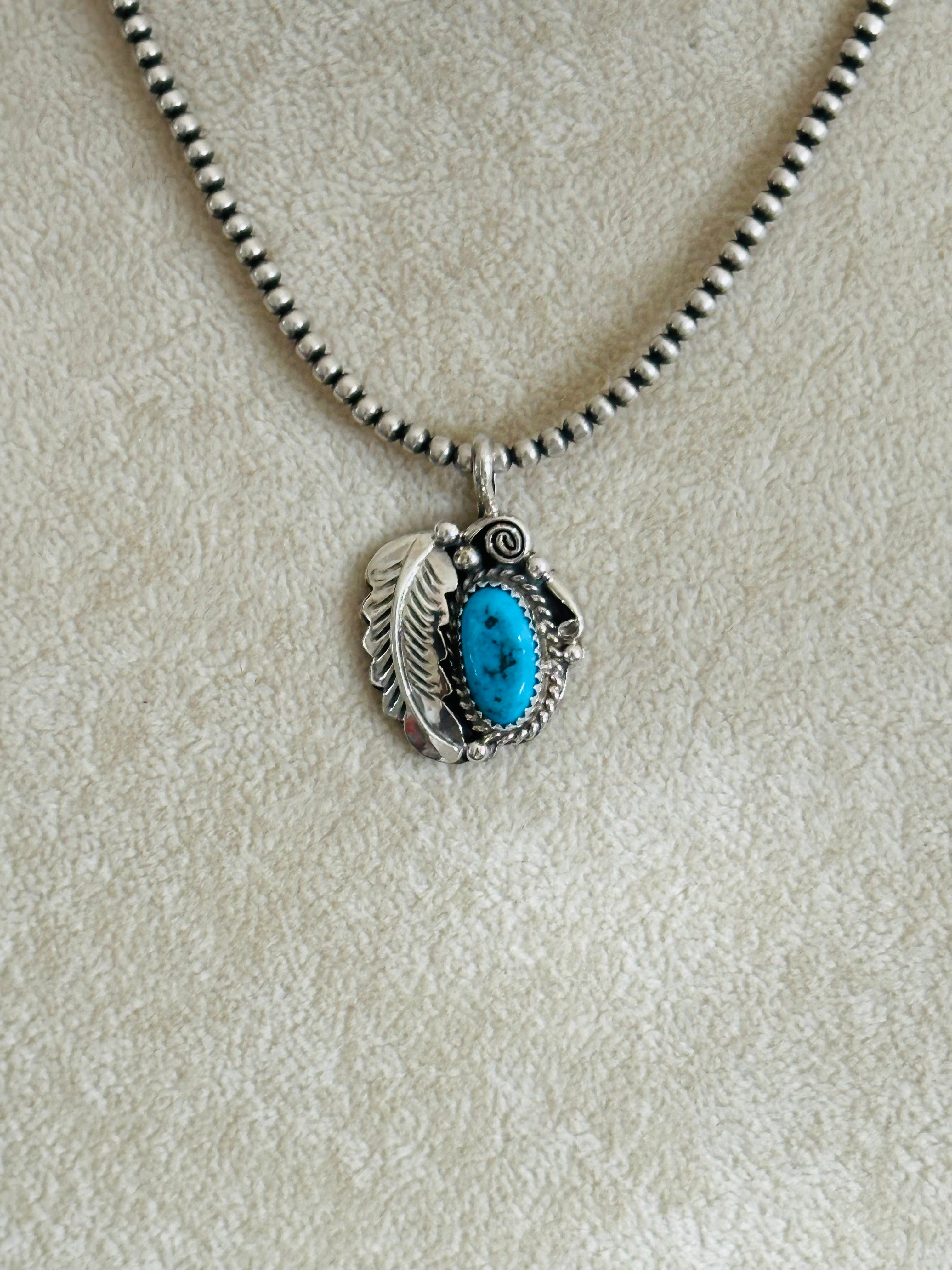 Beautiful pendant. Julia Etsitty Kingman Turquoise & Sterling Silver Pendant. It measures 1 3/8 inches long and 7/8 of an inch wide. Pendant Only. Signed by the artist and stamped sterling silver.