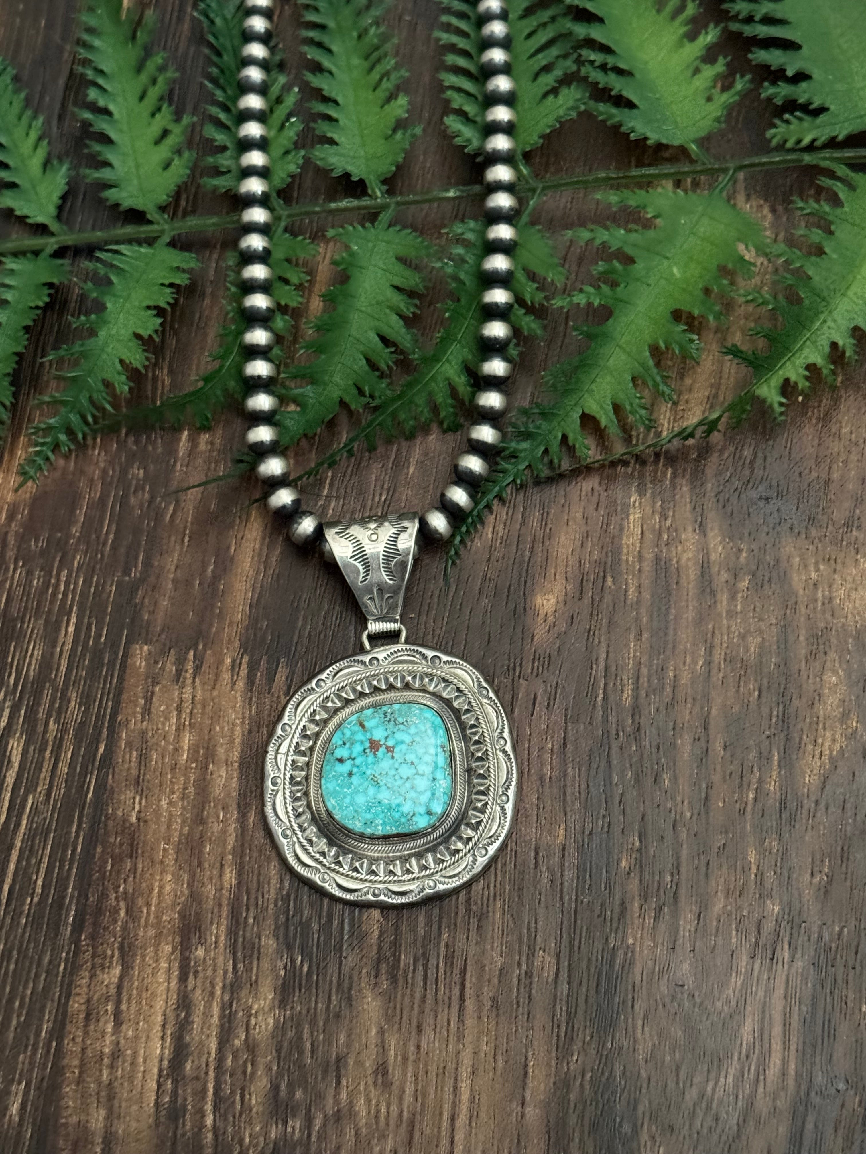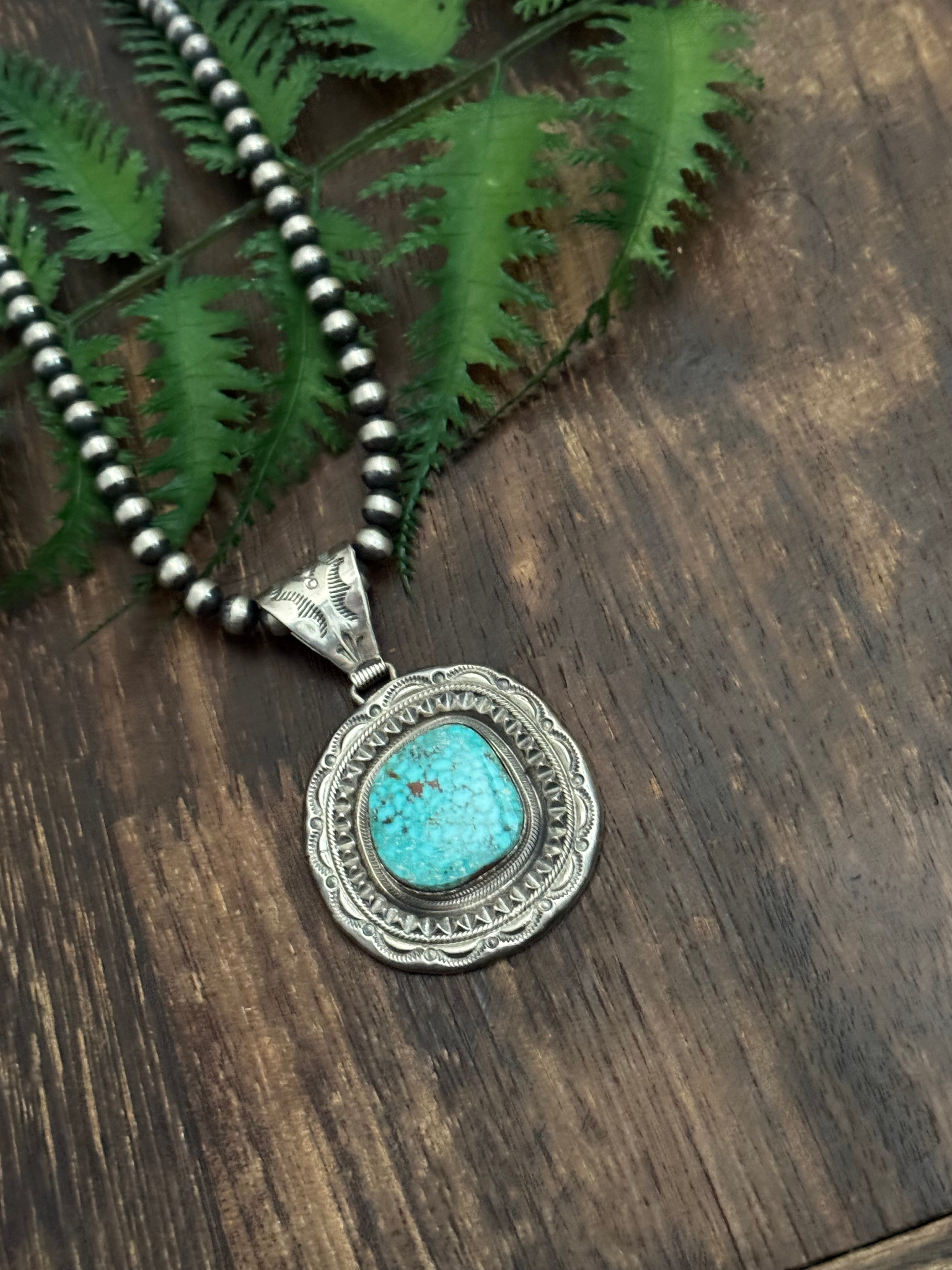 Navajo Handmade Cripple Creek Turquoise & Sterling Silver Pendant