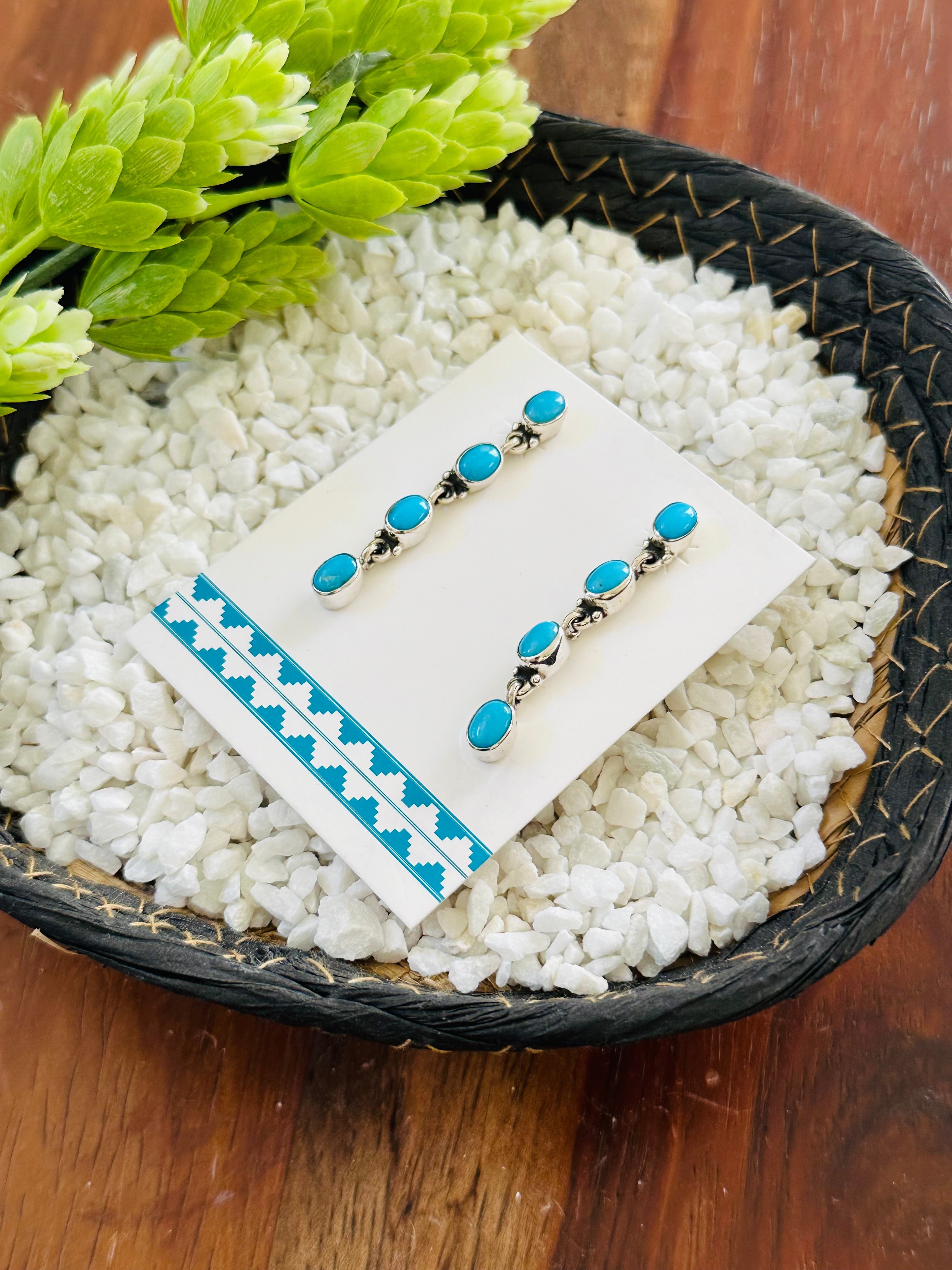 Navajo Handmade Kingman Turquoise & Sterling Silver Post Dangle Earrings