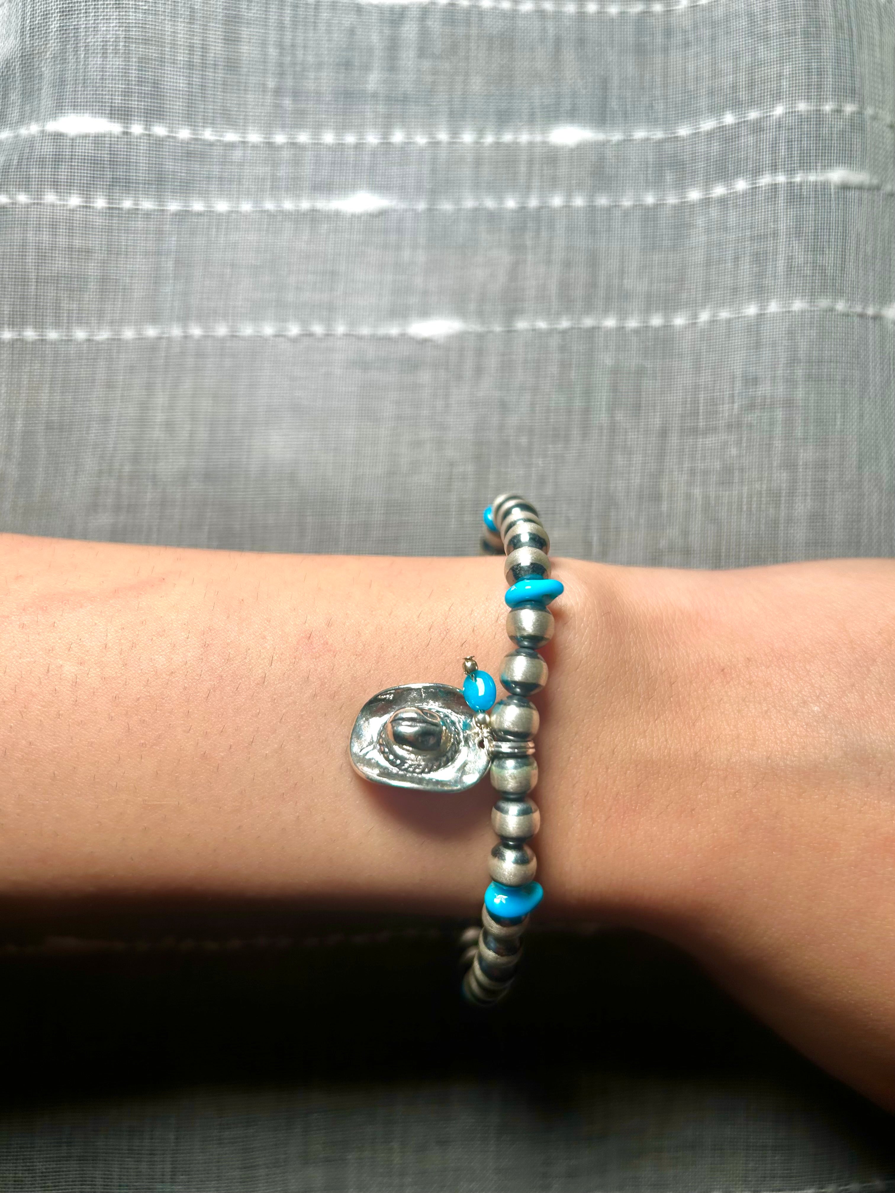 Navajo Made Kingman Turquoise & Sterling Silver Strung Stretchy Bracelet