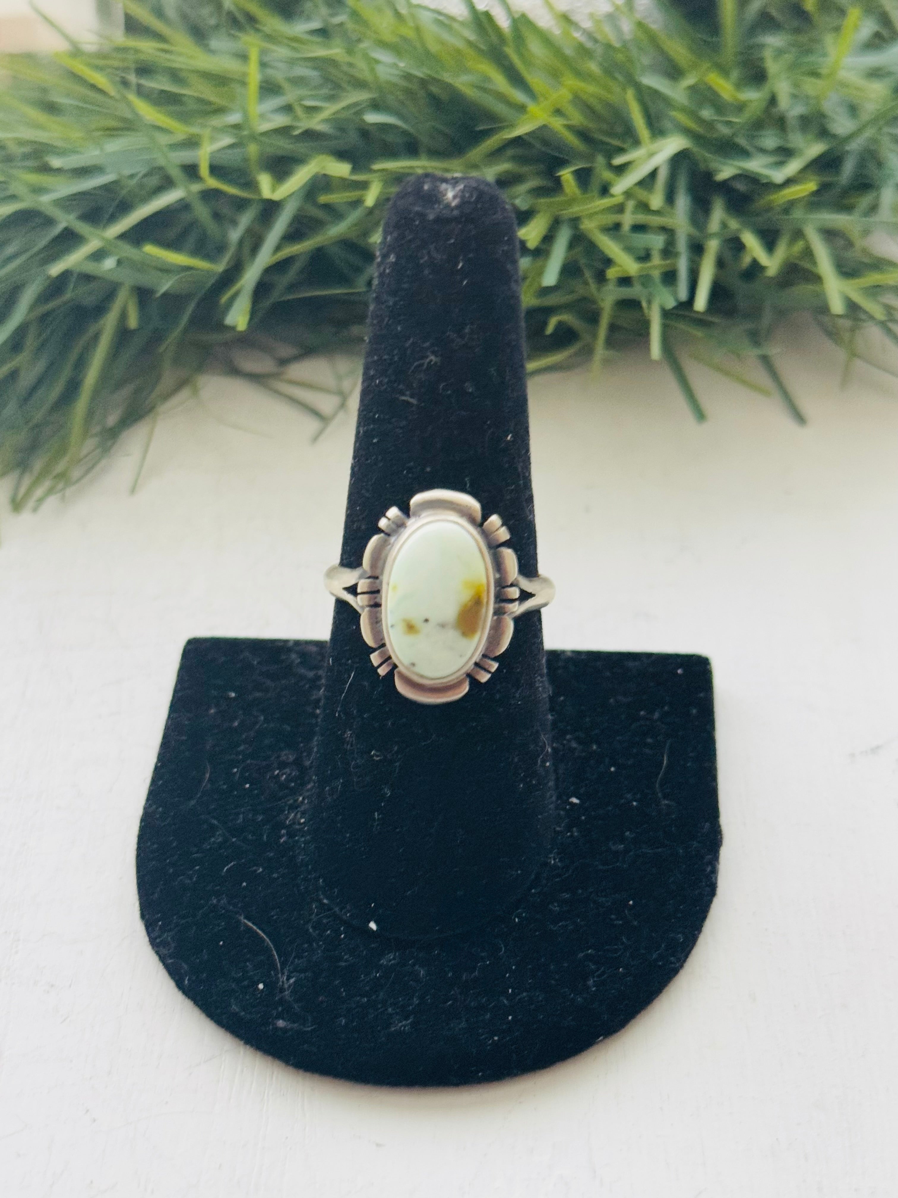 Amazing ring. Navajo Handmade Palomino Variscite & Sterling Silver Rings. It measures just over 7/8 of an inch long and 5/8 of an inch wide. Signed by the artist and stamped sterling silver.