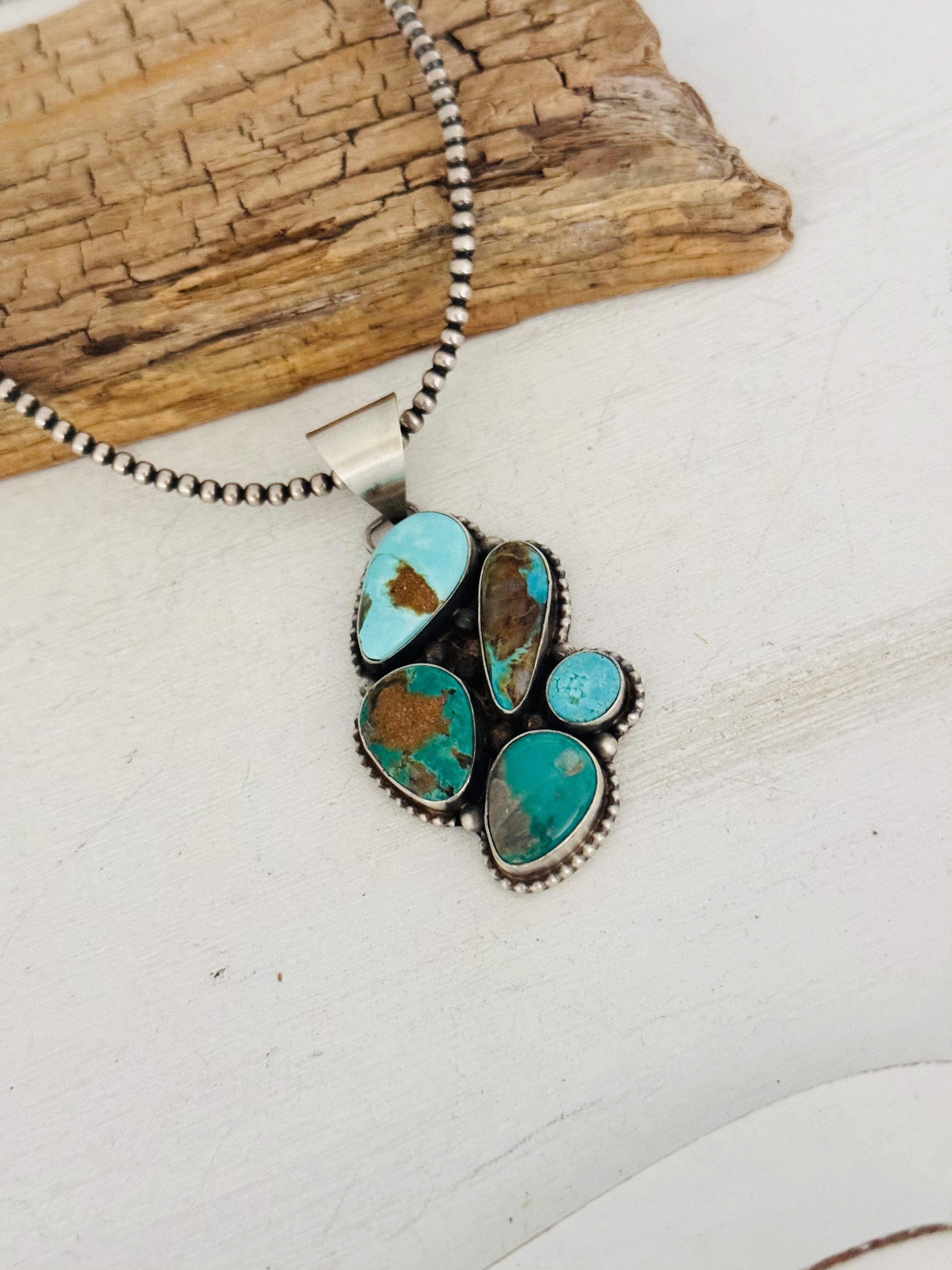 Navajo Handmade Royston Turquoise & Sterling Silver Cluster Pendant
