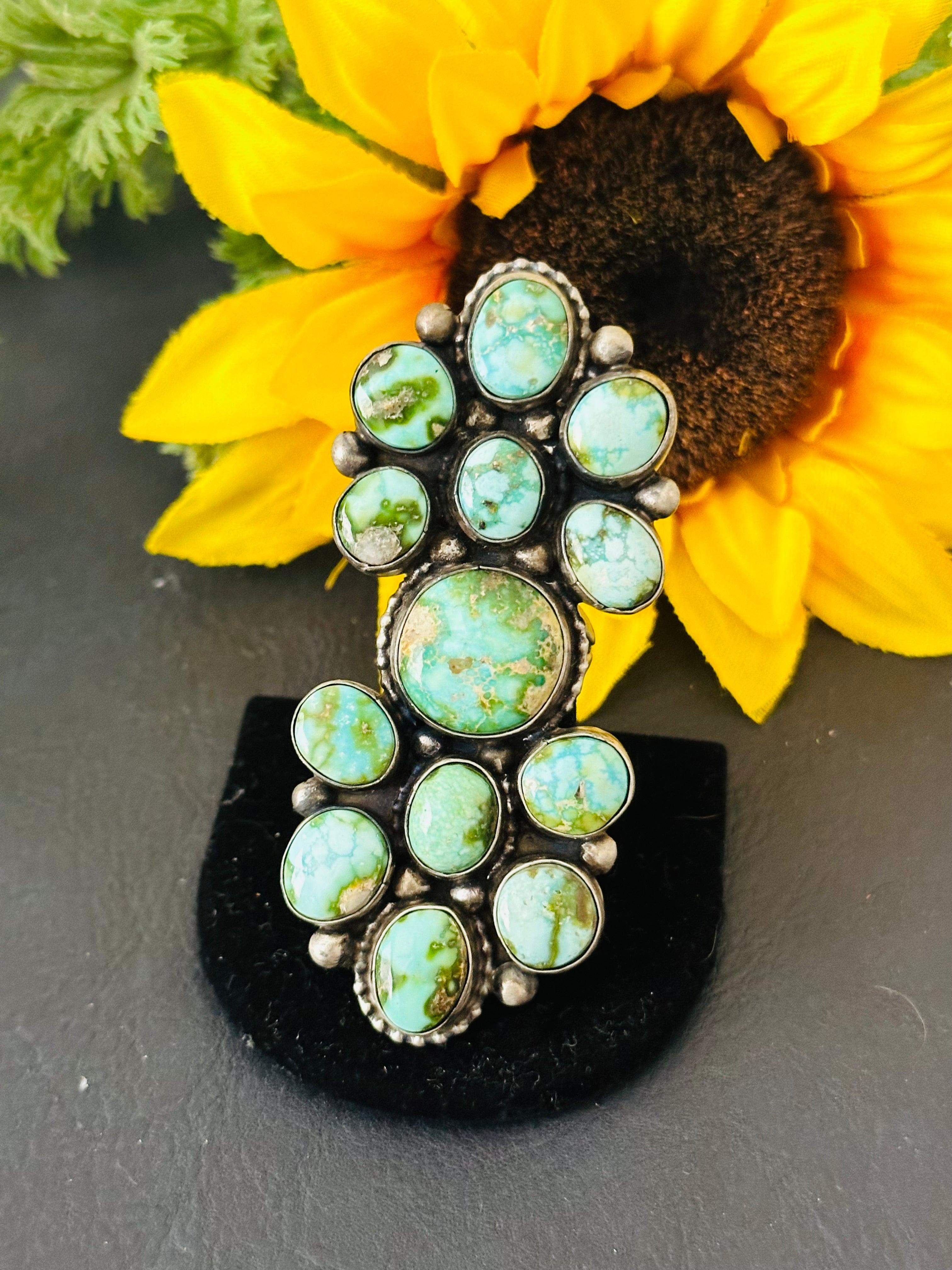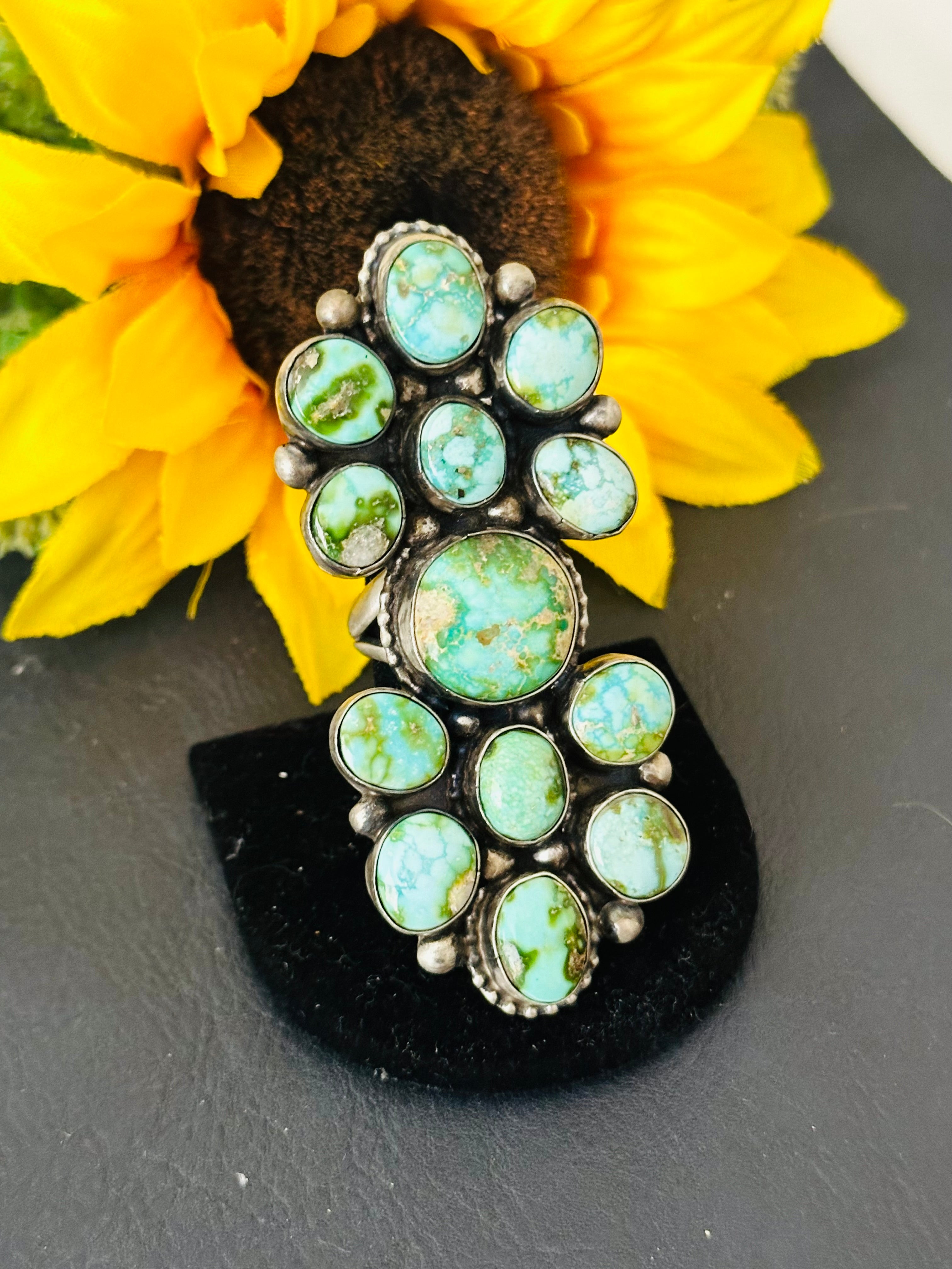 Navajo Handmade Sonoran Mountain Turquoise & Sterling Silver Cluster Ring Size 8.5