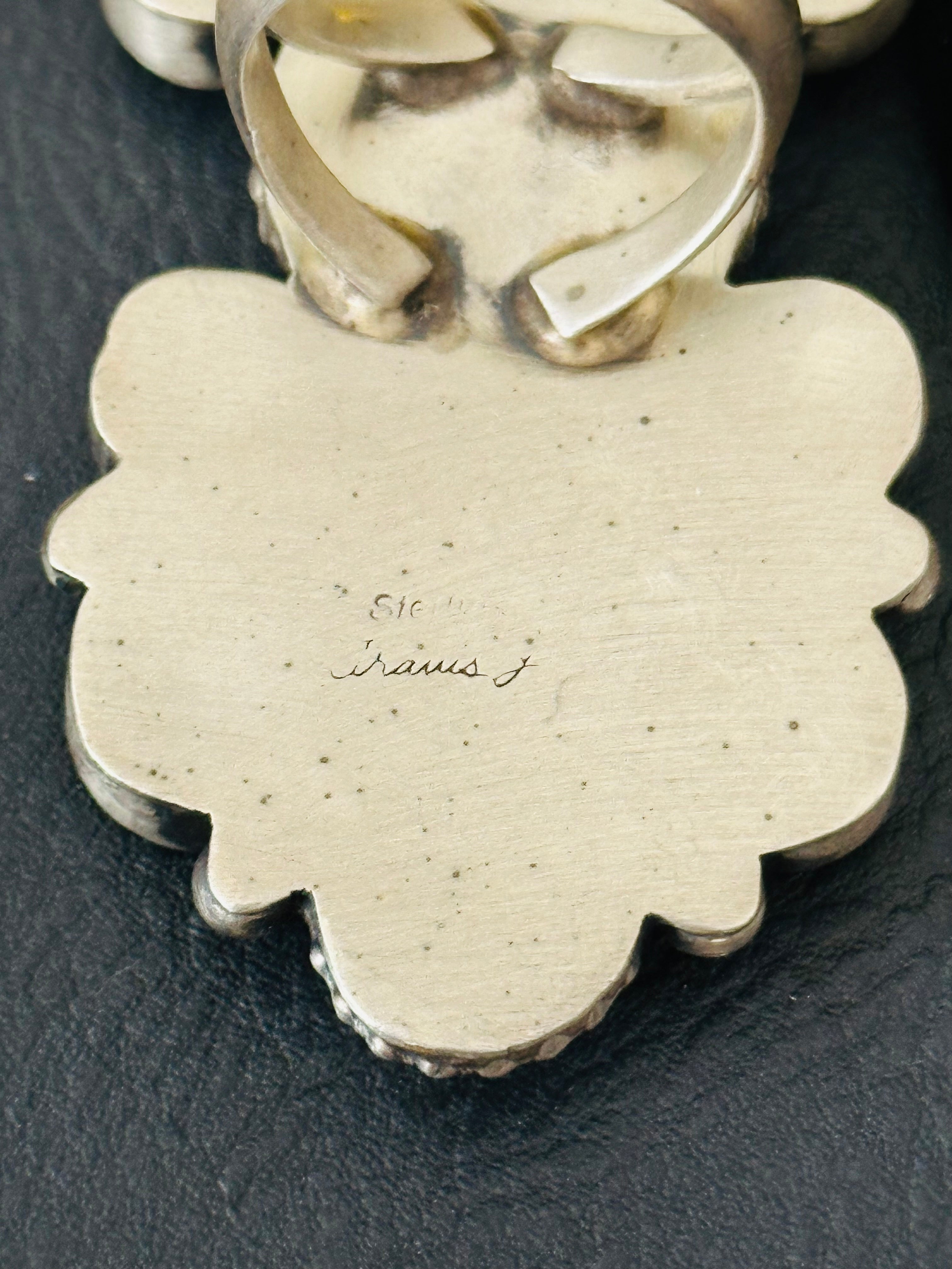 Beautiful cluster ring.Navajo Handmade Sonoran Mountain Turquoise & Sterling Silver Cluster Ring Size 8.5. It measures 3 inches long and 1 3/8 inches wide. Signed by the artist and stamped sterling silver.