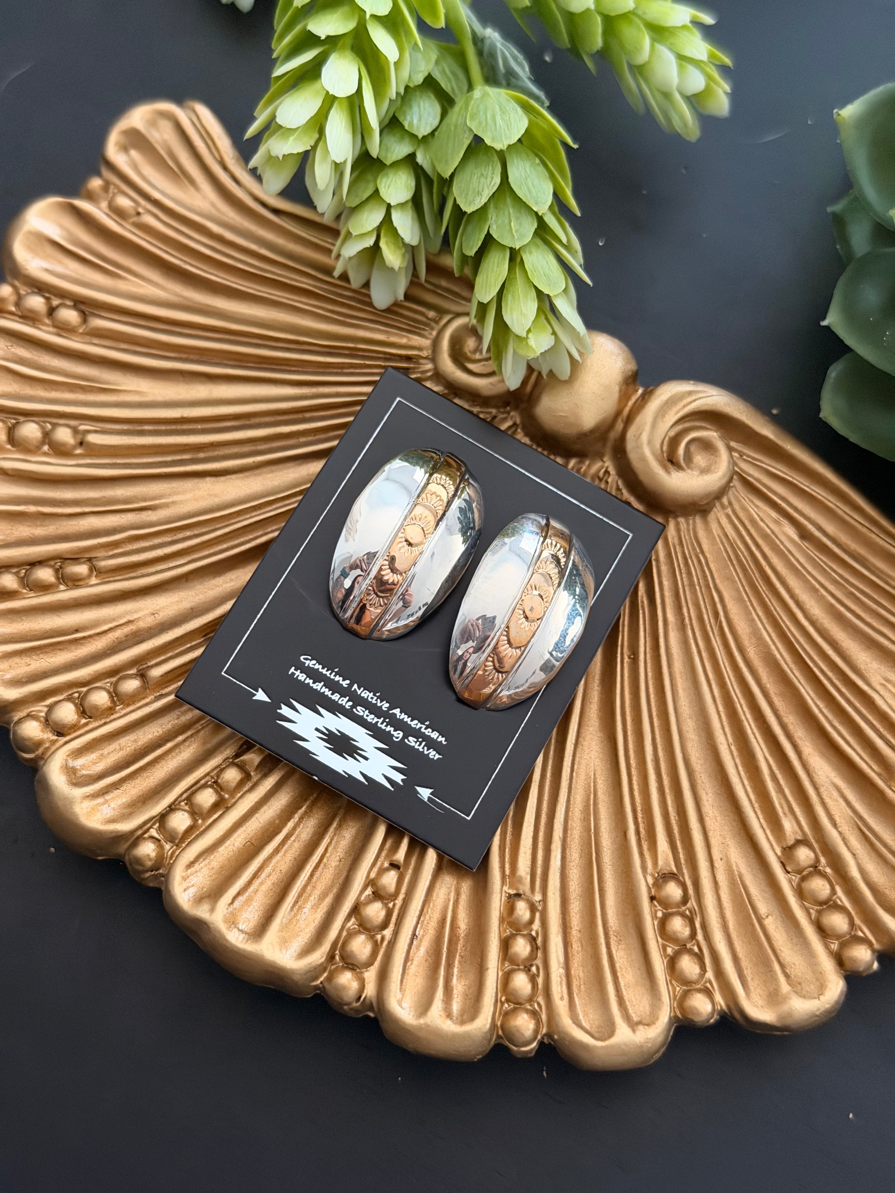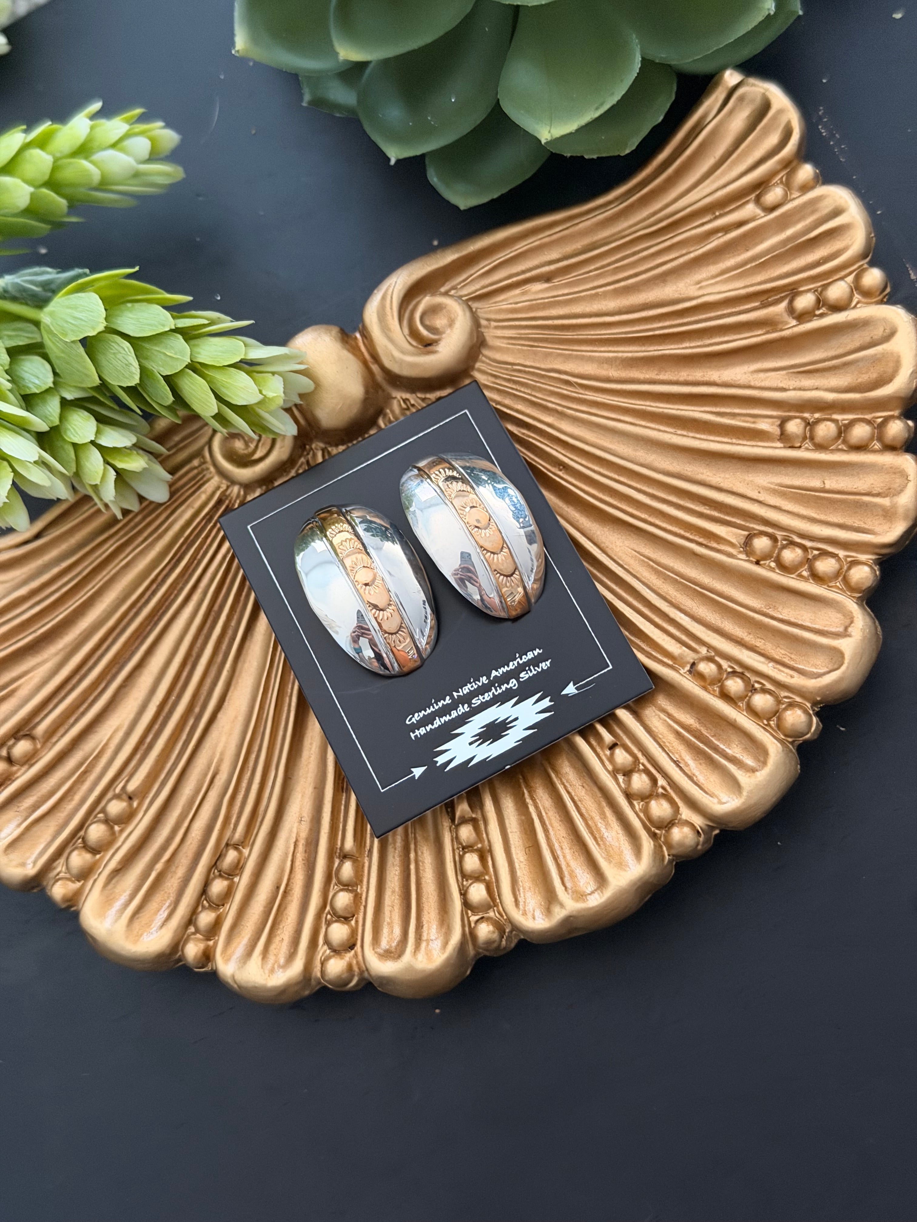Navajo Made 14K Gold Fill & Sterling Silver Post Hoop Earrings