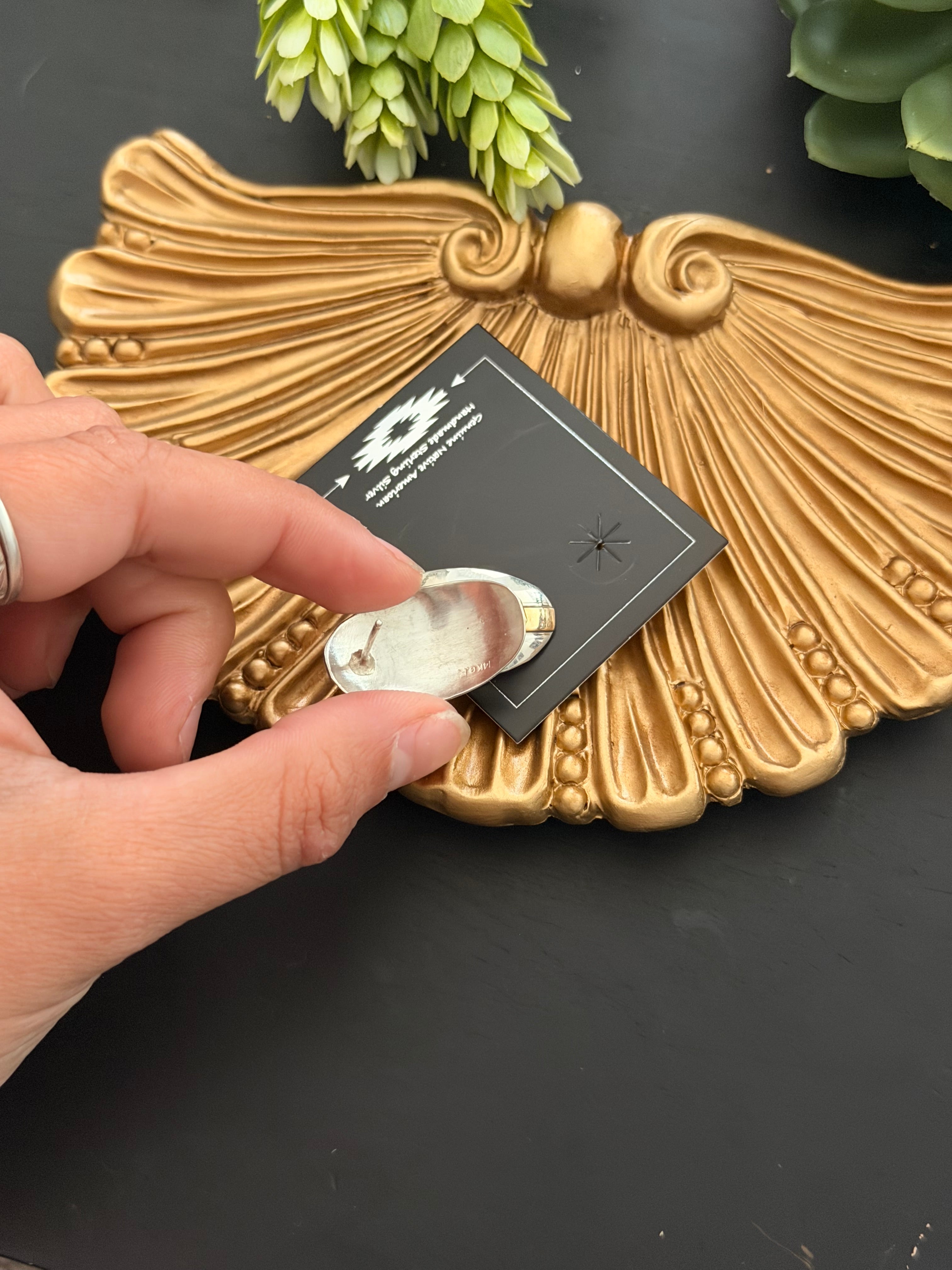Navajo Made 14K Gold Fill & Sterling Silver Post Hoop Earrings. It measures 1 1/8 inches long and just over 5/8 of an inch wide.