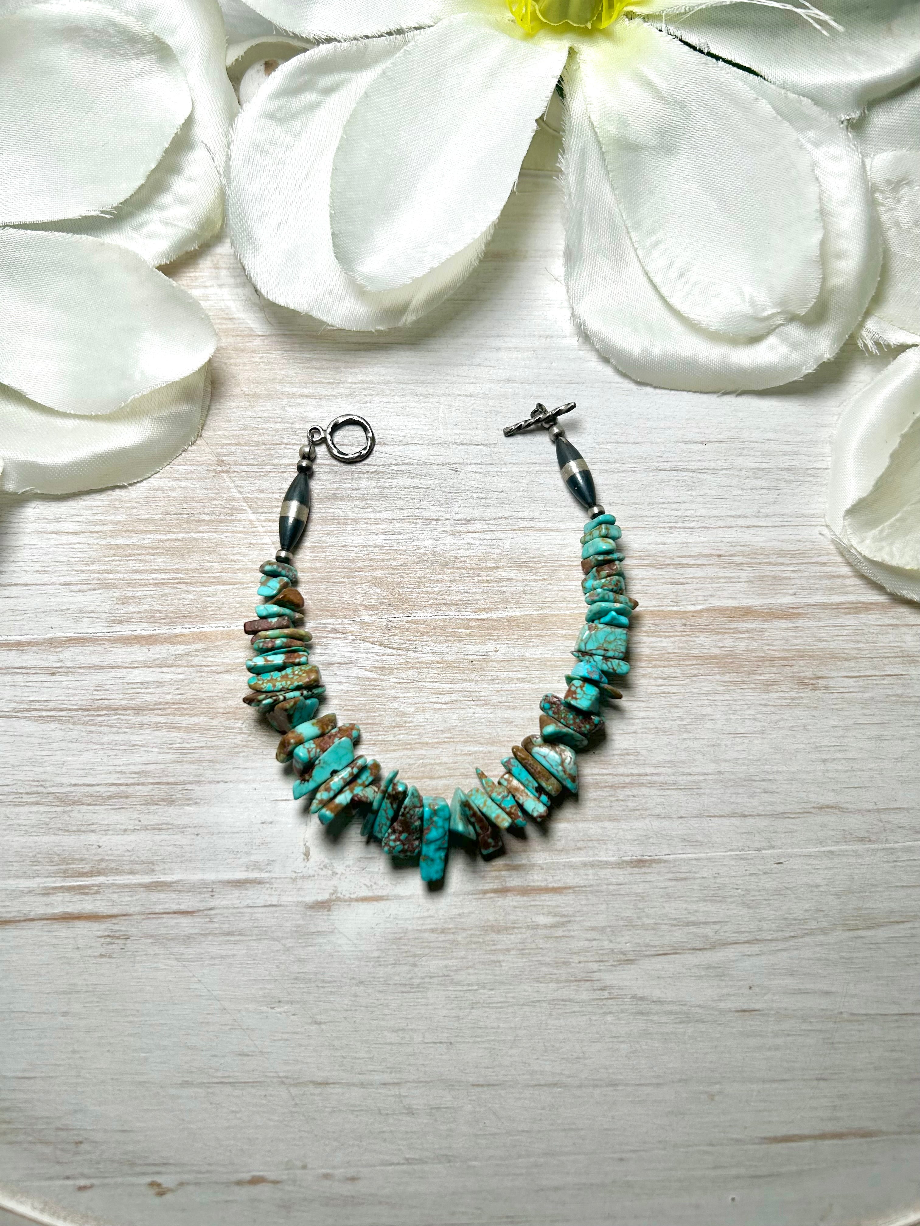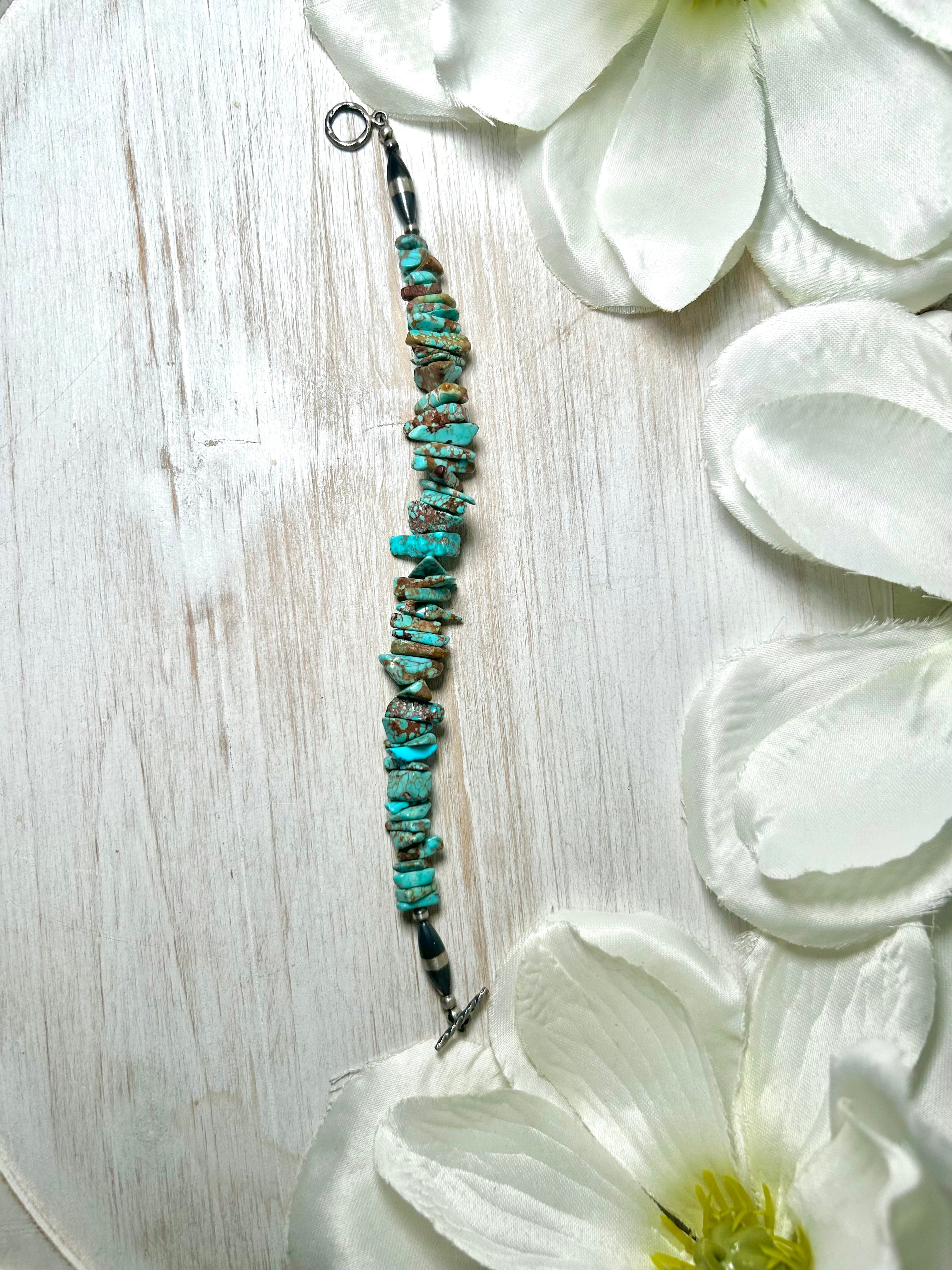 Navajo Made #8 Turquoise & Sterling Silver Link Bracelet