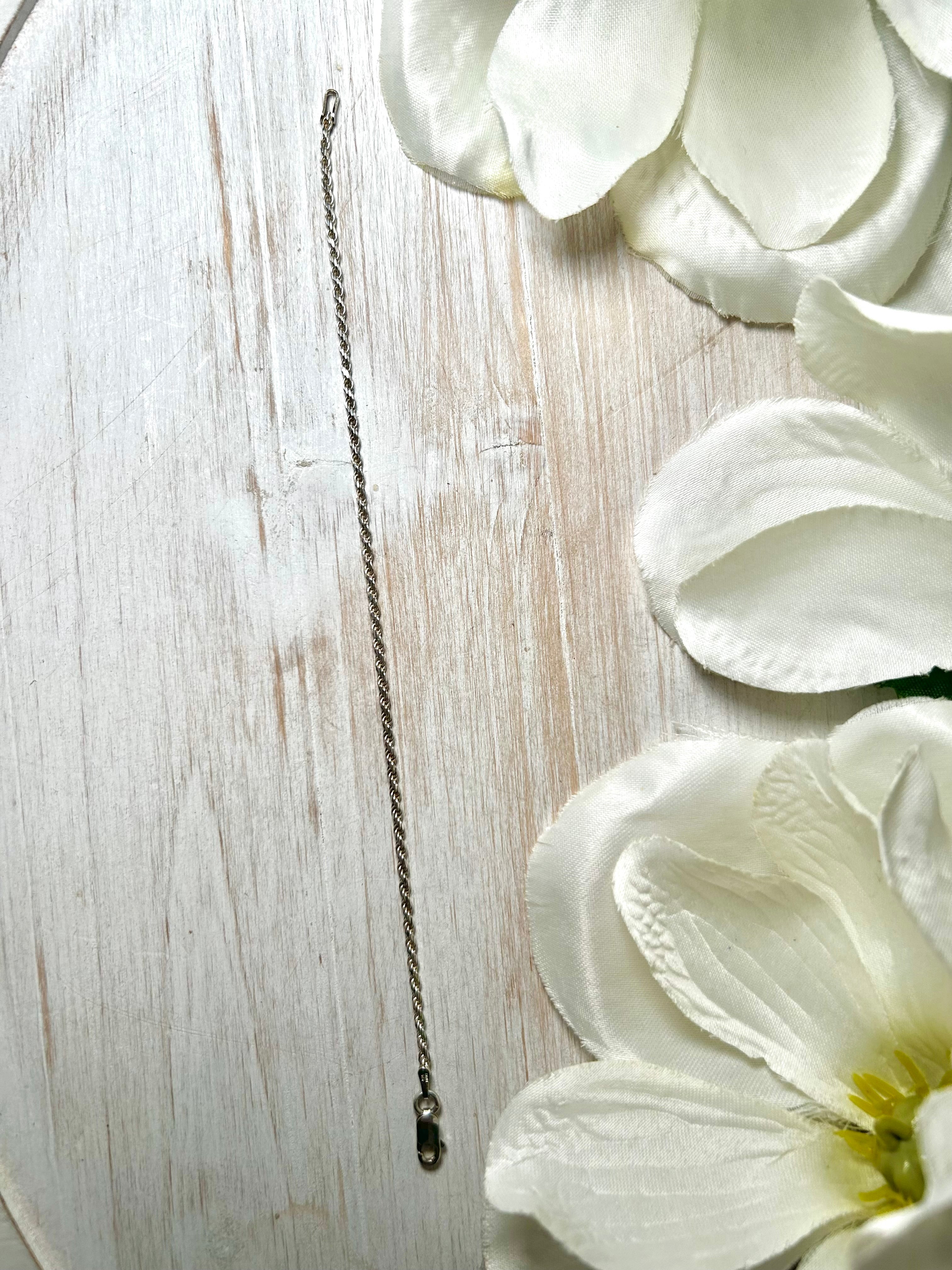 Italian Sterling Silver Rope Twist Chain Link Bracelet. They measure 7 inches long and 1/8 of an inch wide. Stamped sterling silver.