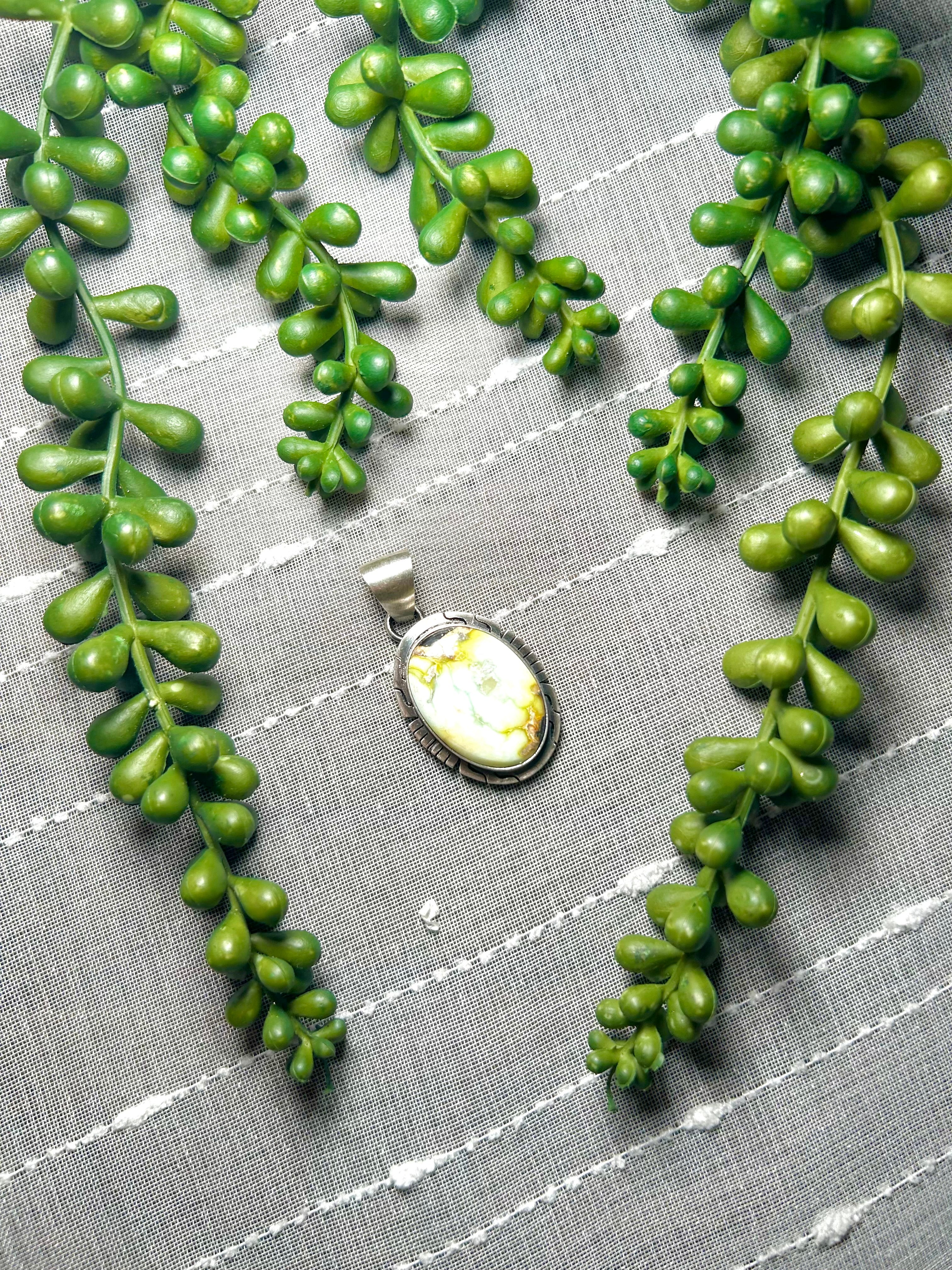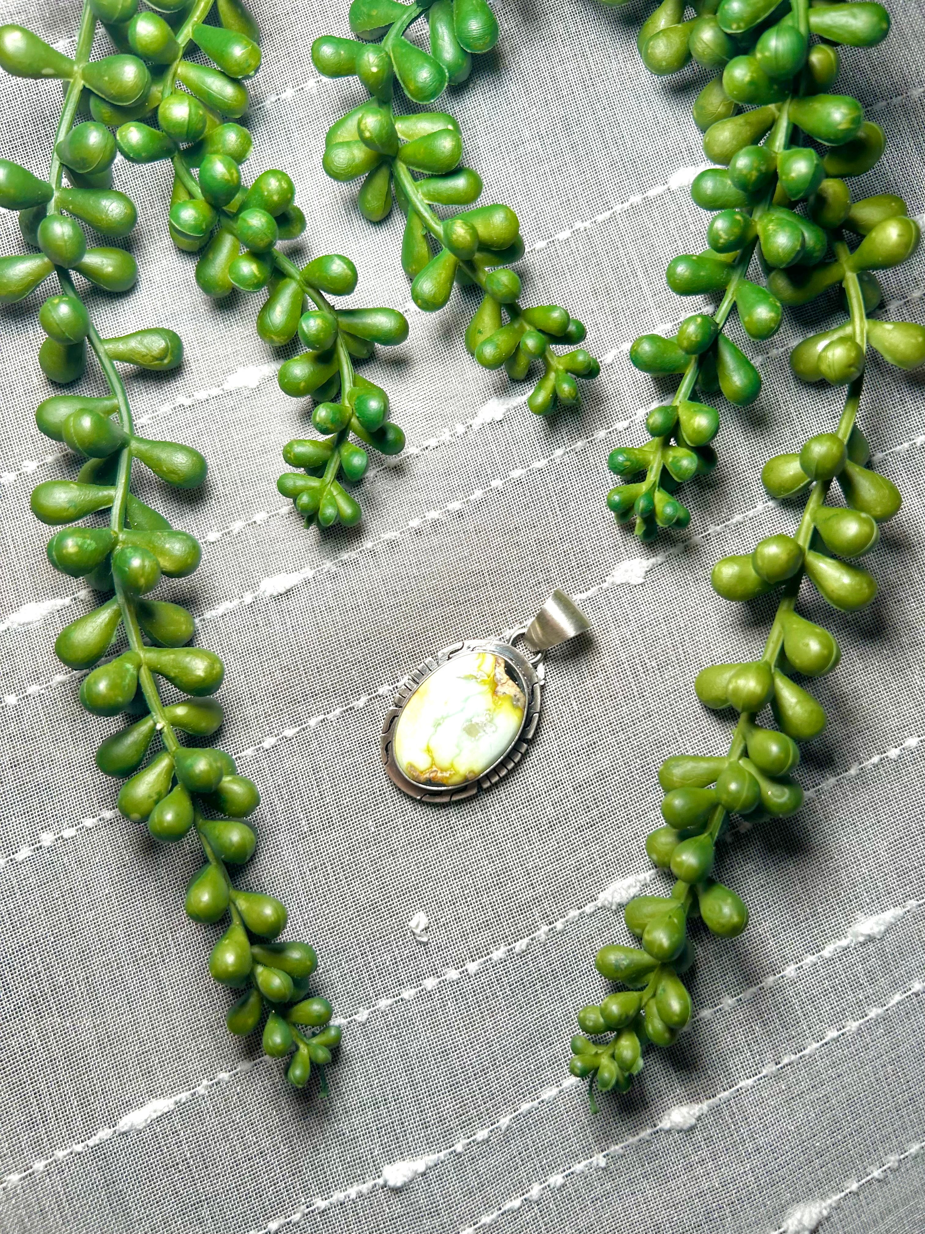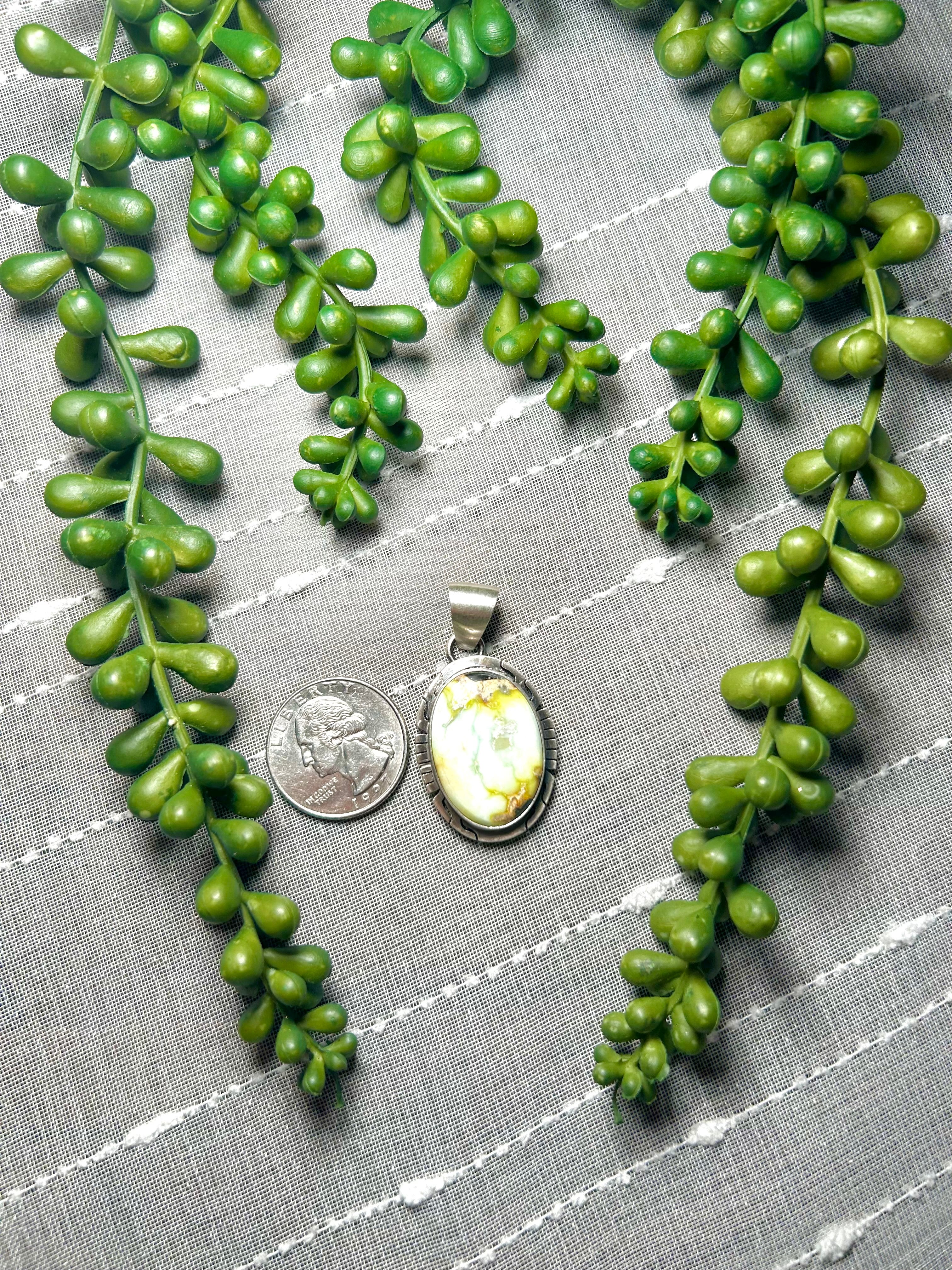 Navajo Made Palomino Variscite & Sterling Silver Pendant