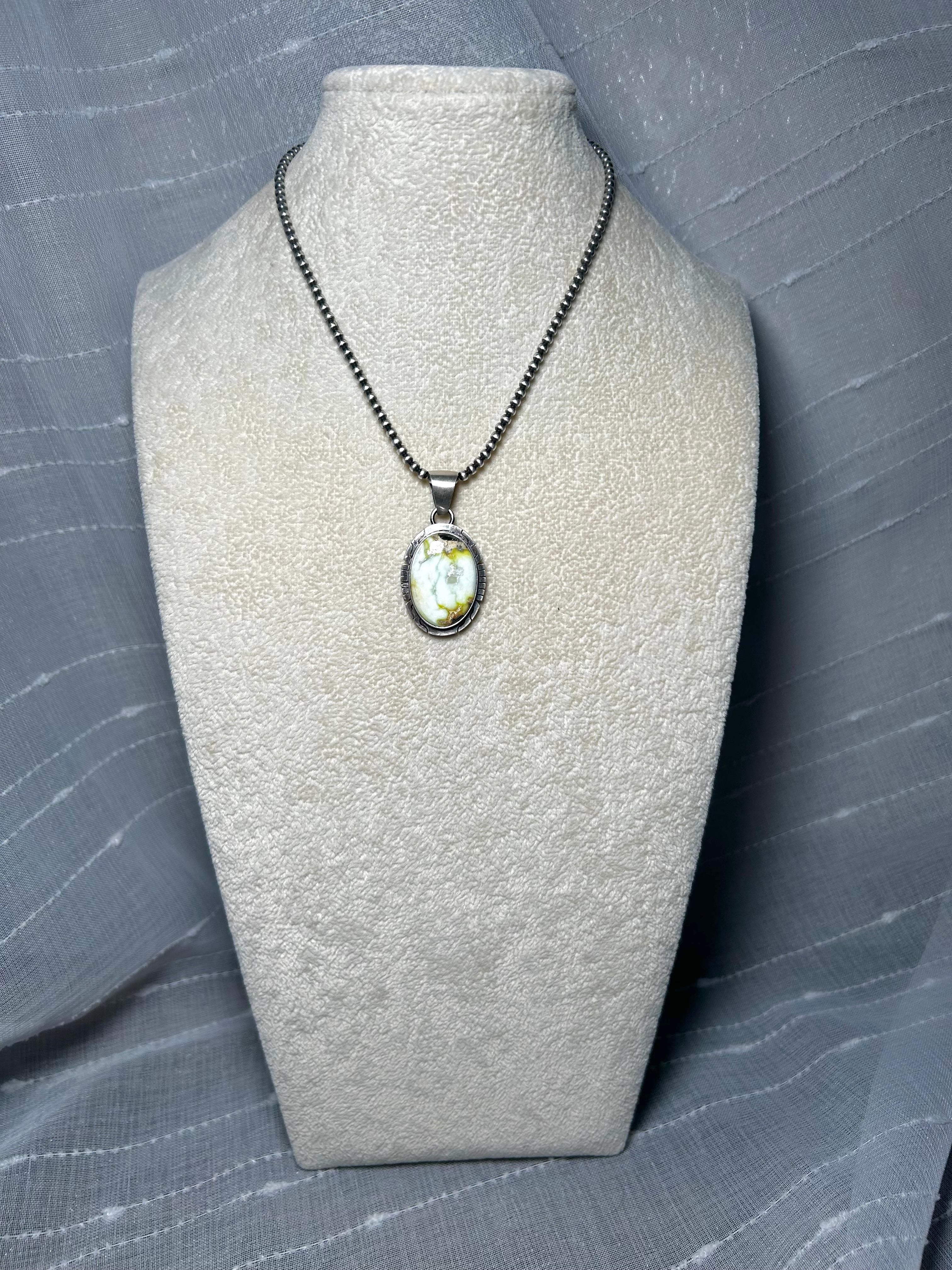 Navajo Made Palomino Variscite & Sterling Silver Pendant. It measures 1 3/4 inches long and 1 inch wide. Pendant Only! Signed by the artist and stamped sterling silver.