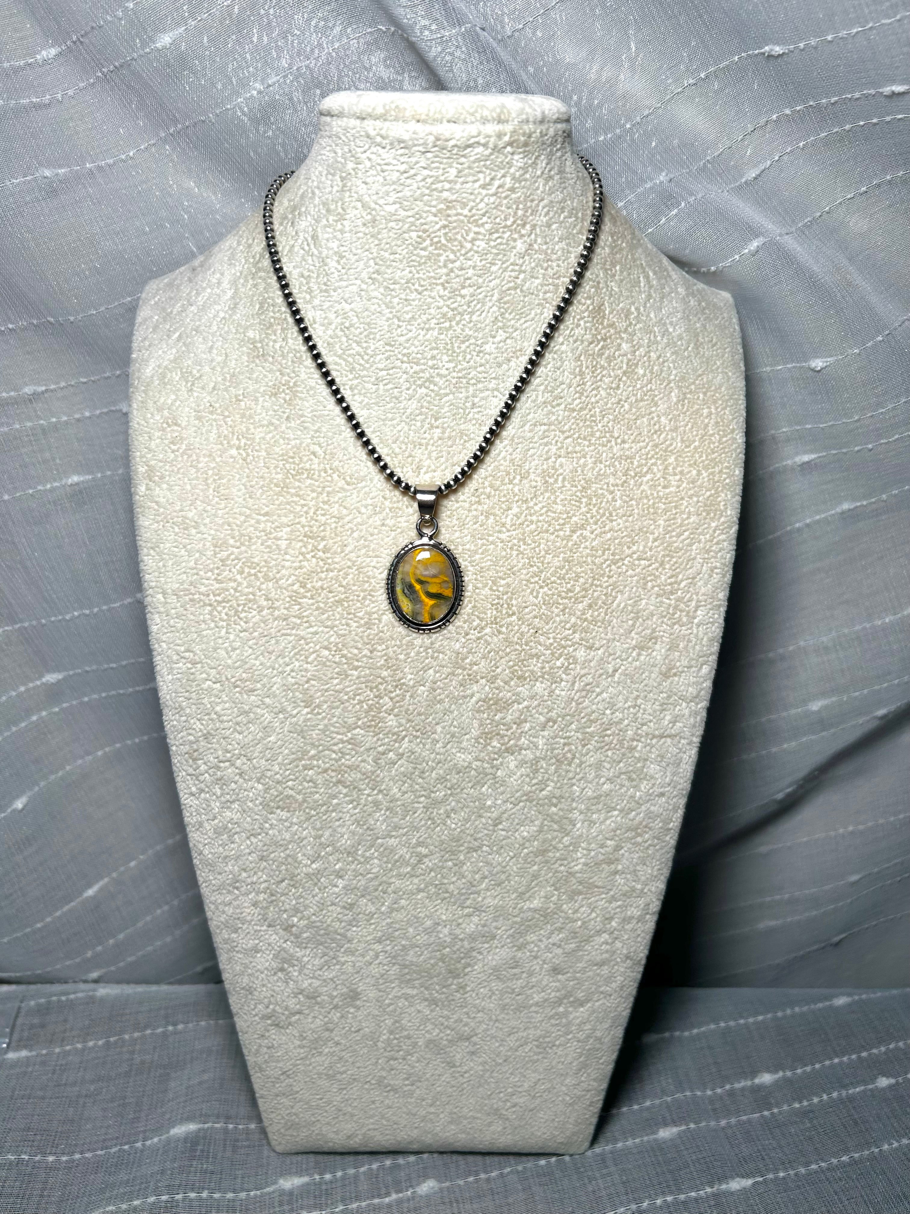 Navajo Made BB Agate & Sterling Silver Pendant. It measures 1 3/8 inches long and 7/8 of an inch wide. Pendant Only! Signed by the artist and stamped sterling silver.