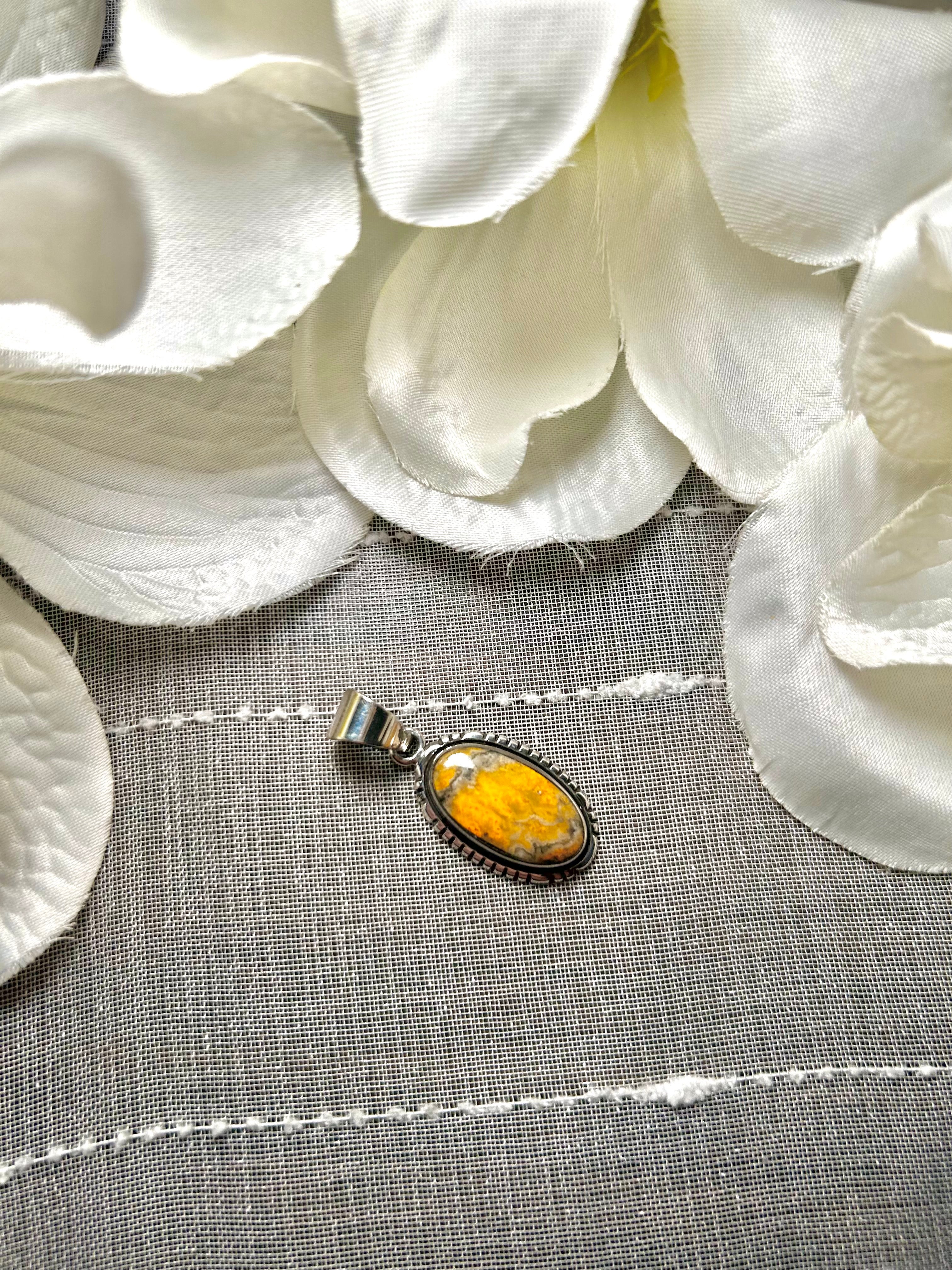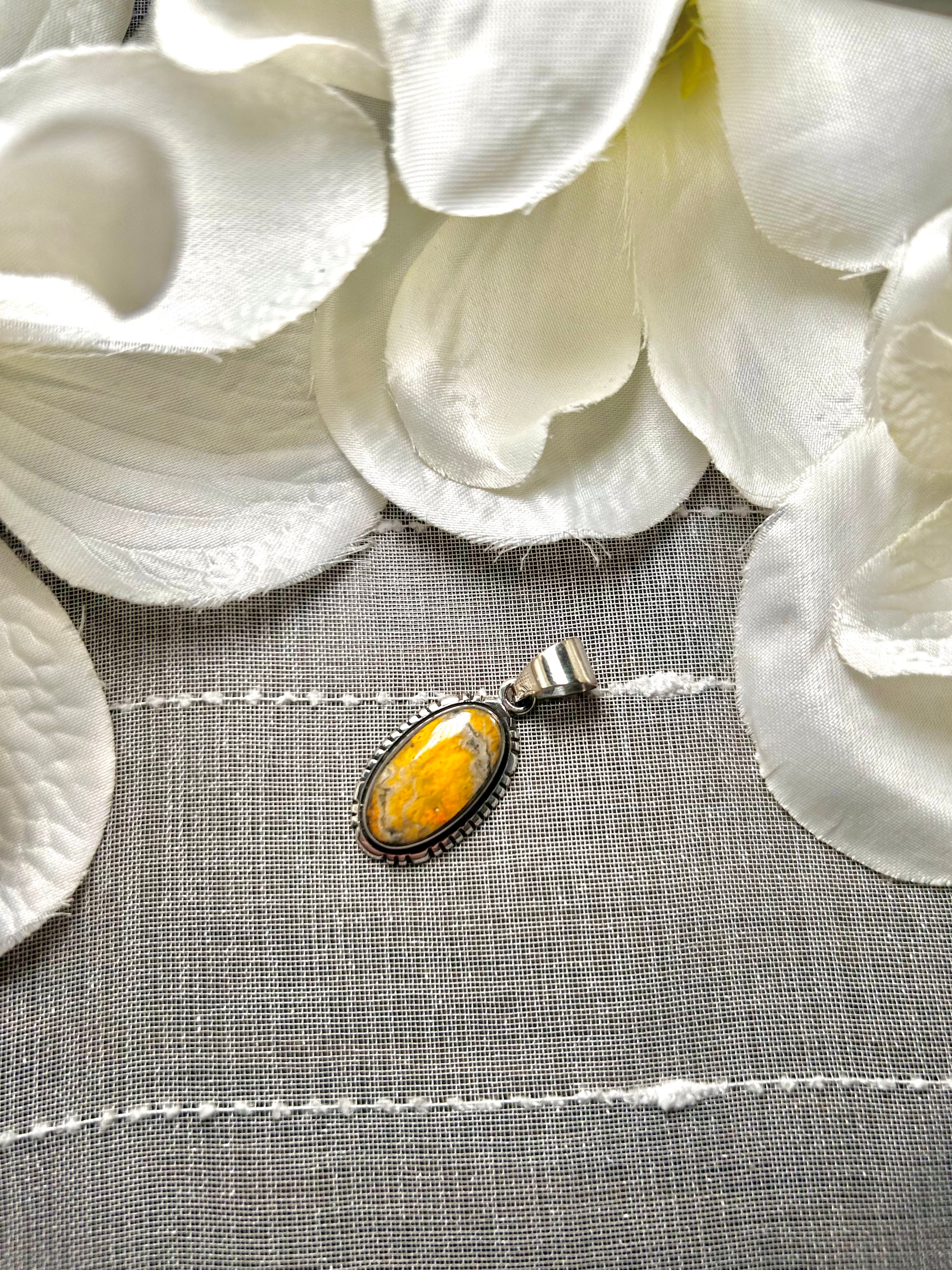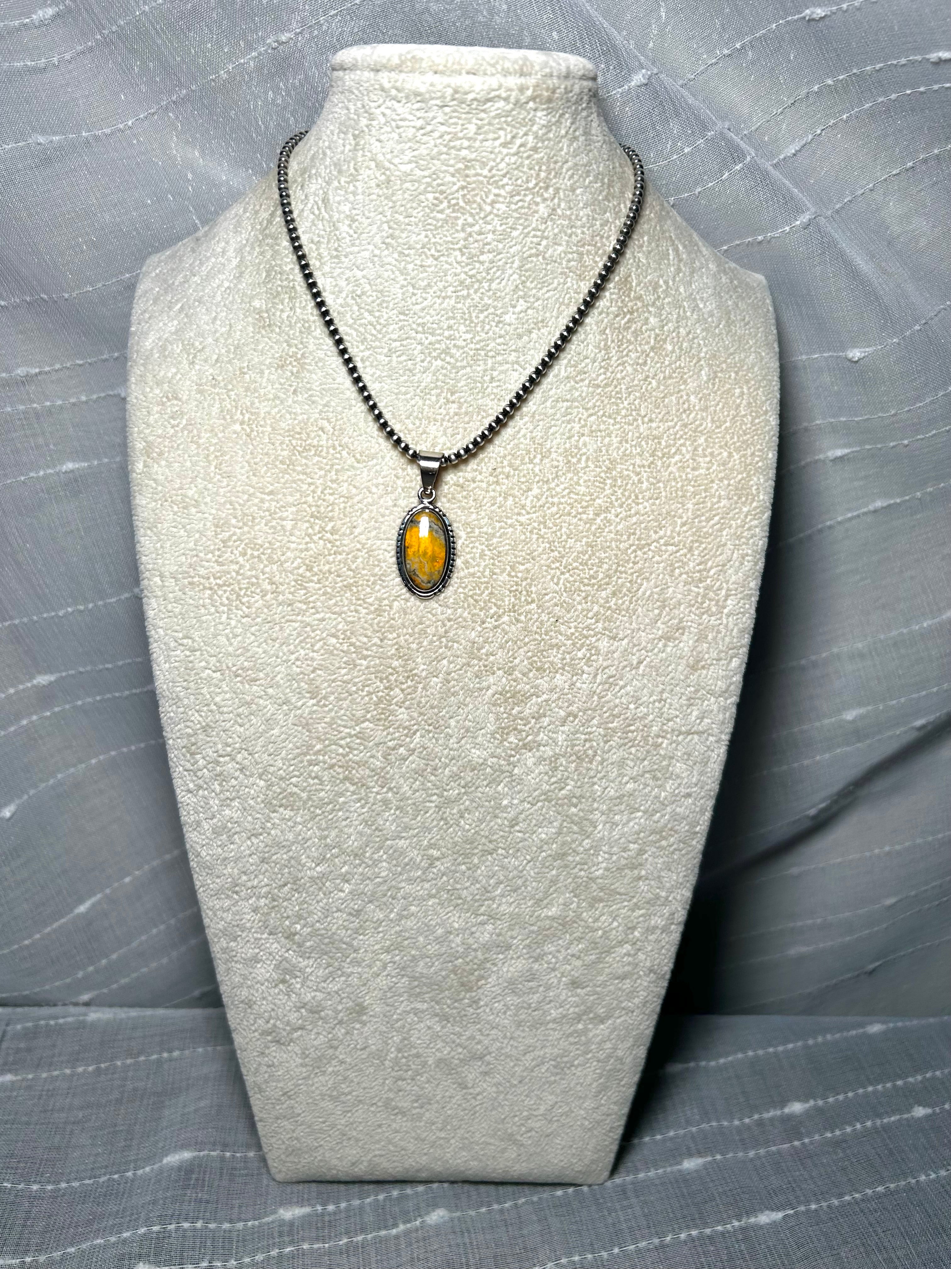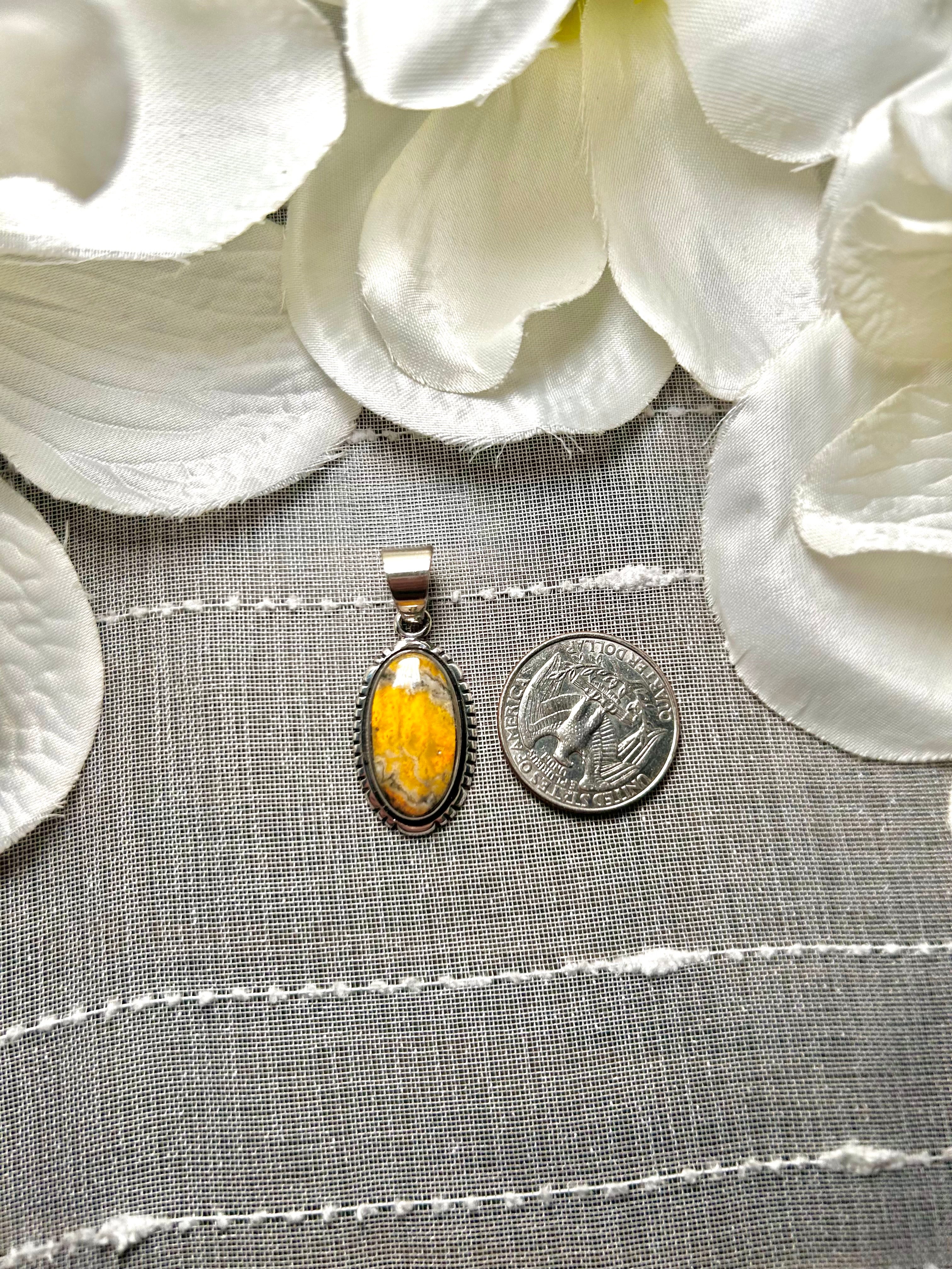 Navajo Made BB Agate & Sterling Silver Pendant. It measures 1 1/2 inches long and 5/8 of an inch wide. Pendant Only! Signed by the artist and stamped sterling silver.