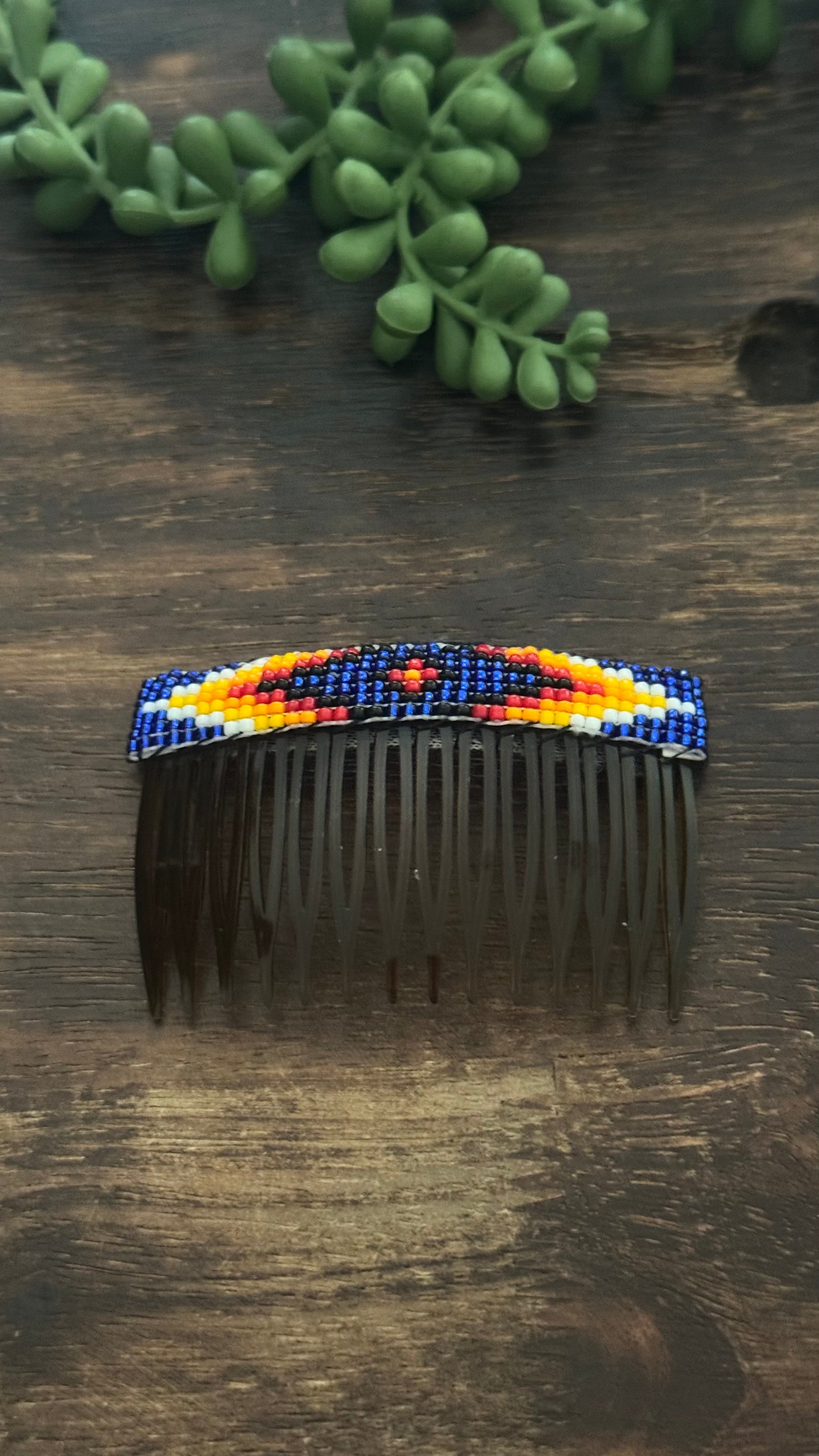 Navajo Made Beaded Hair Combs. It measures 2 inches long and 2 1/4 inches wide.