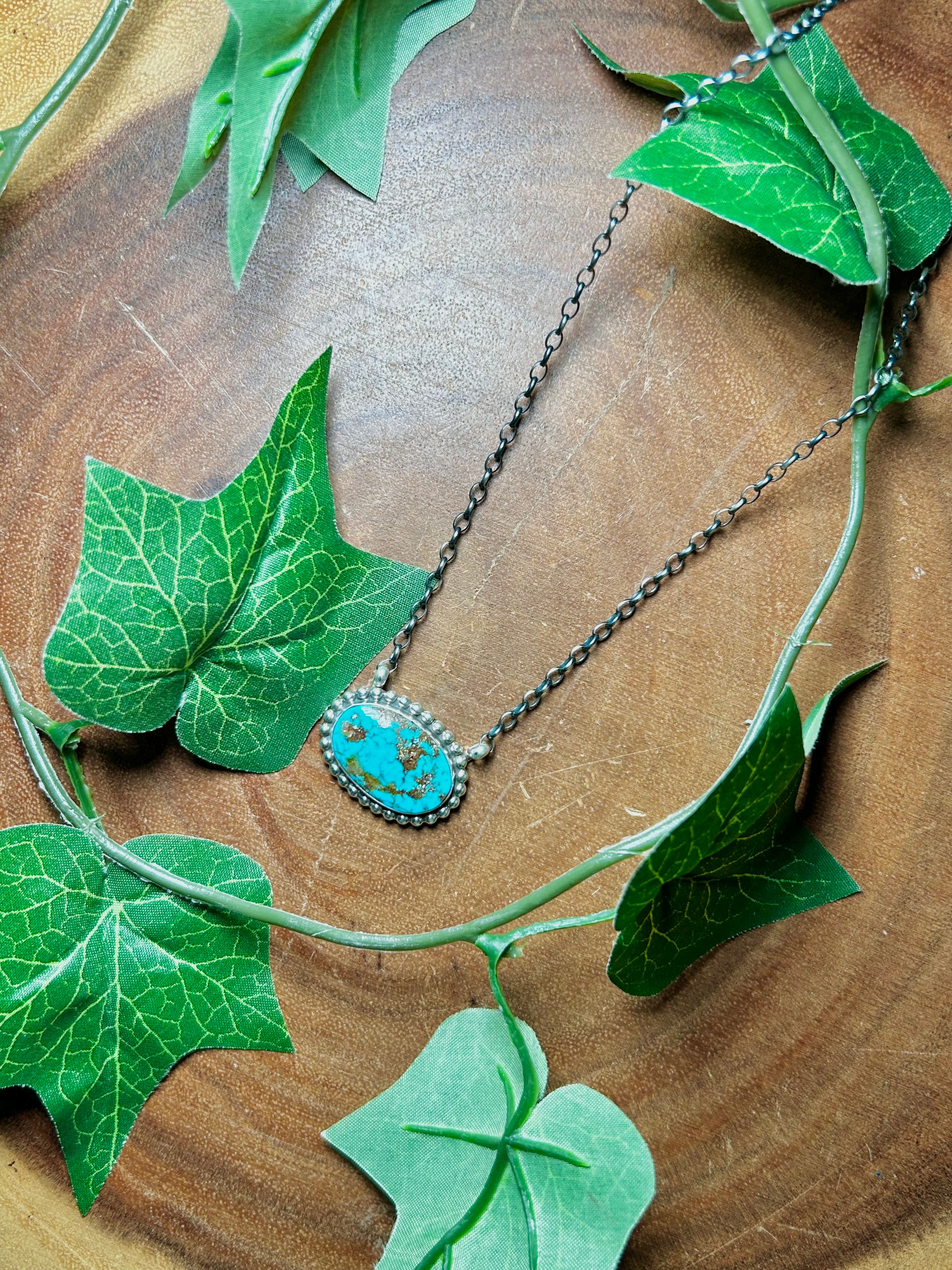 Navajo Made Birds Eye Kingman Turquoise & Sterling Silver Necklace