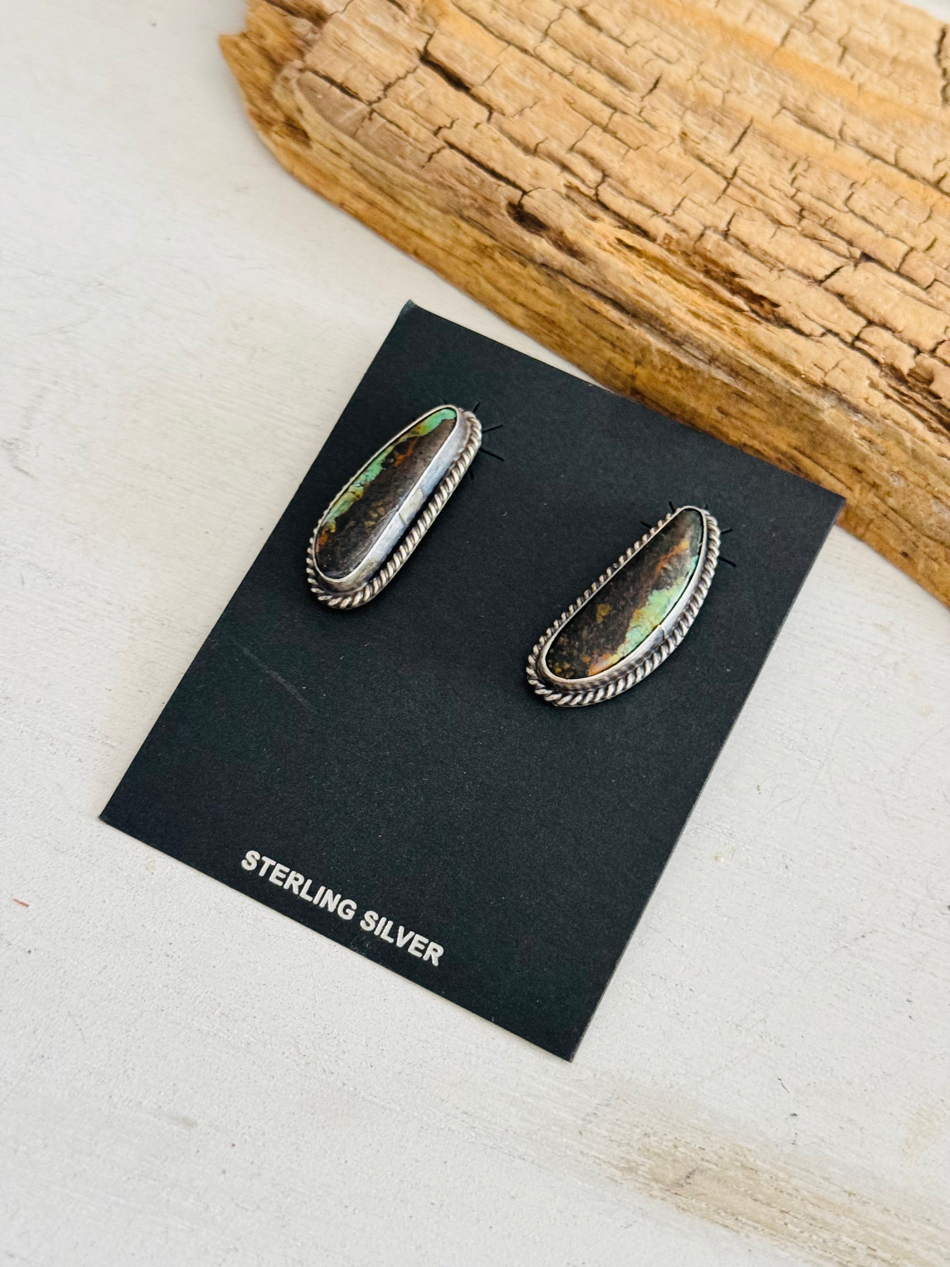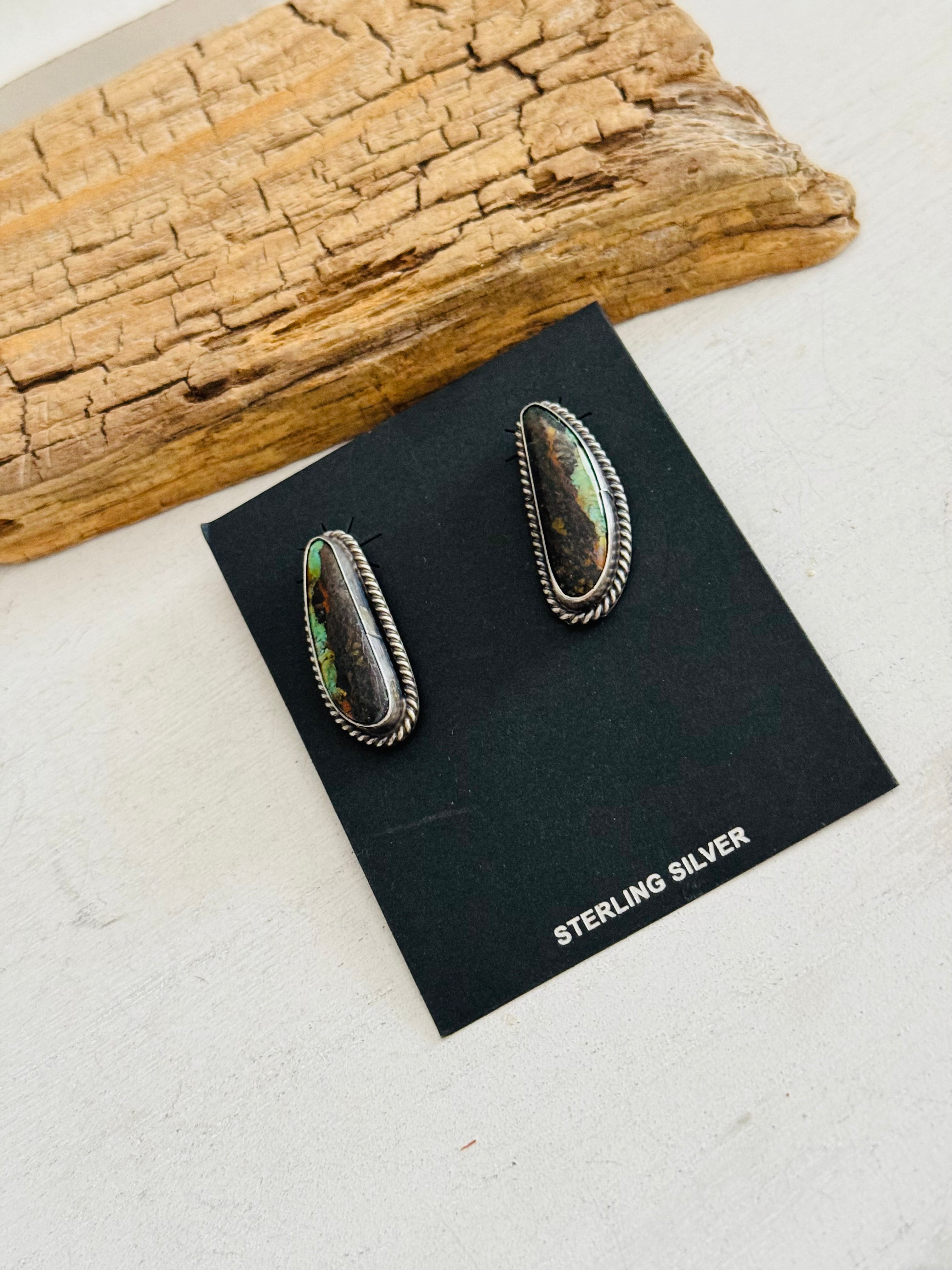 Navajo Made Black Jack Turquoise & Sterling Silver Post Earrings