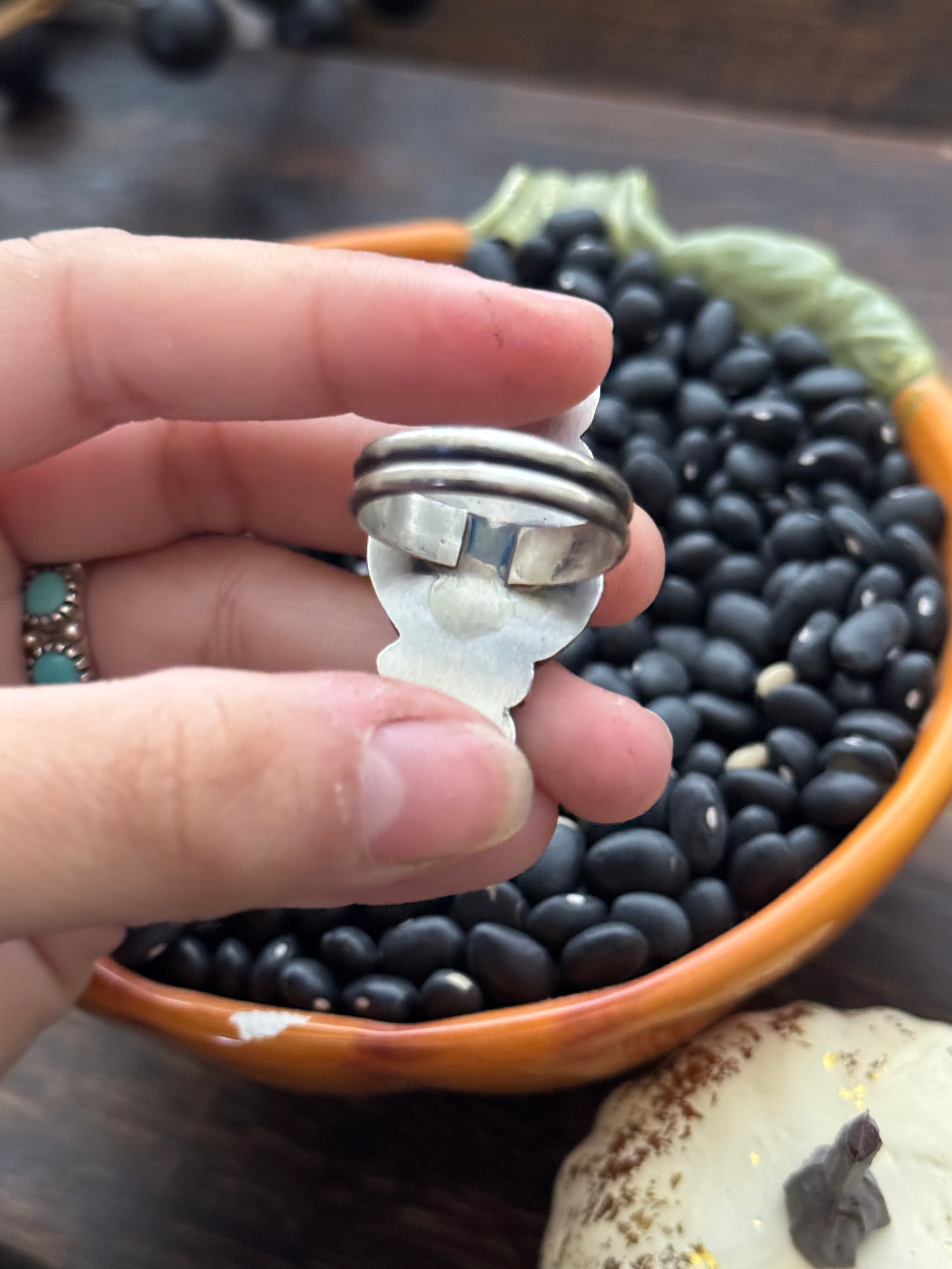 Navajo Made Blue Moon Turquoise and Sterling Silver Ring Size 8.75