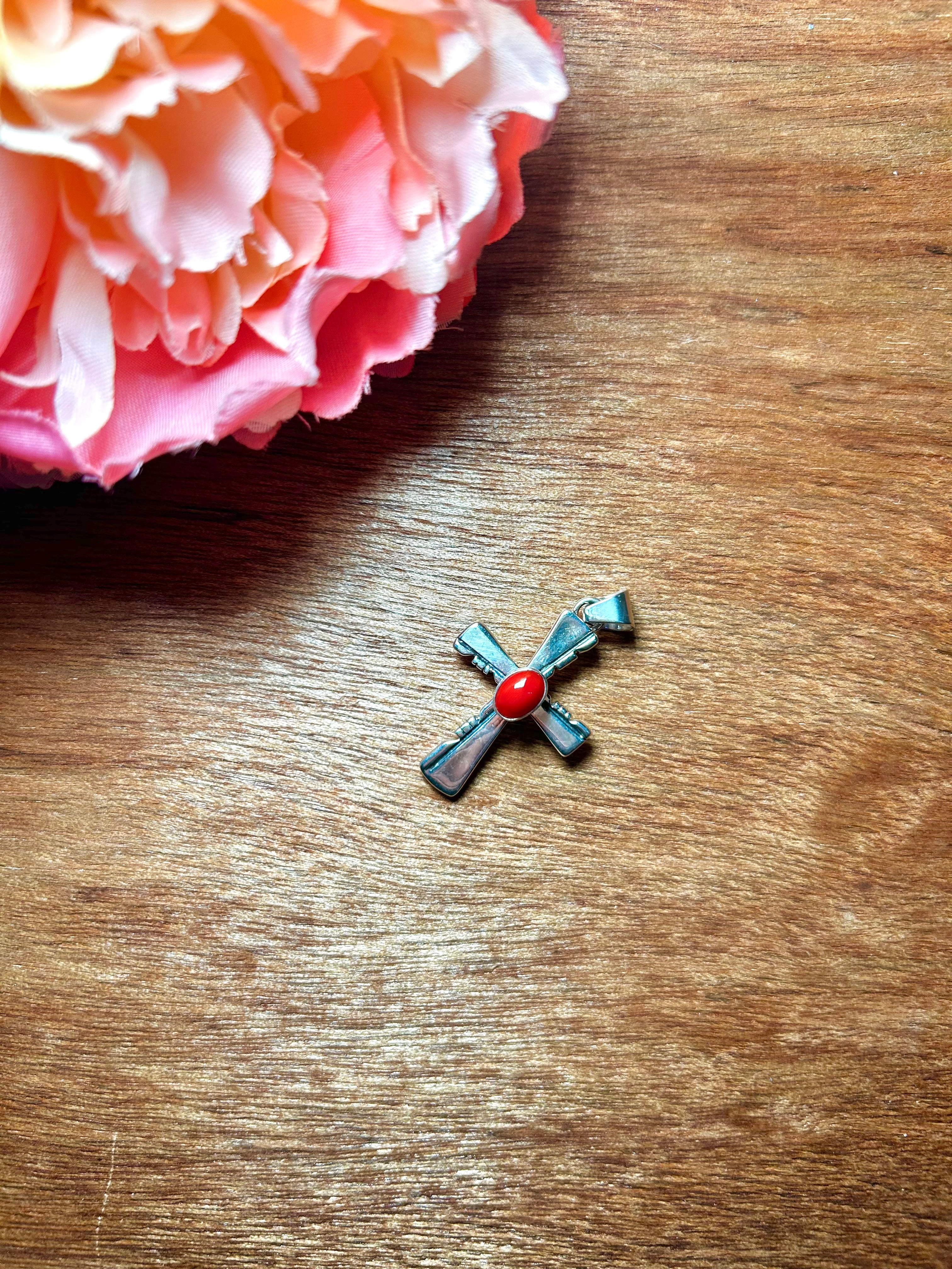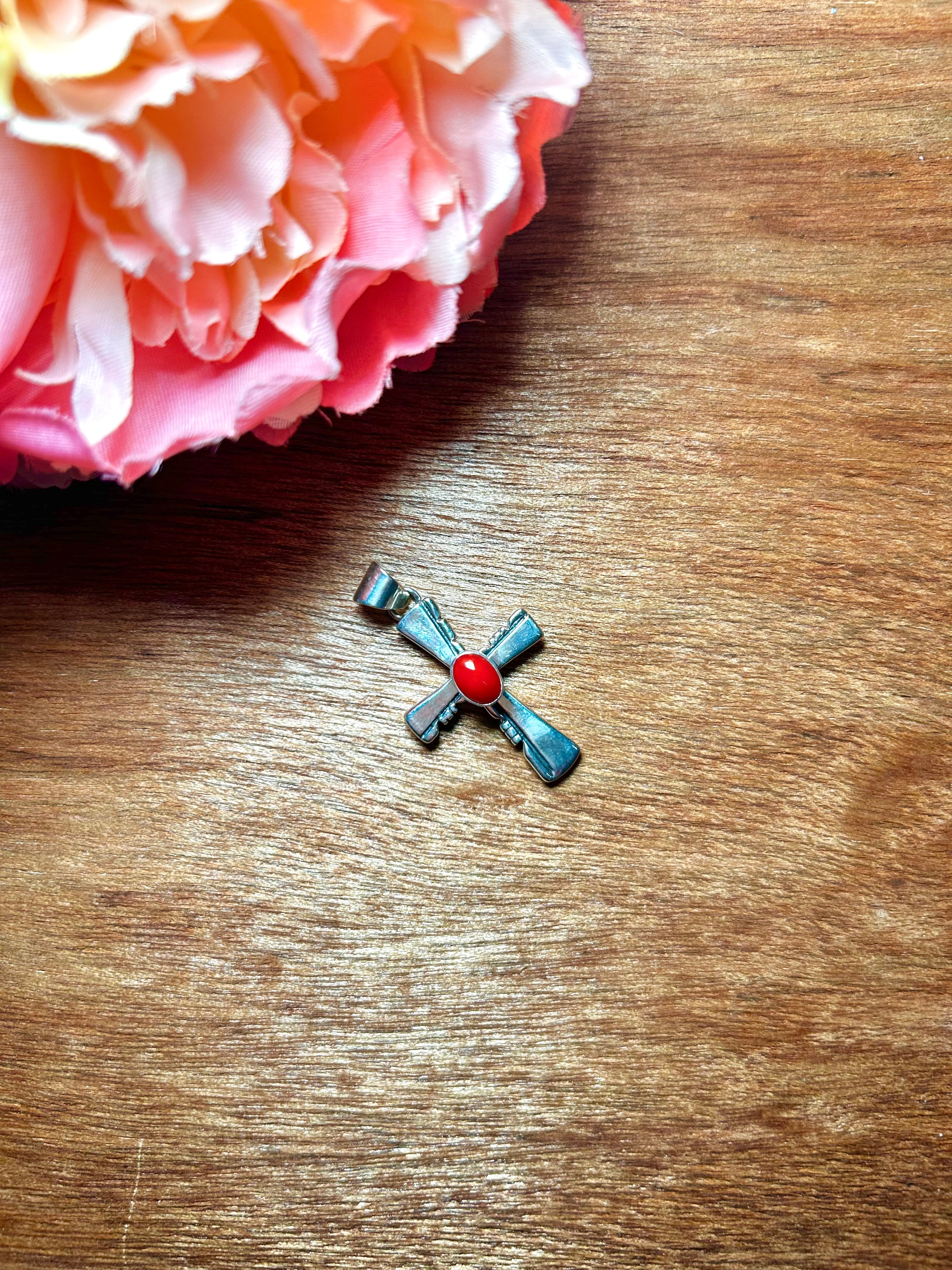 Navajo Made Natural Coral & Sterling Silver Pendant