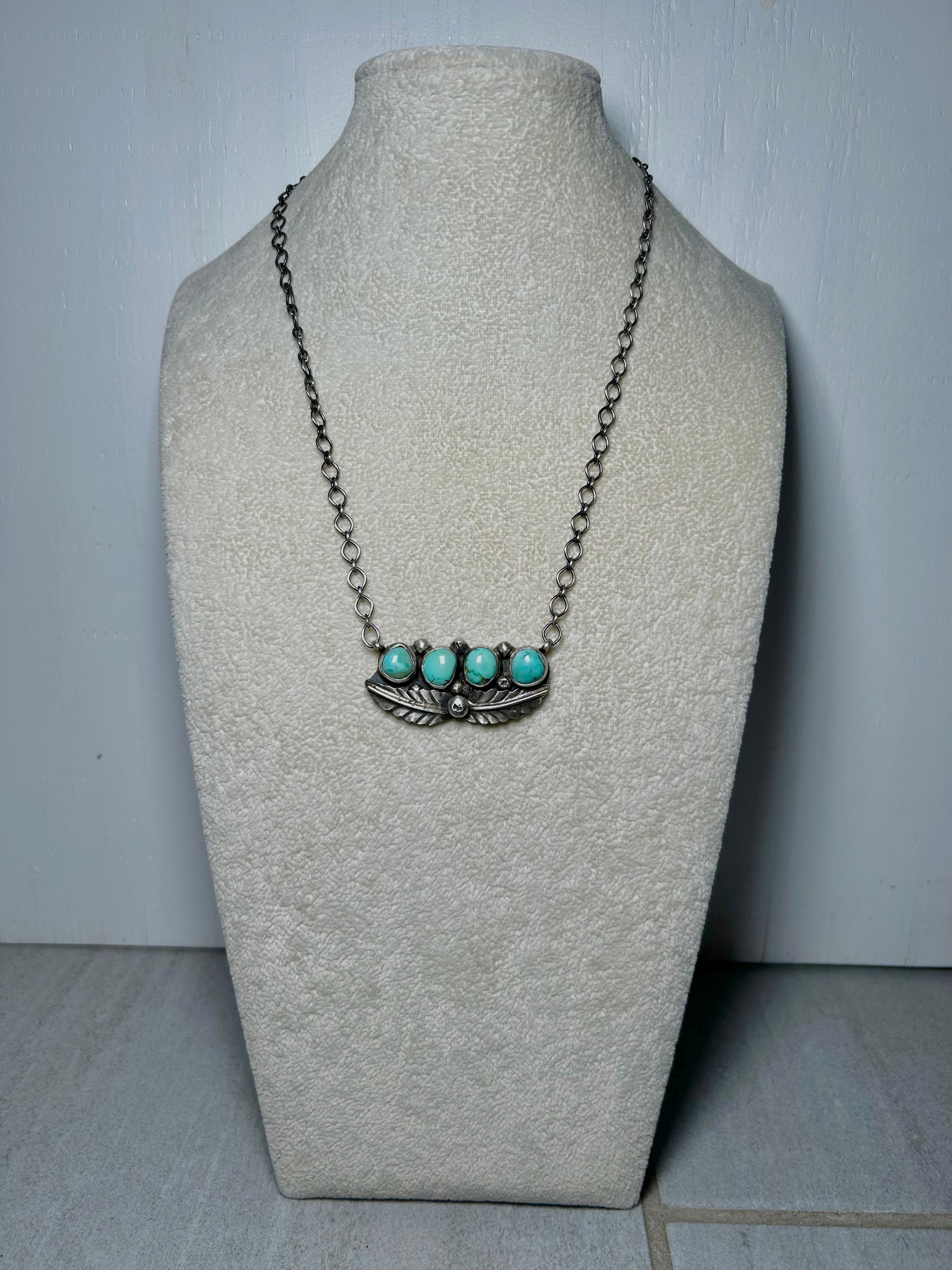 Navajo Made Blue Moon Turquoise & Sterling Sliver Necklace