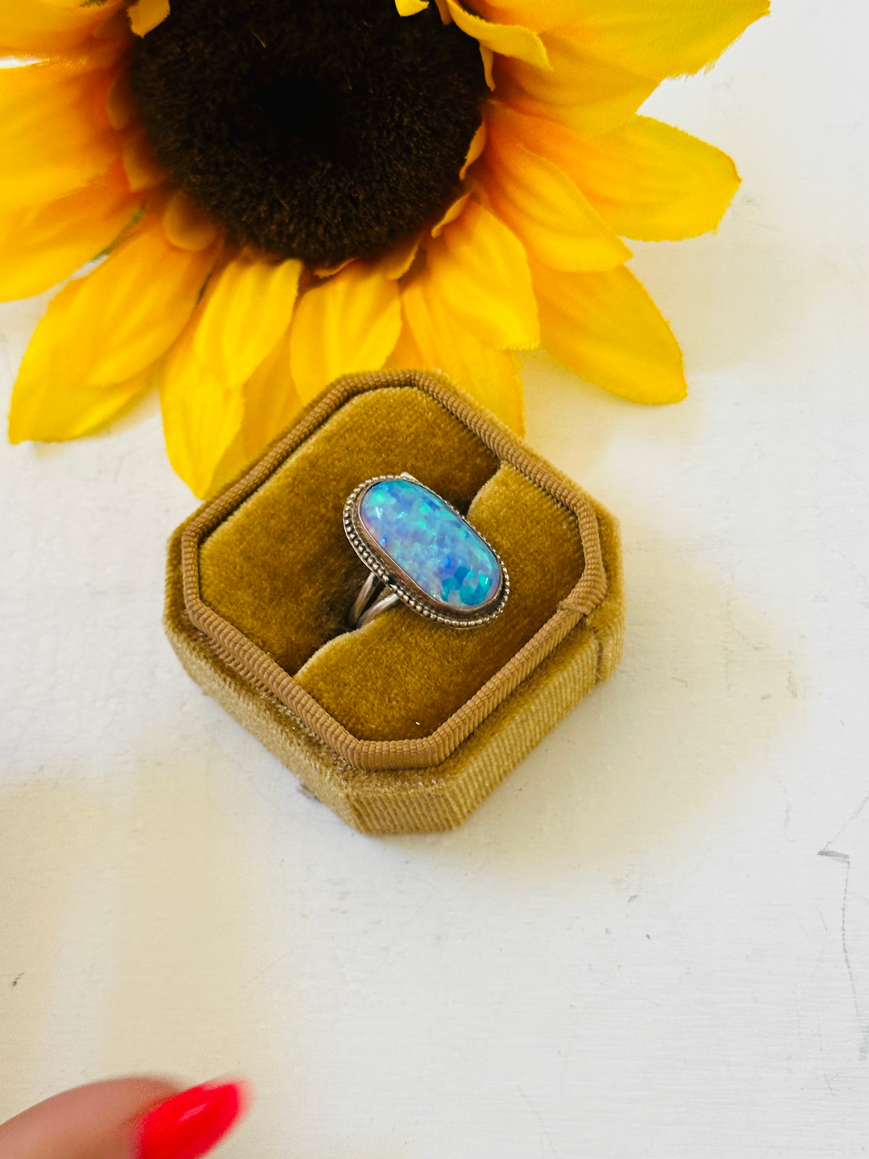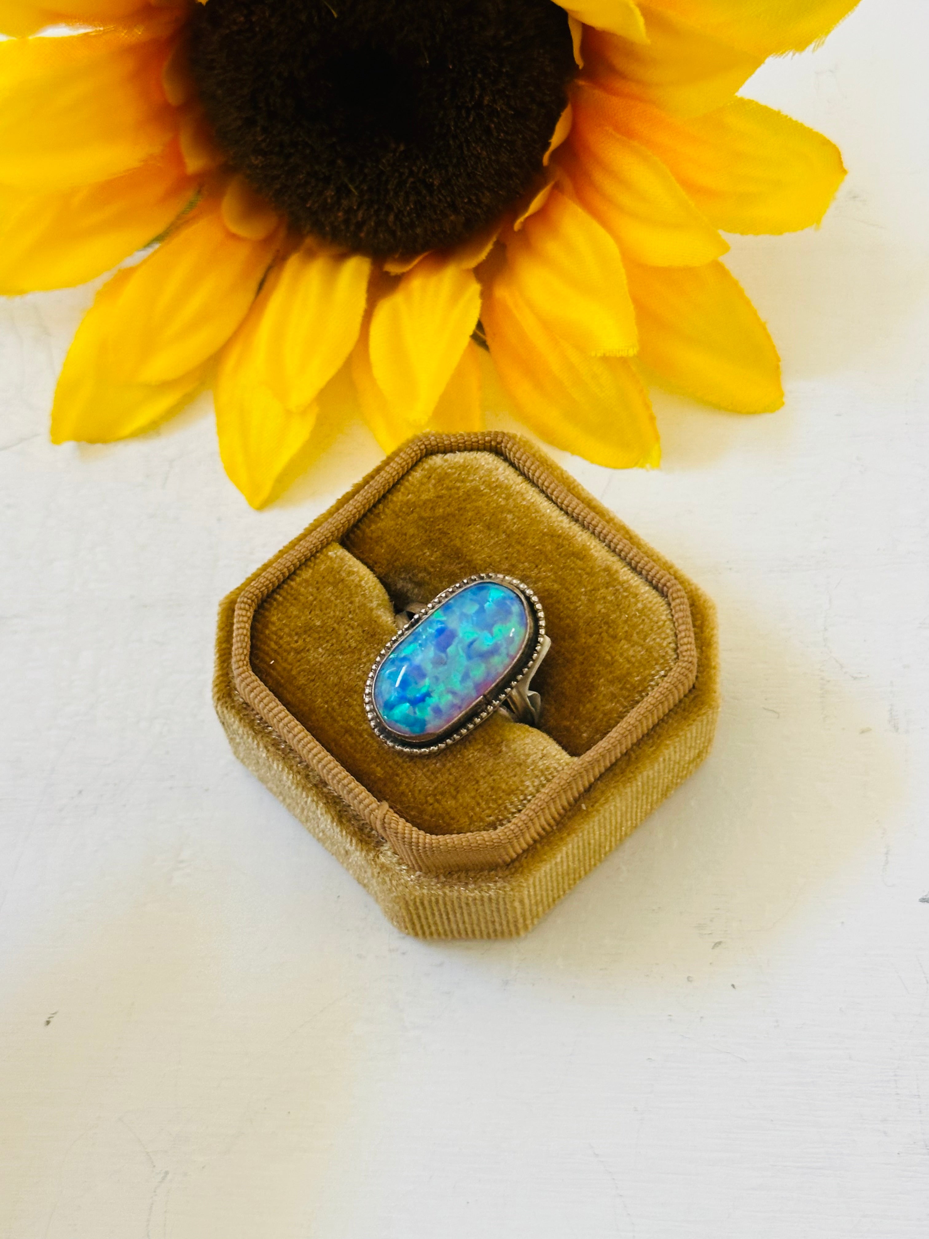 Navajo Made Blue Opal & Sterling Silver Ring Size 7.75
