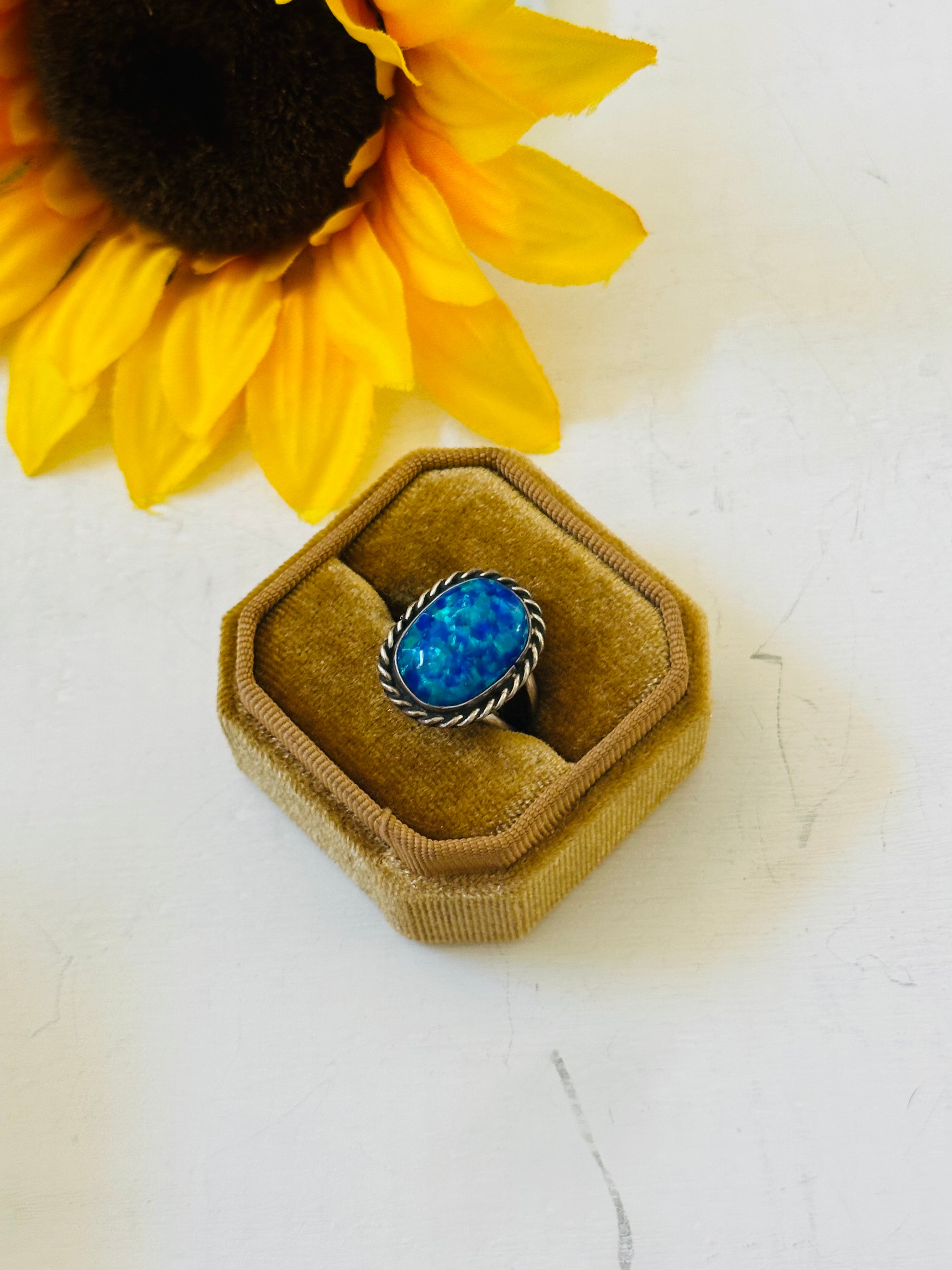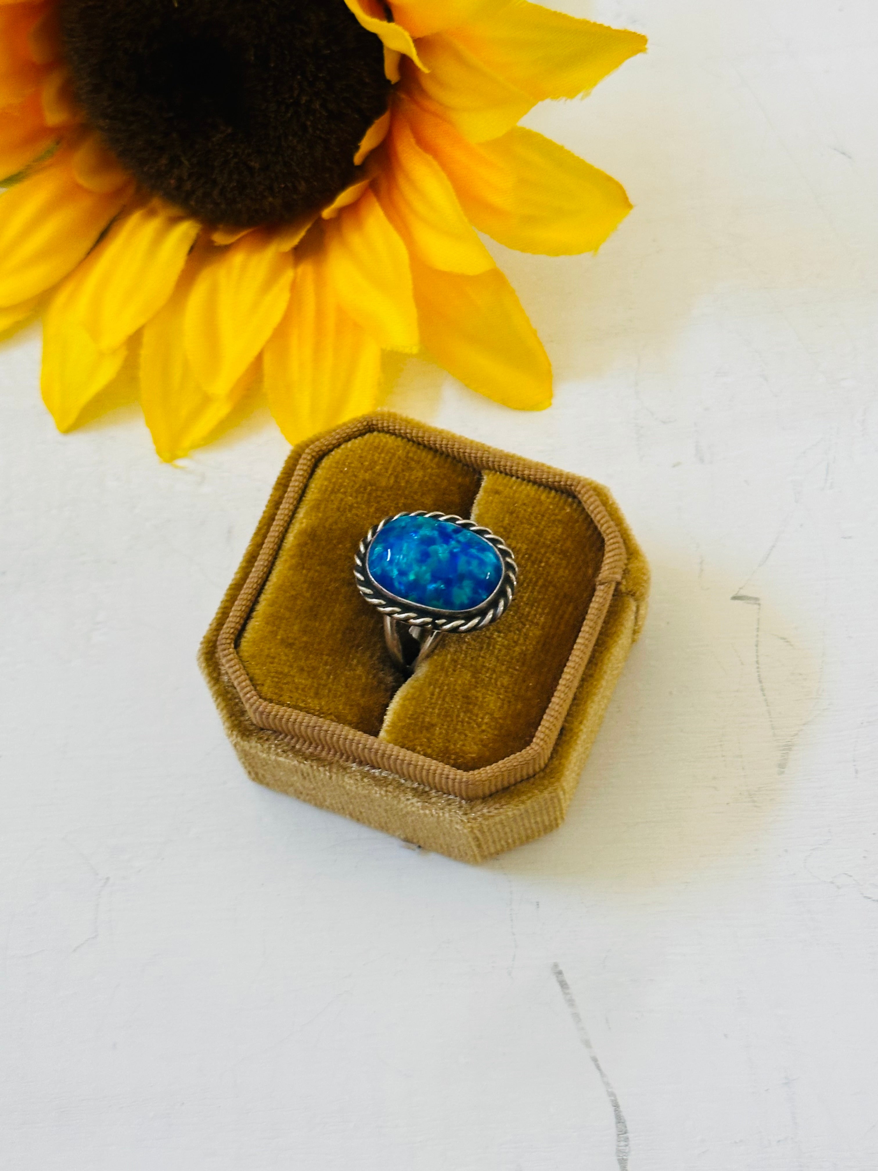 Navajo Made Blue Opal & Sterling Silver Ring Size 7