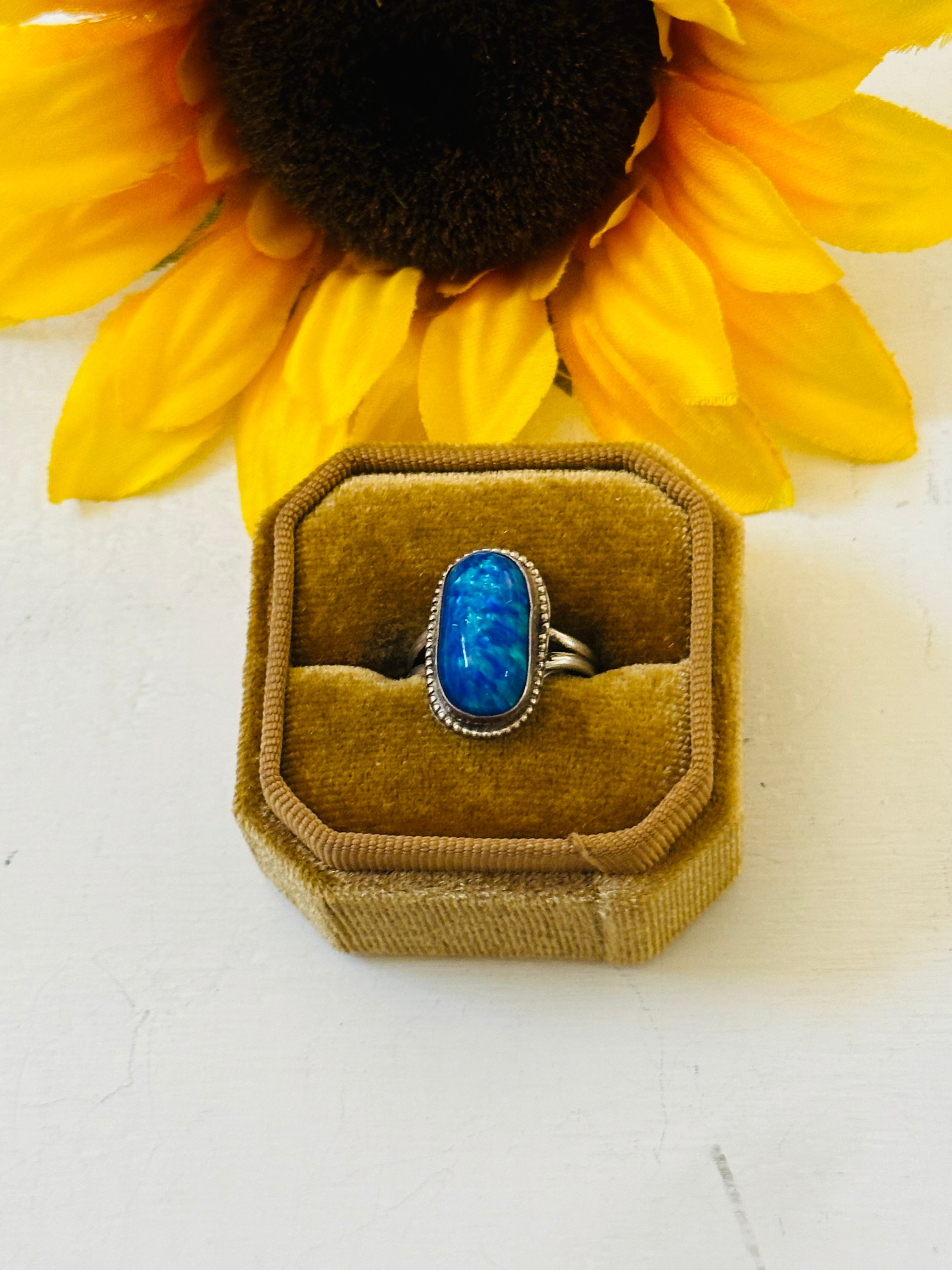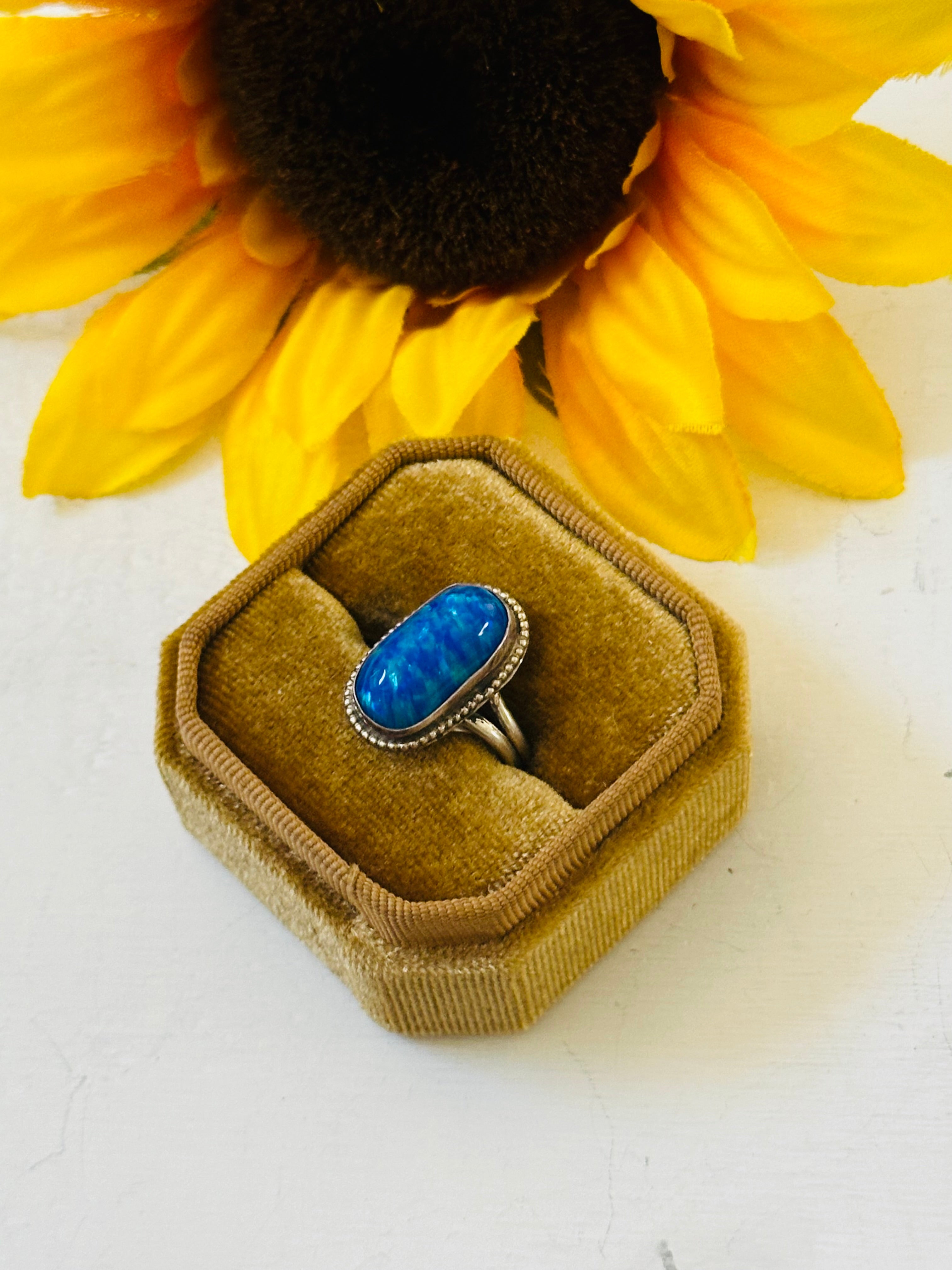 Navajo Made Blue Opal & Sterling Silver Ring Size 6.5