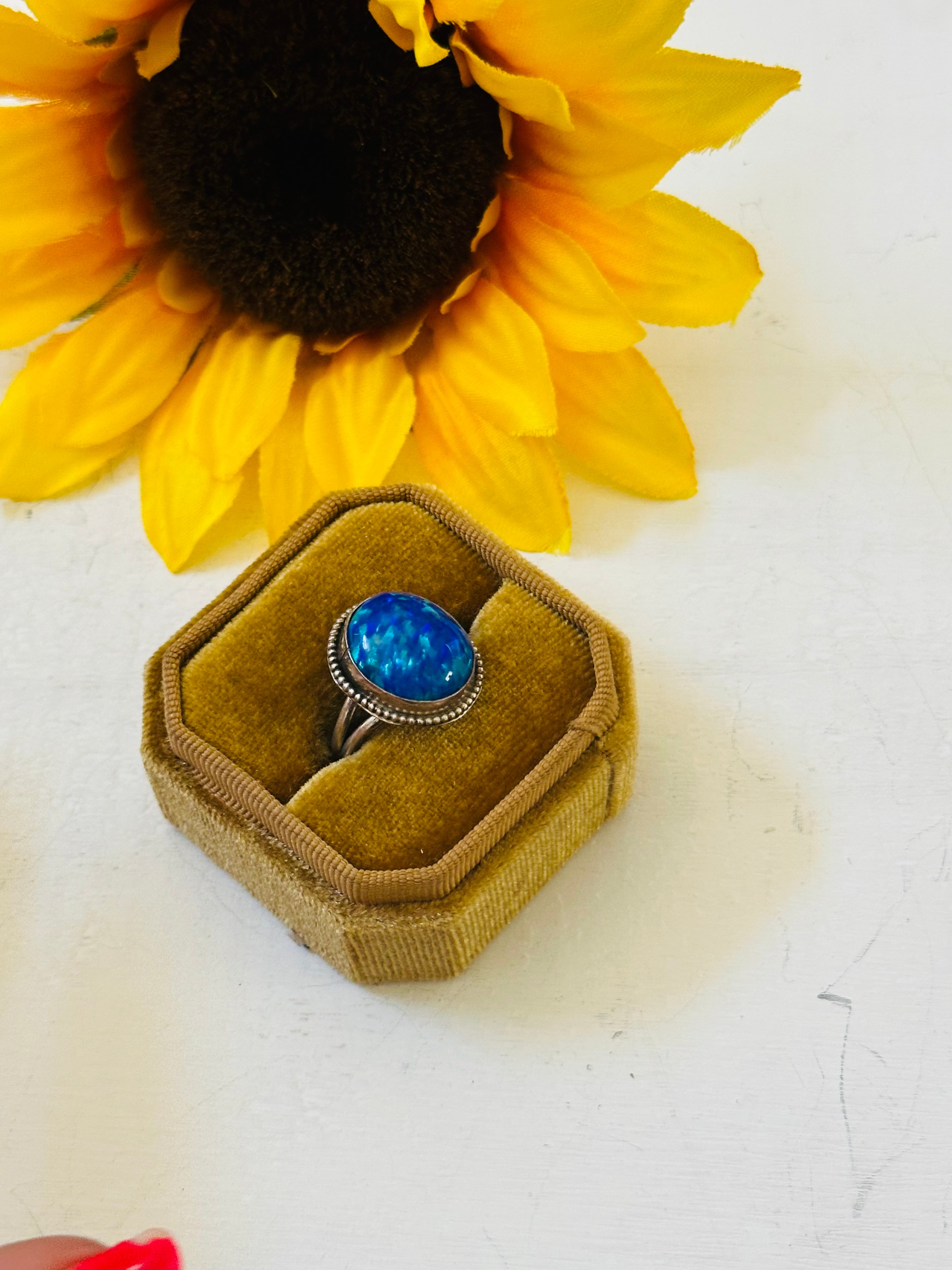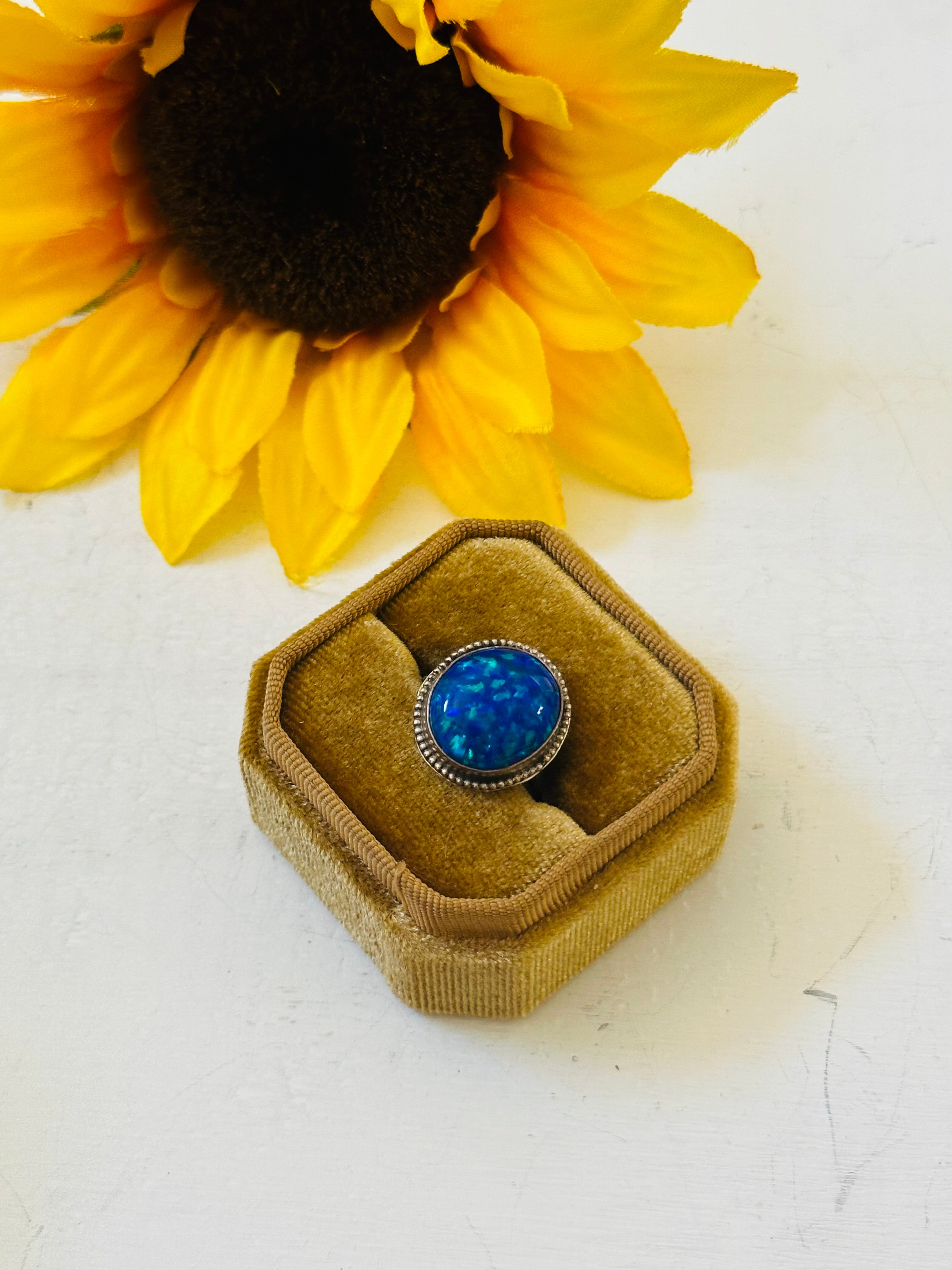 Navajo Made Blue Opal & Sterling Silver Ring Size 7.5