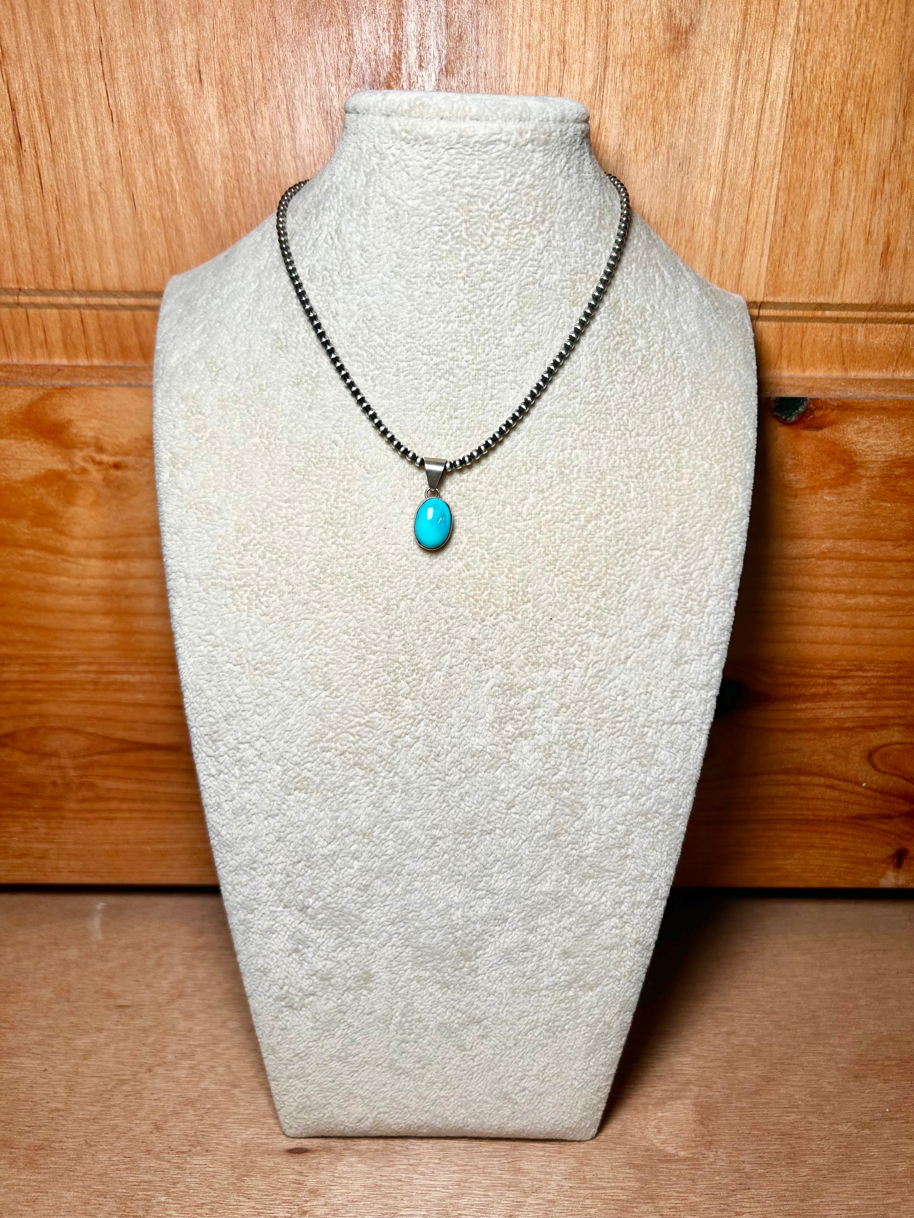 Navajo Made Blue Ridge Turquoise & Sterling Silver Pendant