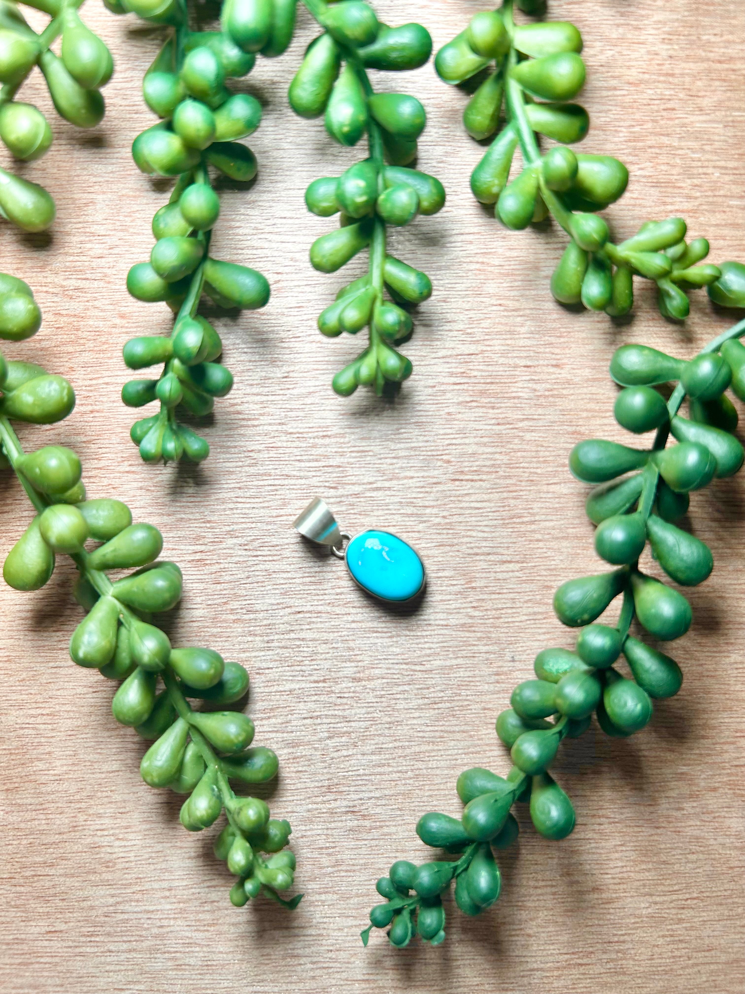Navajo Made Blue Ridge Turquoise & Sterling Silver Pendant. It measures 1 inch long and 1/2 of an inch wide. Pendant Only! Signed by the artist and stamped sterling silver.
