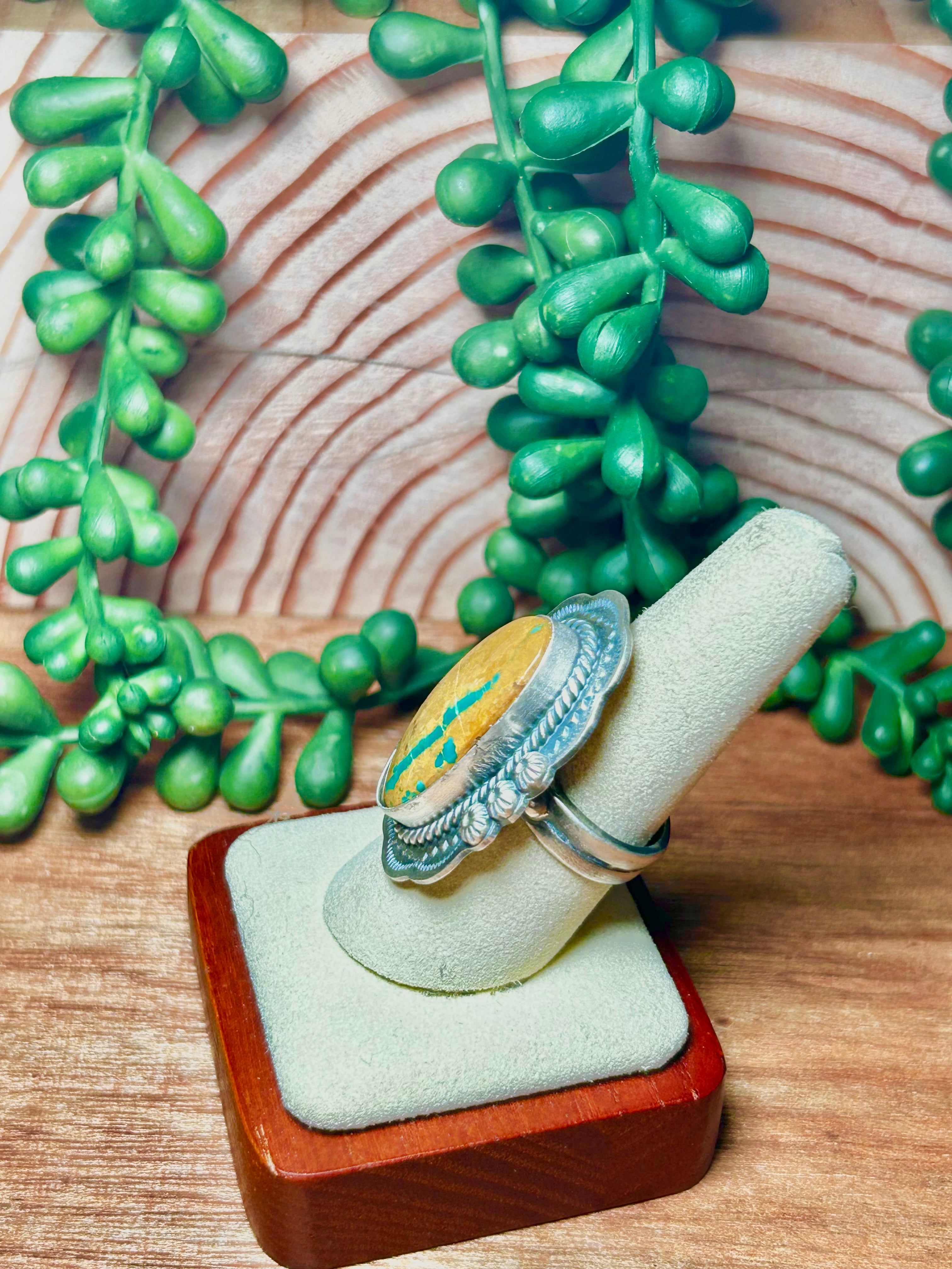 Navajo Made Bonlder Turquoise & Sterling Silver Adjustable Ring