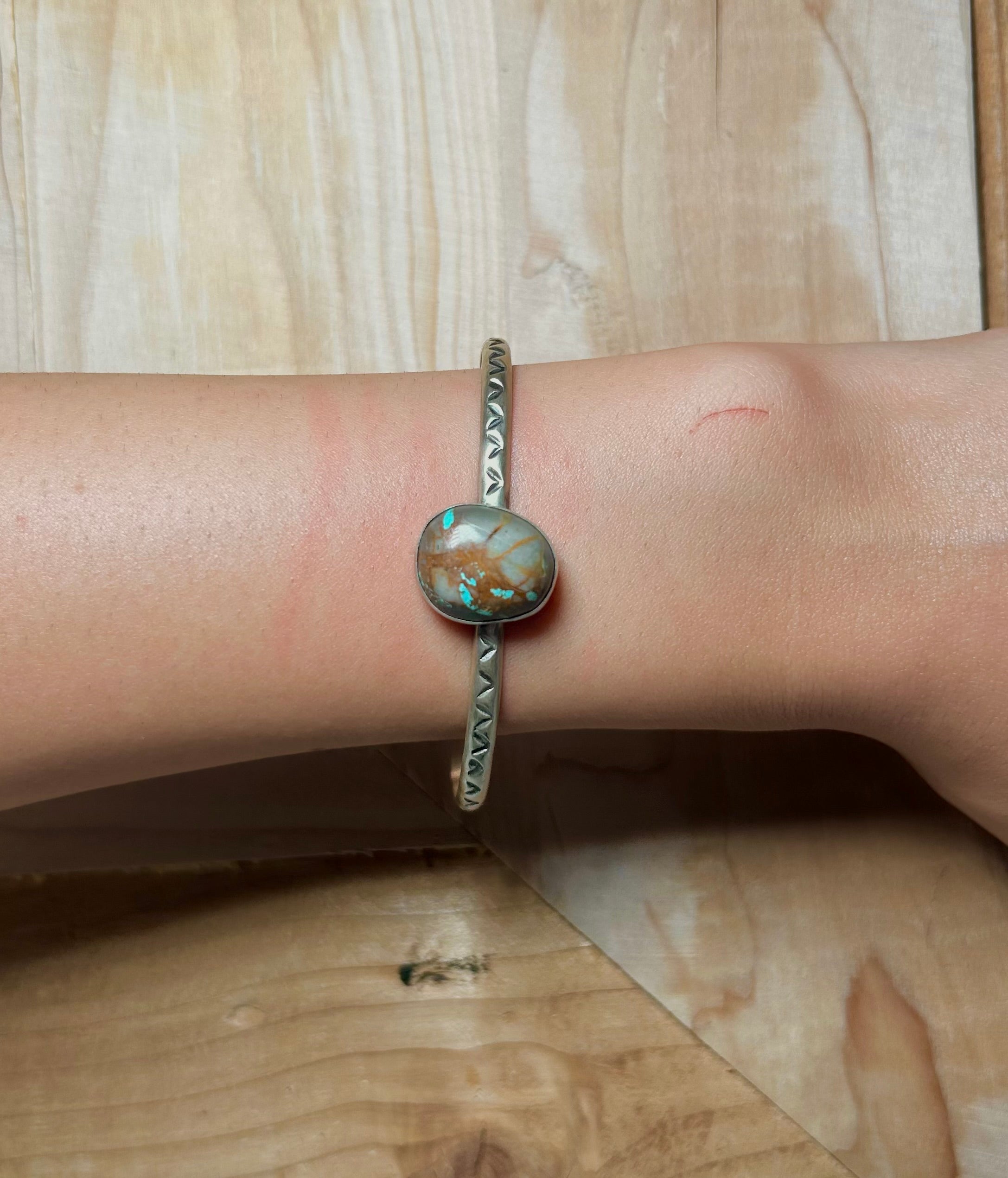 Navajo Made Boulder Turquoise & Sterling Silver Cuff Bracelet