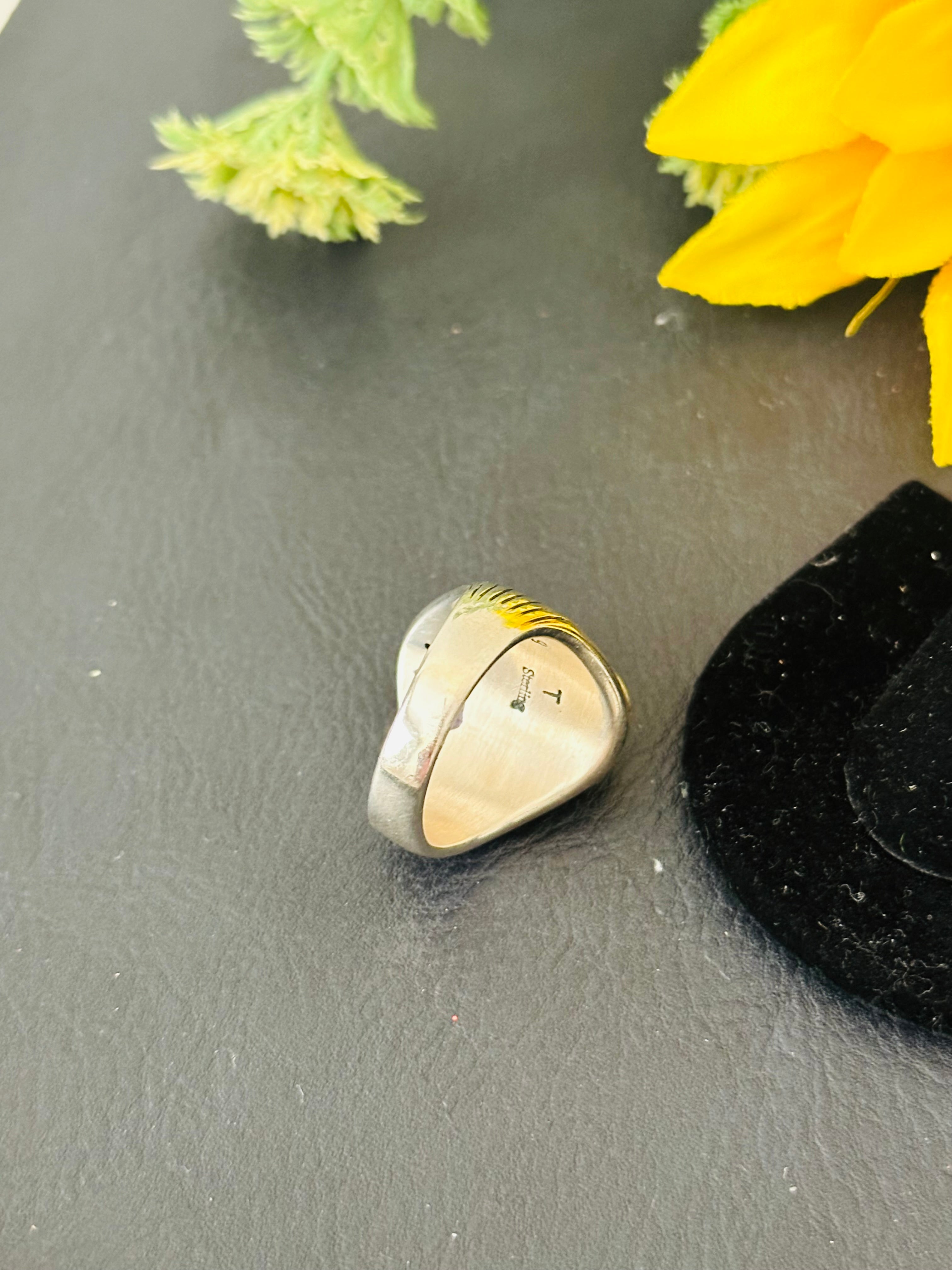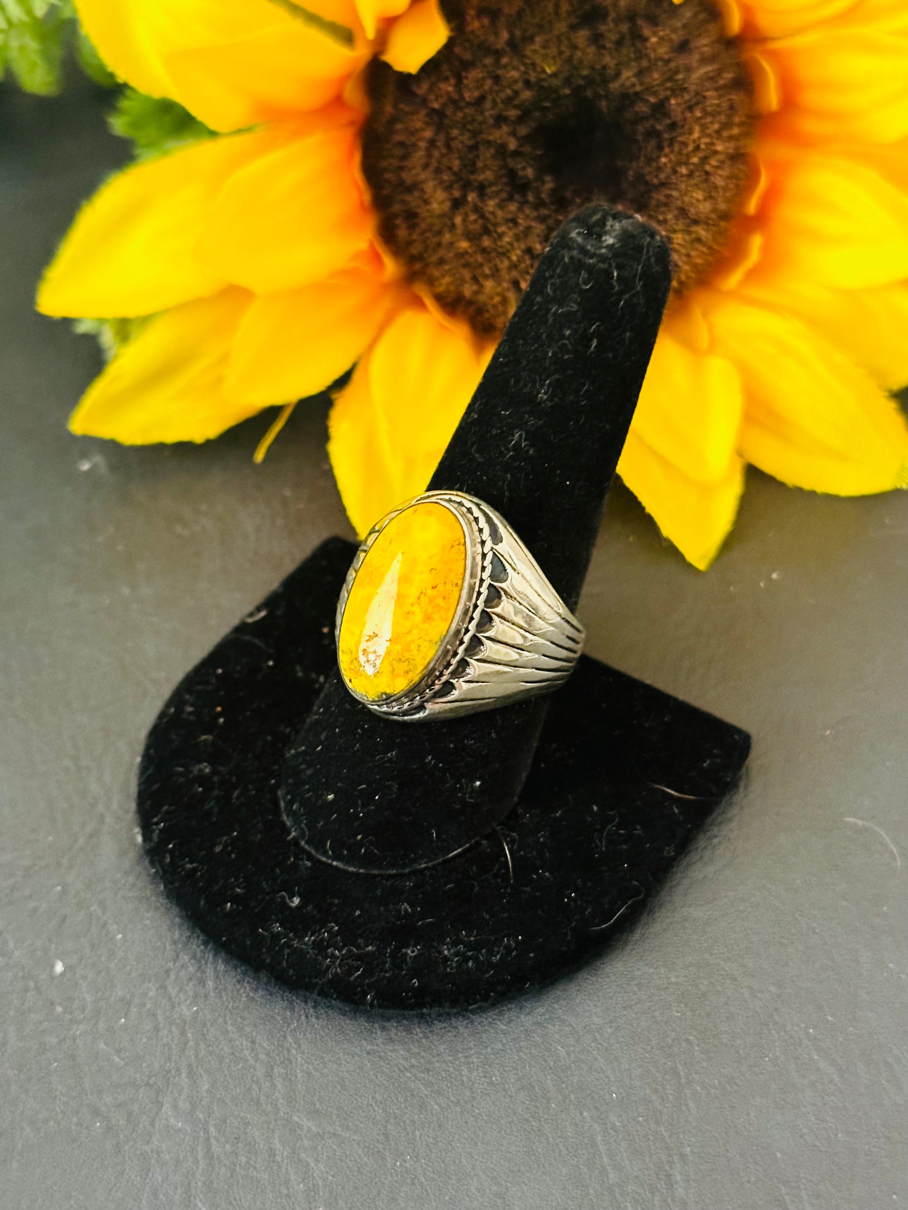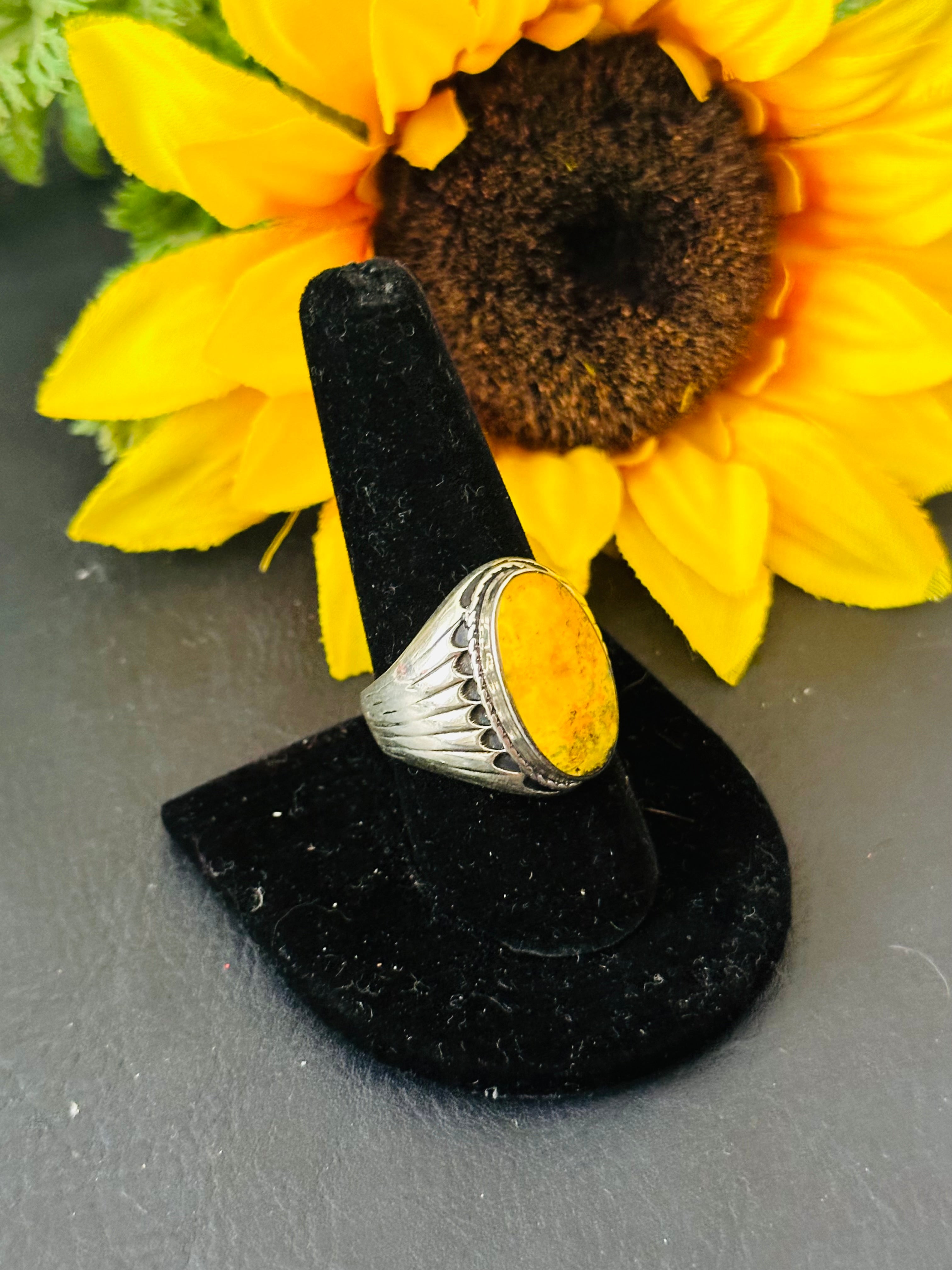 Navajo Made Bumblebee Jasper & Sterling Silver Ring Size 9.75