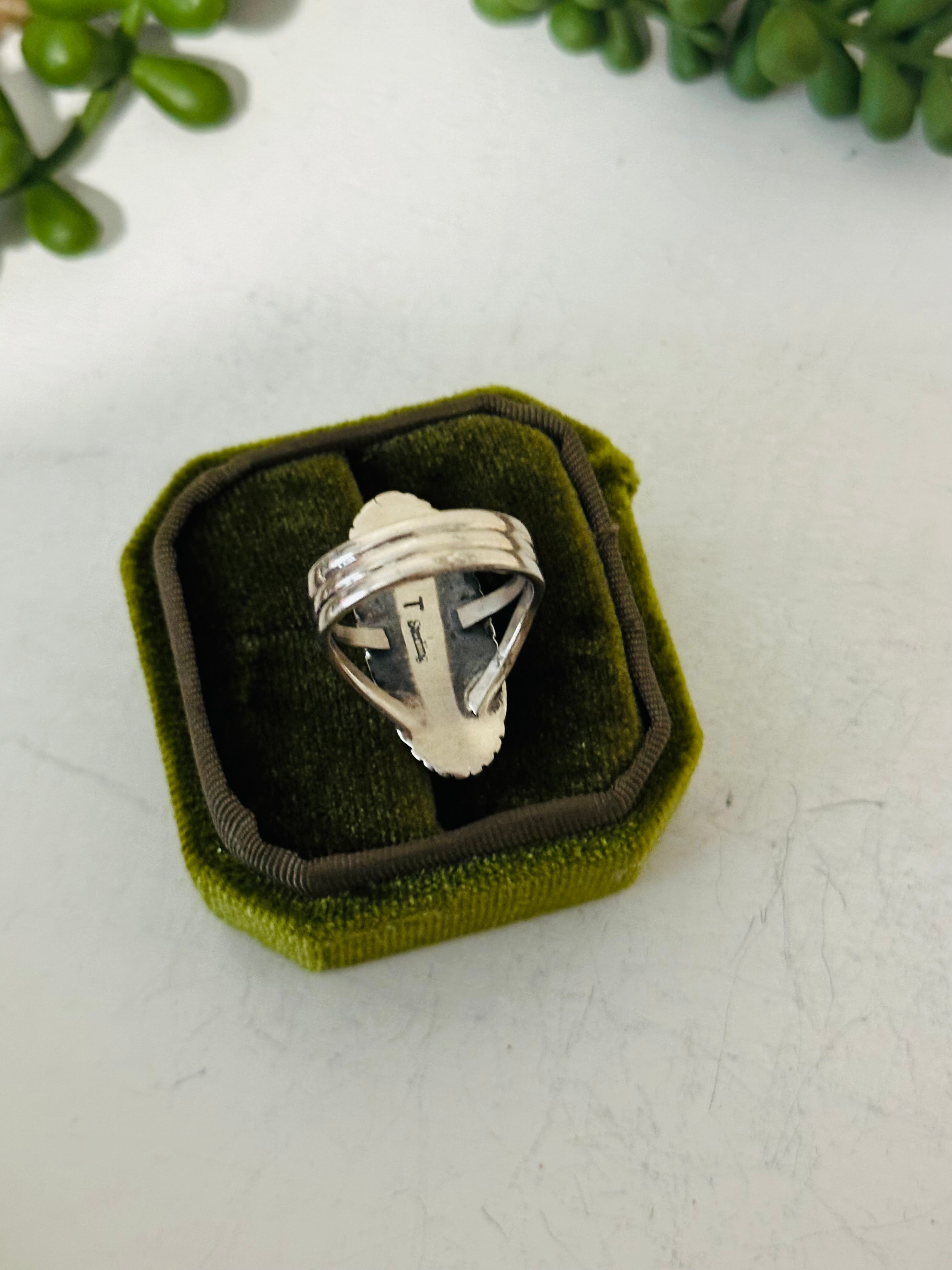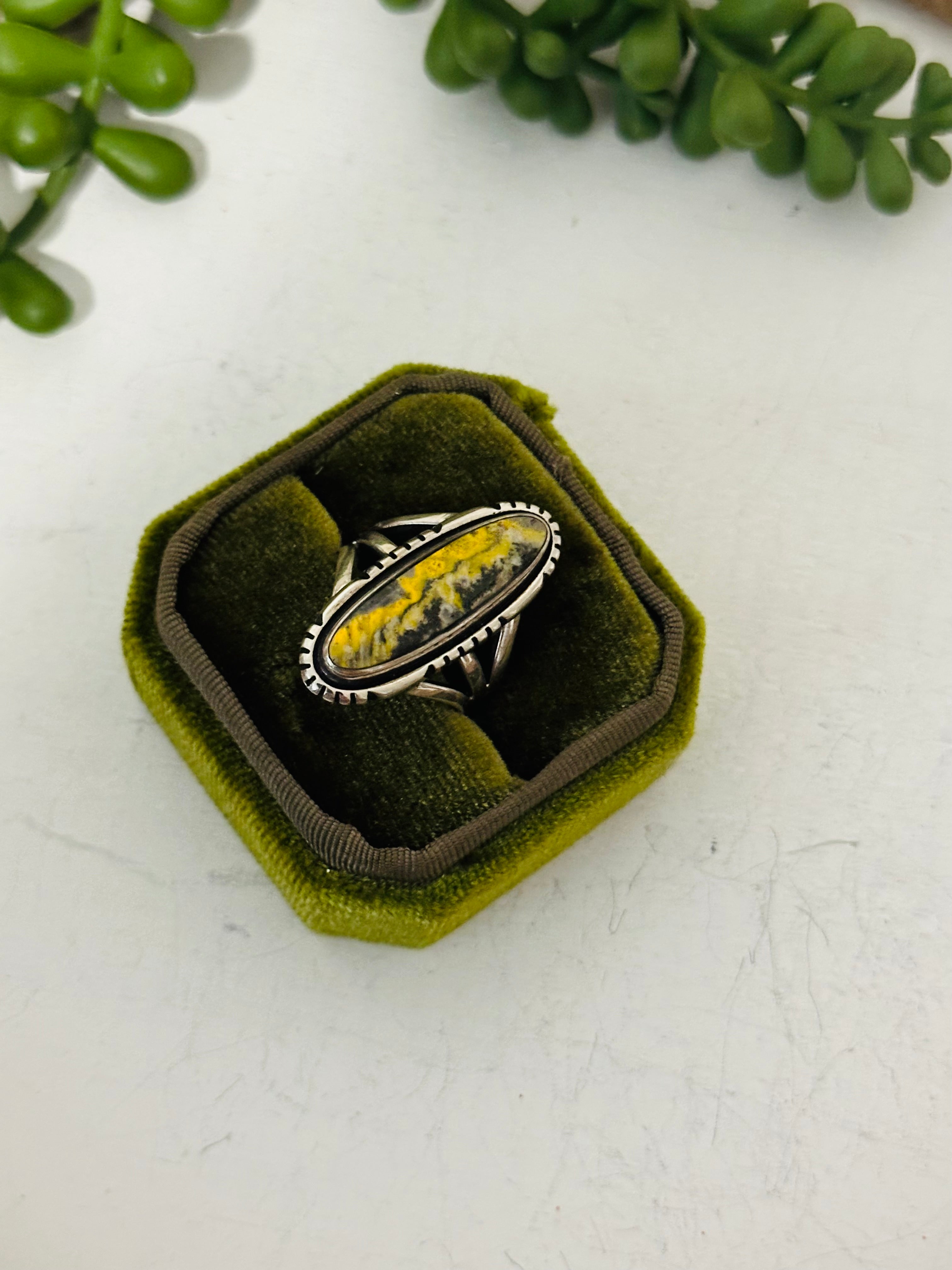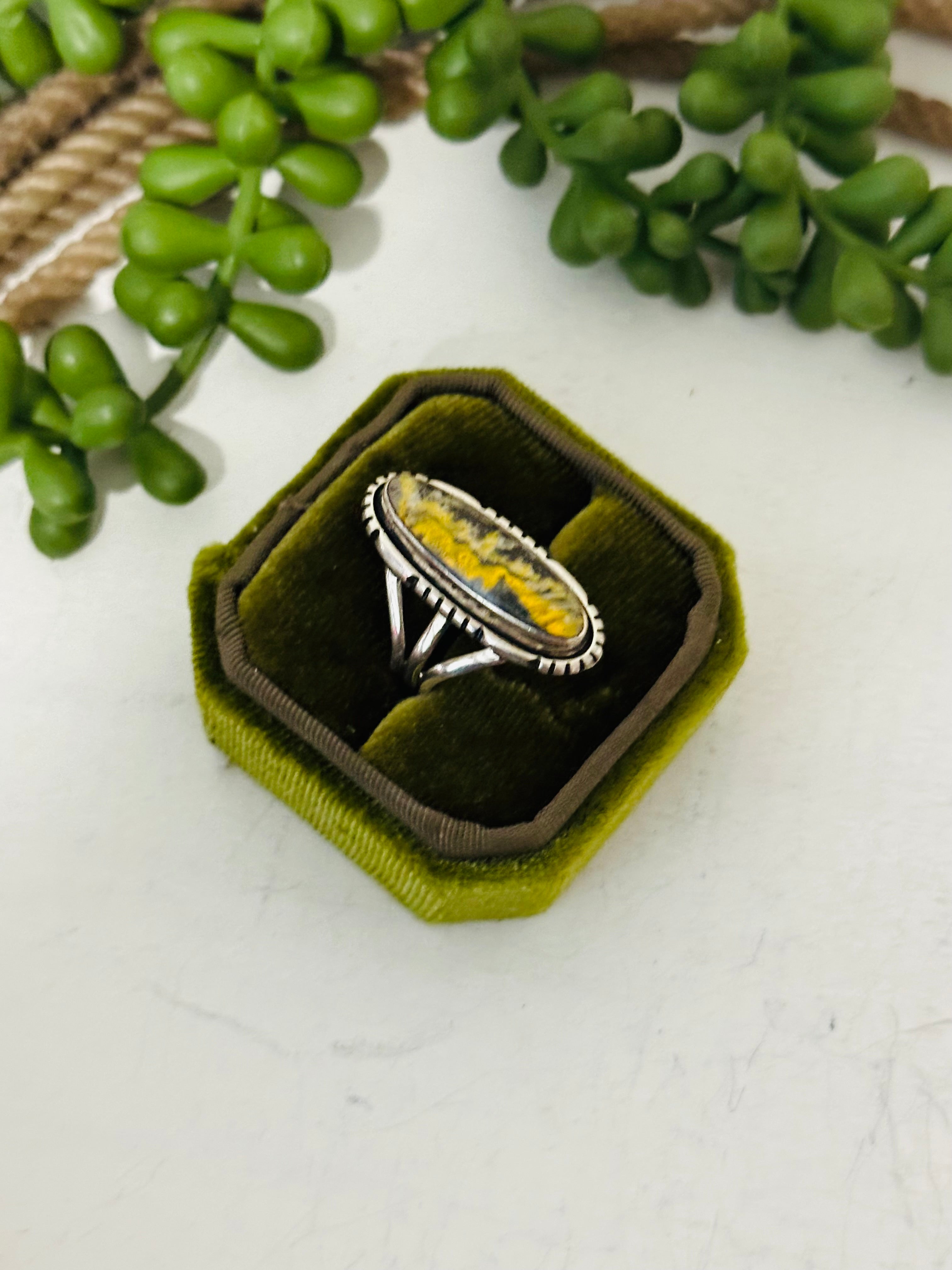 Navajo Made Bumblebee Jasper & Sterling Silver Ring Size 7.75