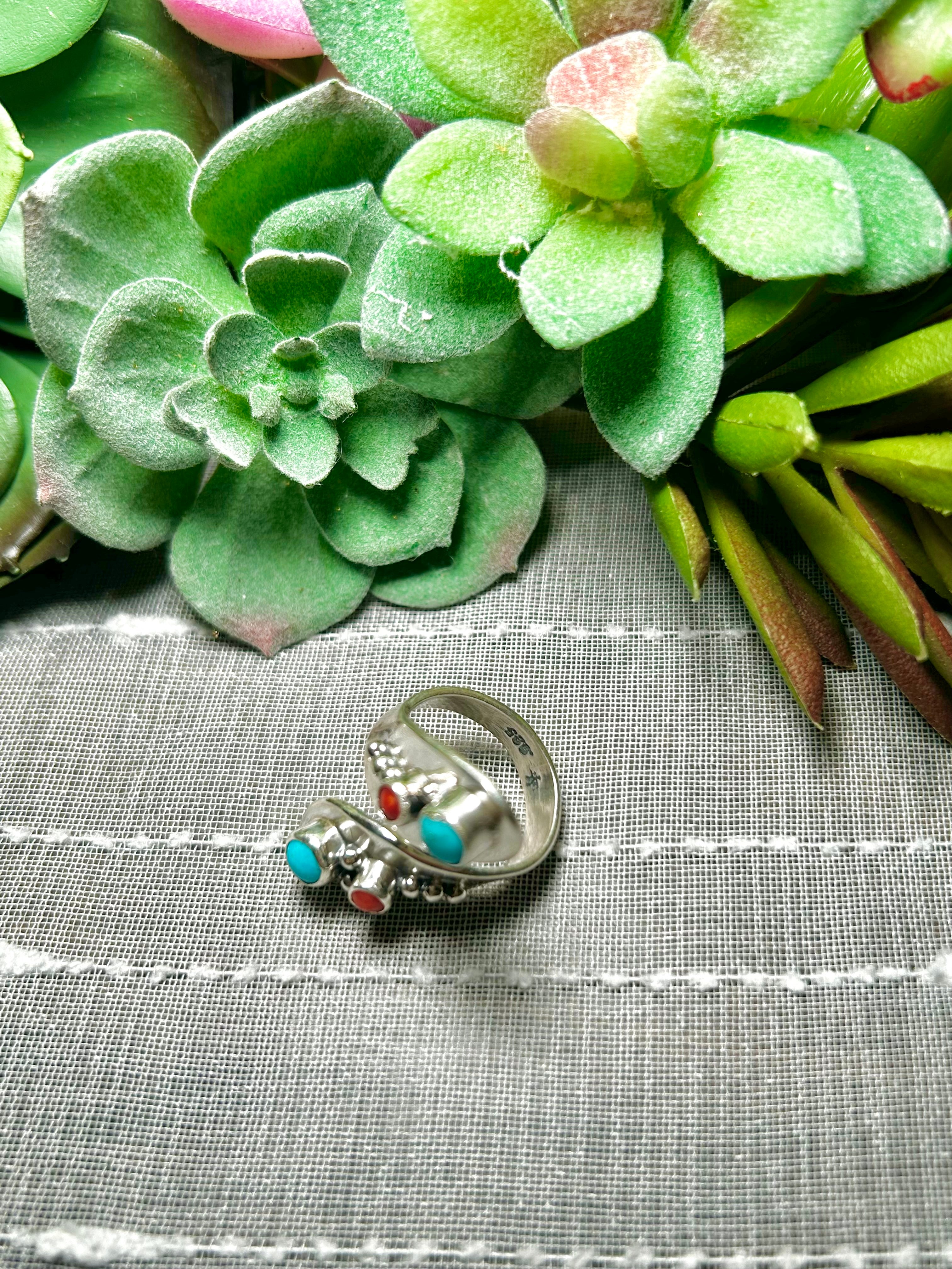 Navajo Made Multi Stone & Sterling Silver Adjustable Ring