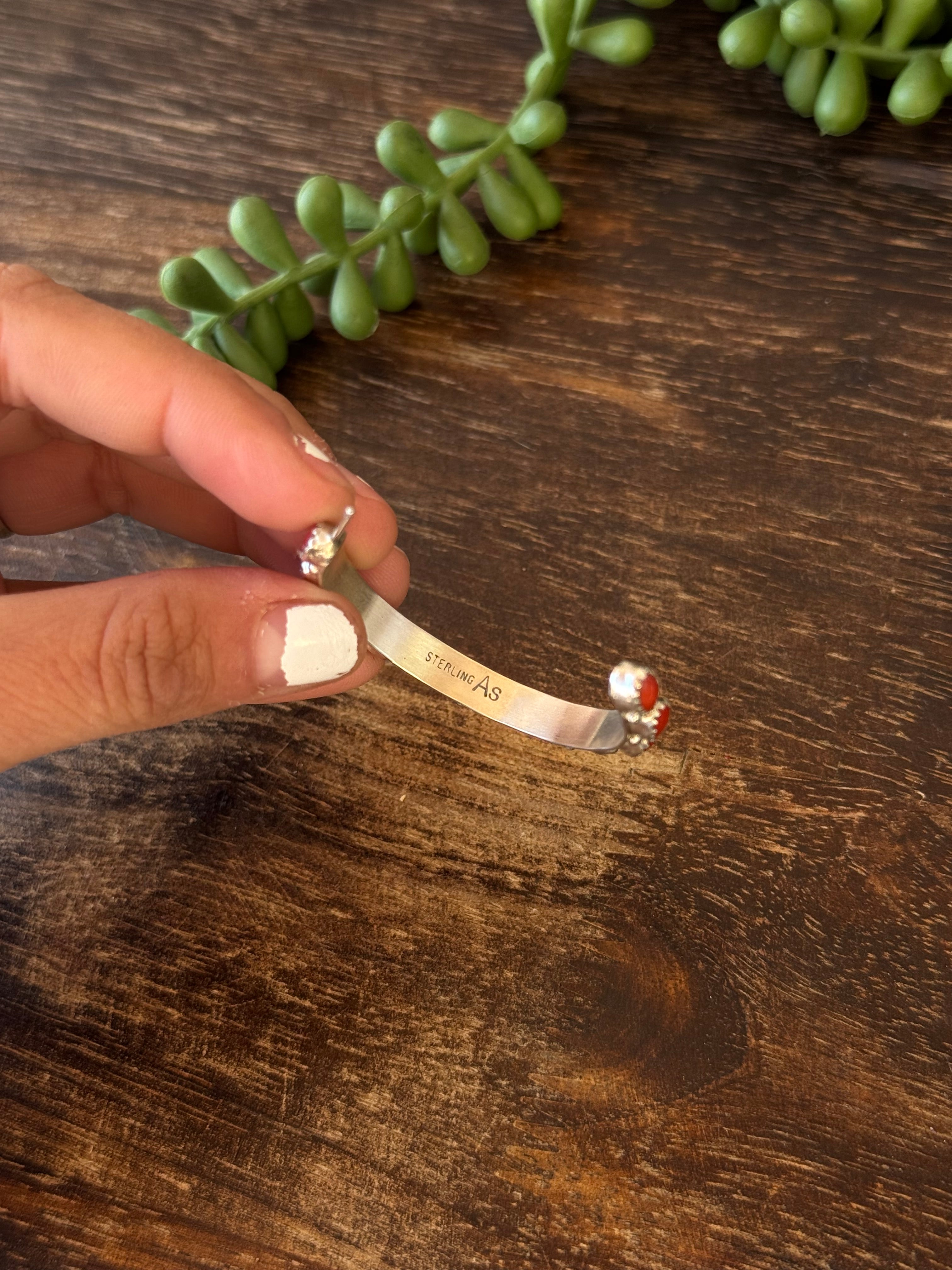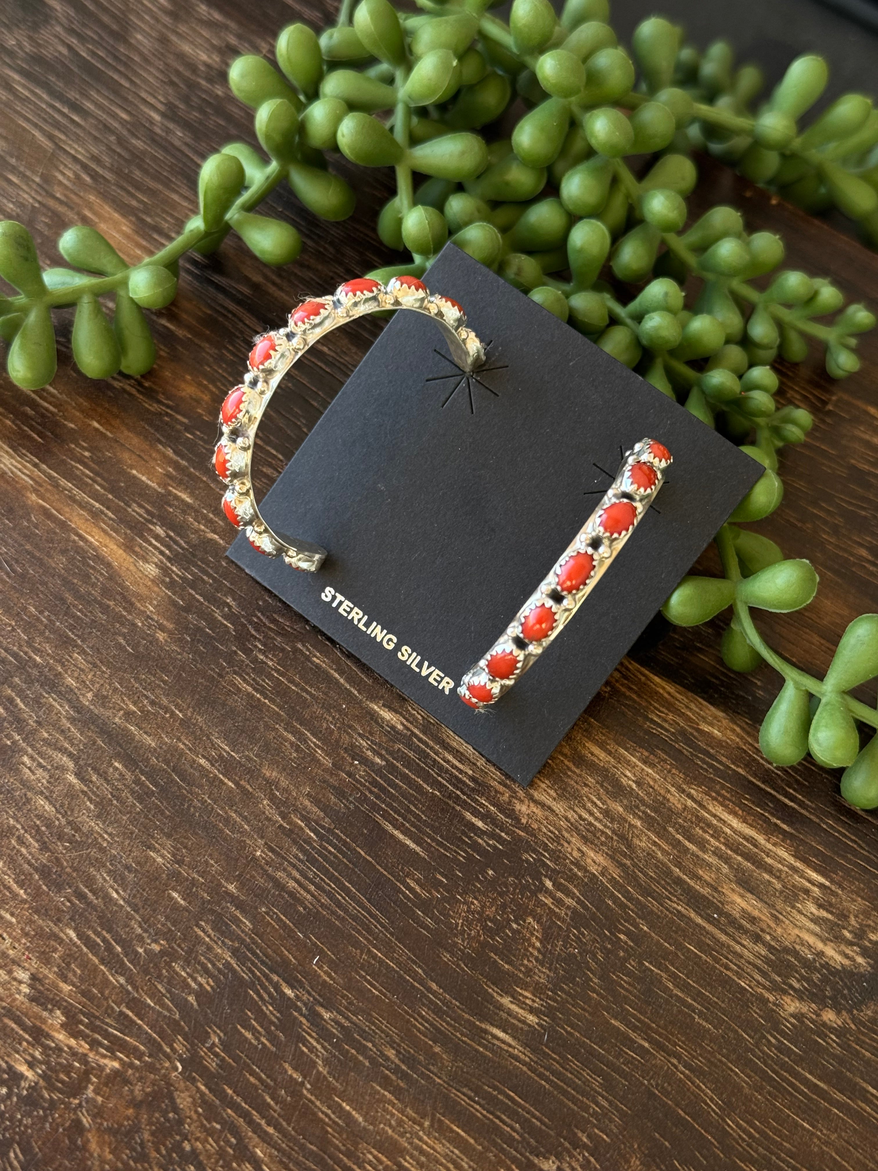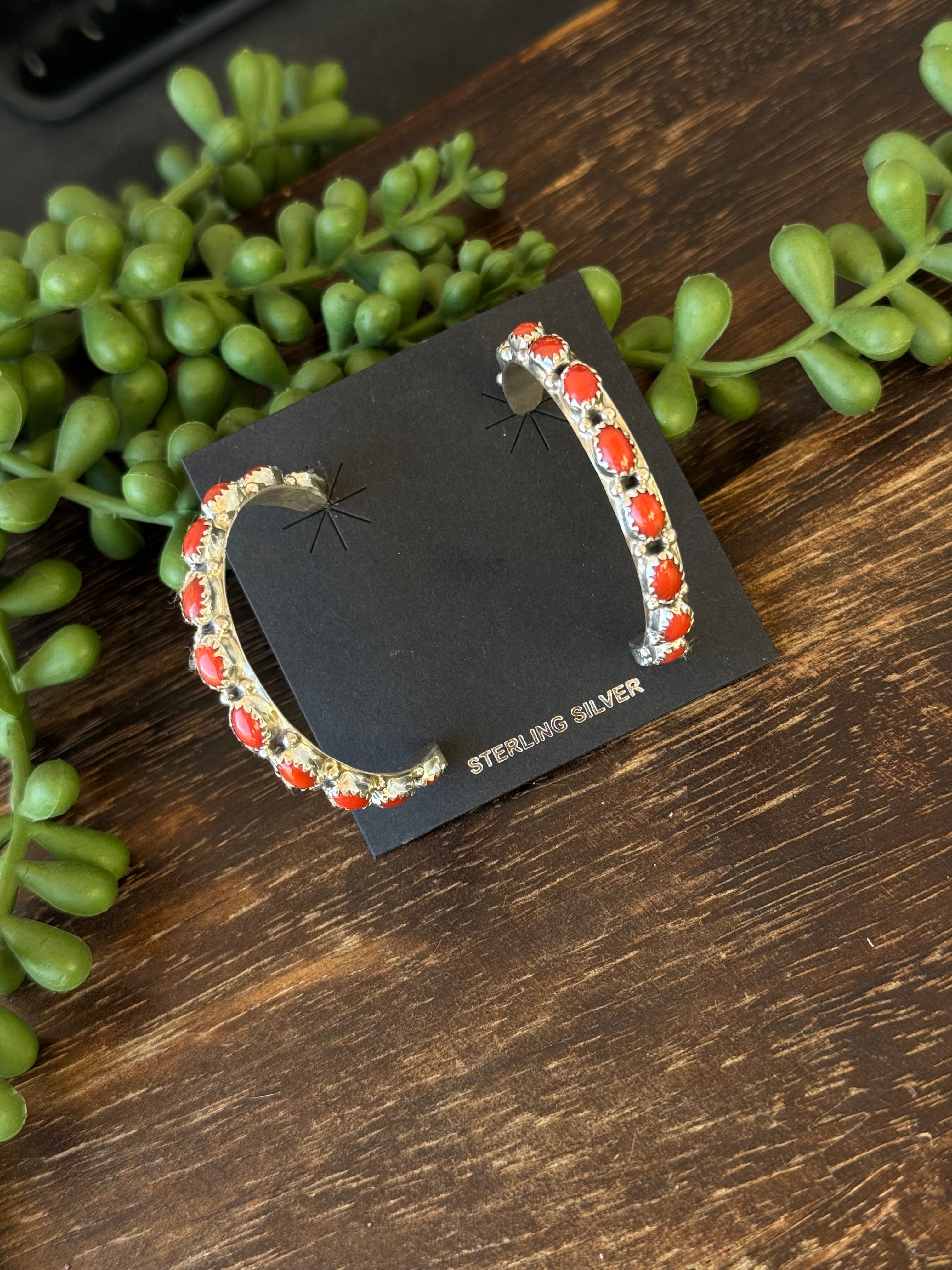 Navajo Made Coral & Sterling Silver Hoop Earrings