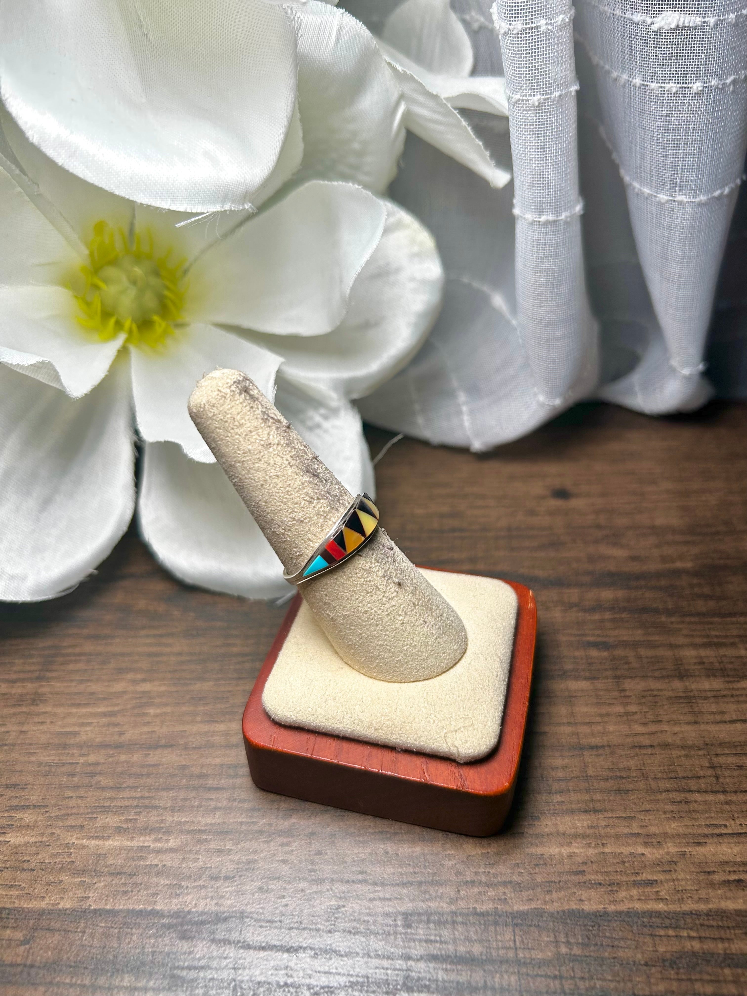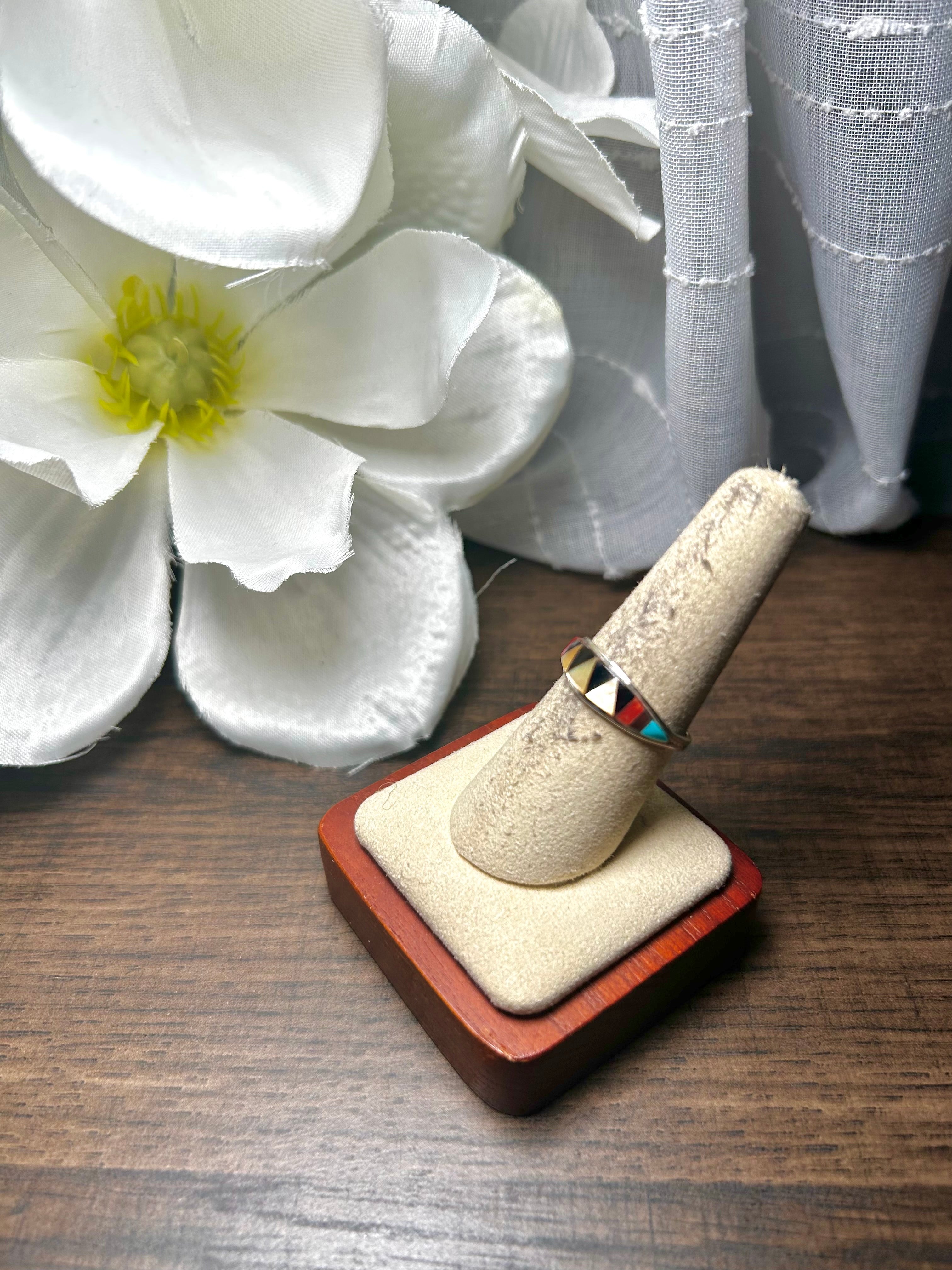 Zuni Made Multi Stone & Sterling Silver Ring Size 7.75