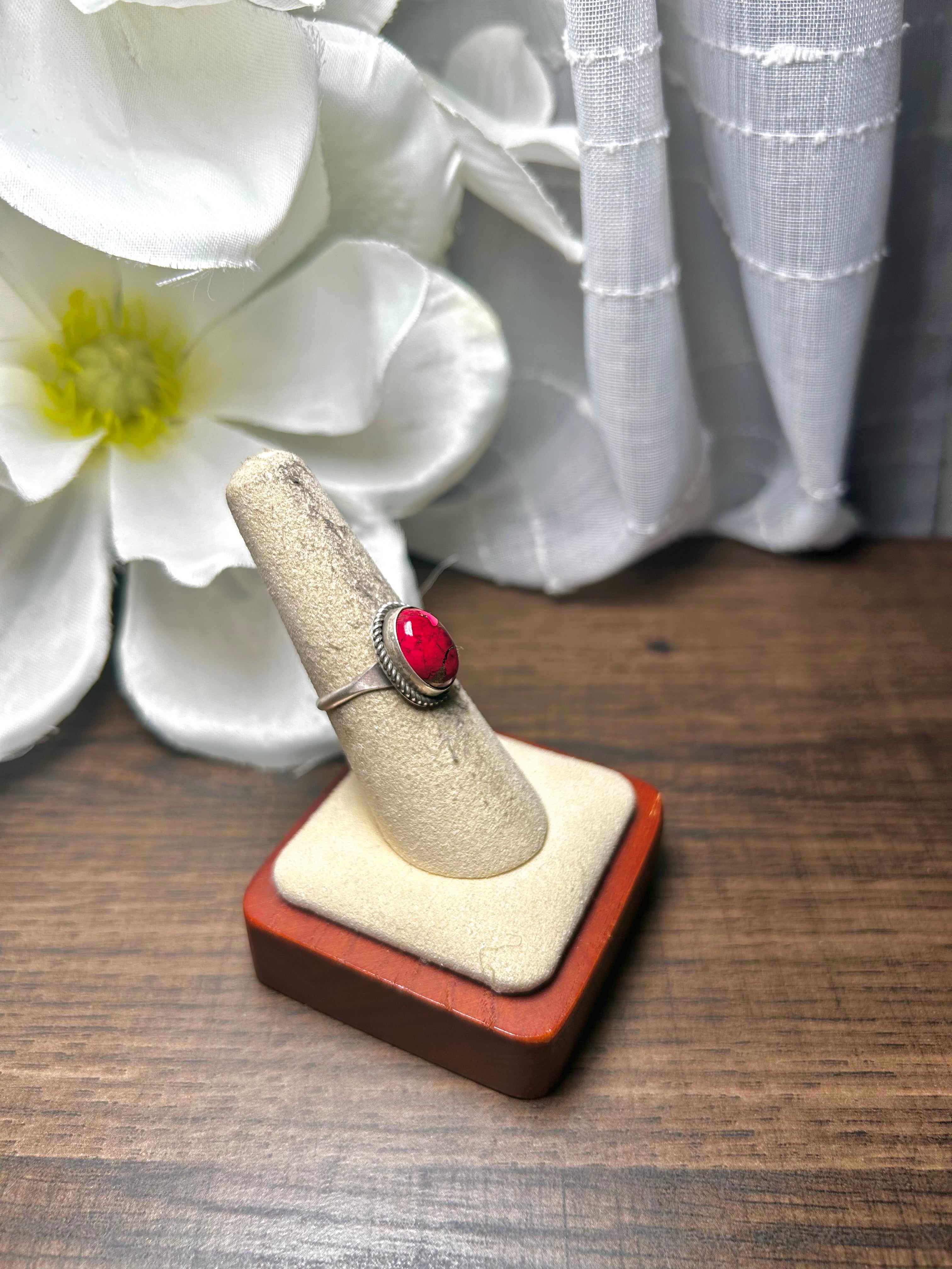 Navajo Made Rose Dahlia & Sterling Silver Ring