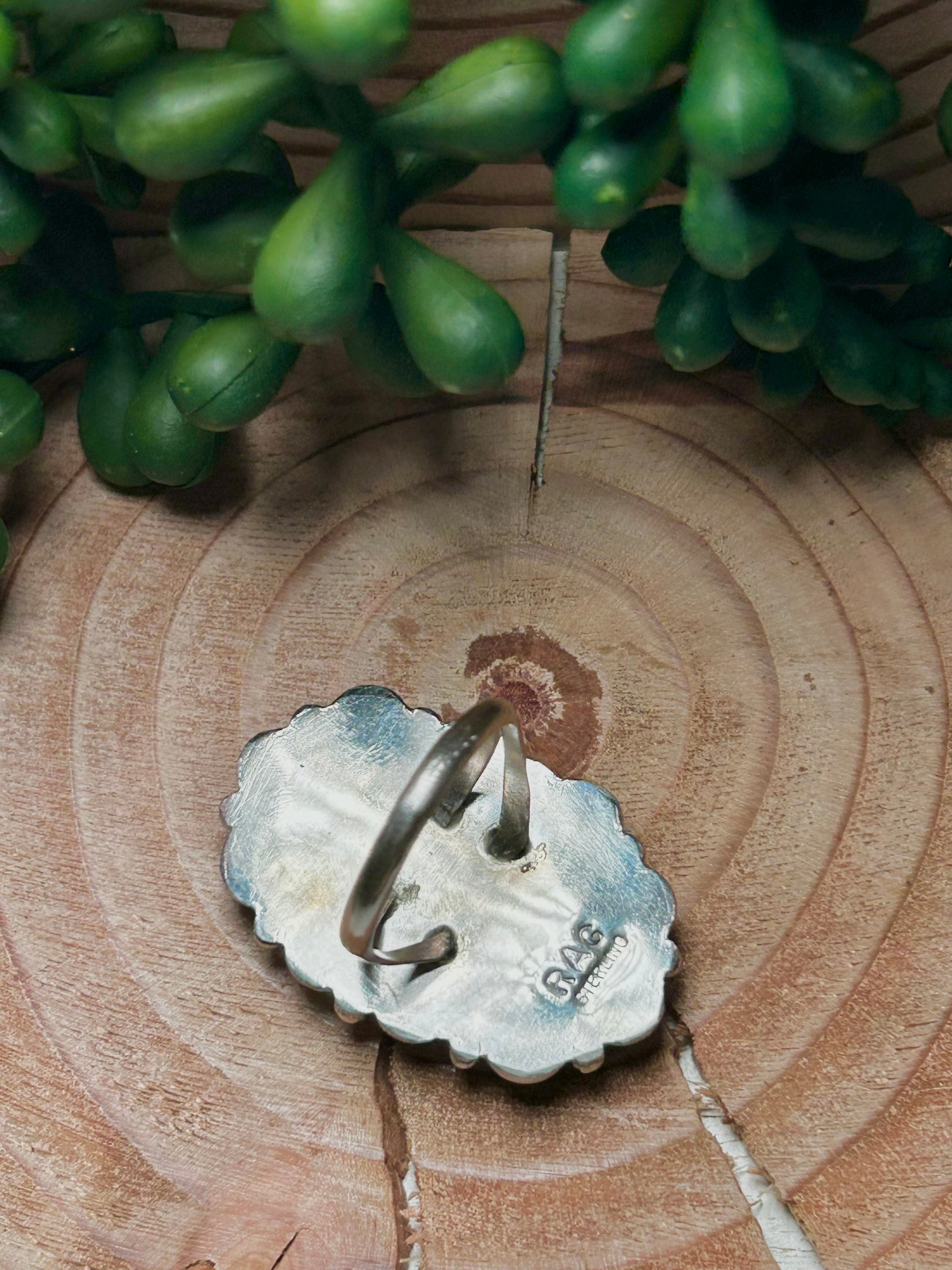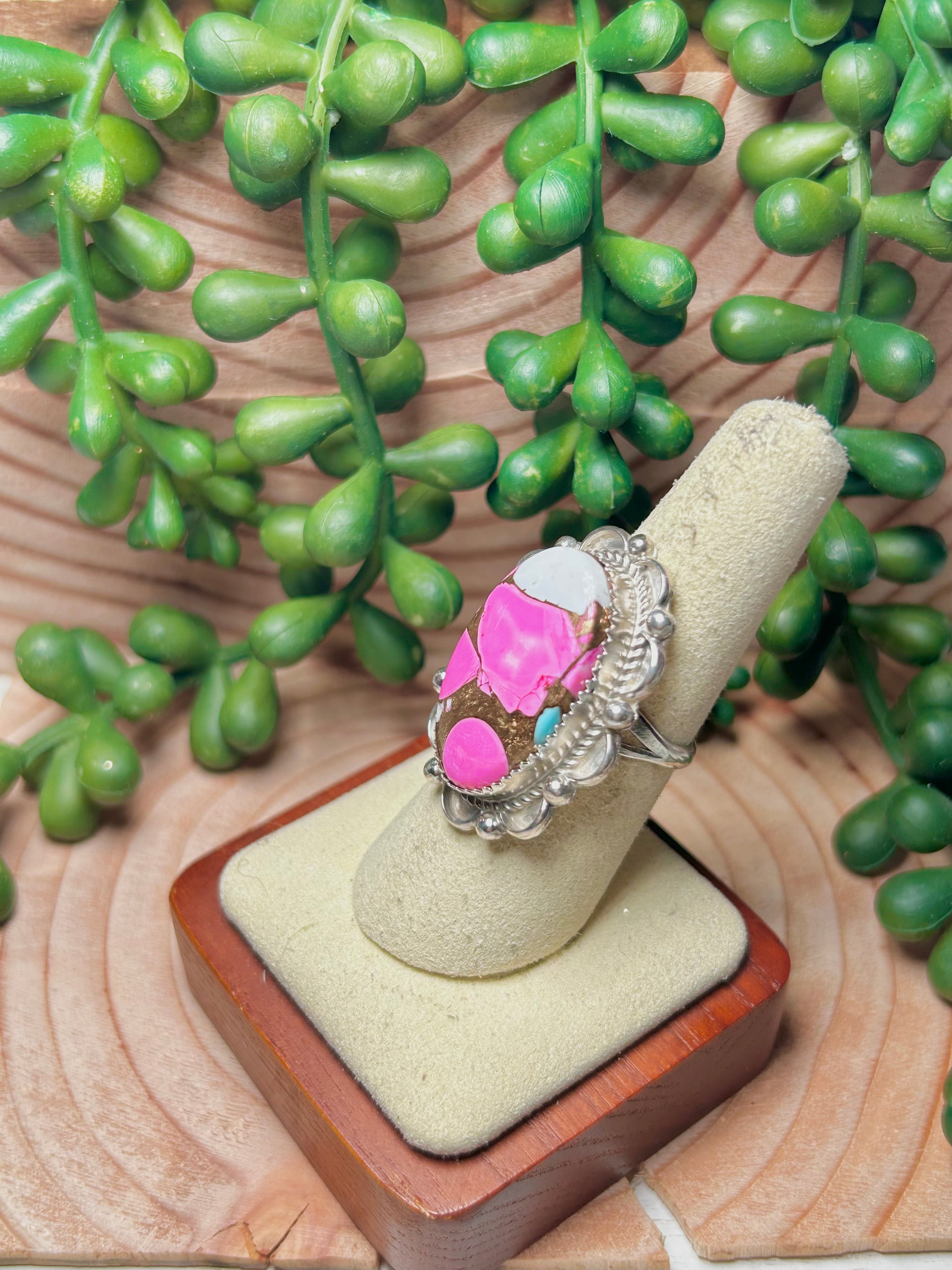 Navajo Made Cotton Candy Dahlia & Sterling Sliver Ring Size 7