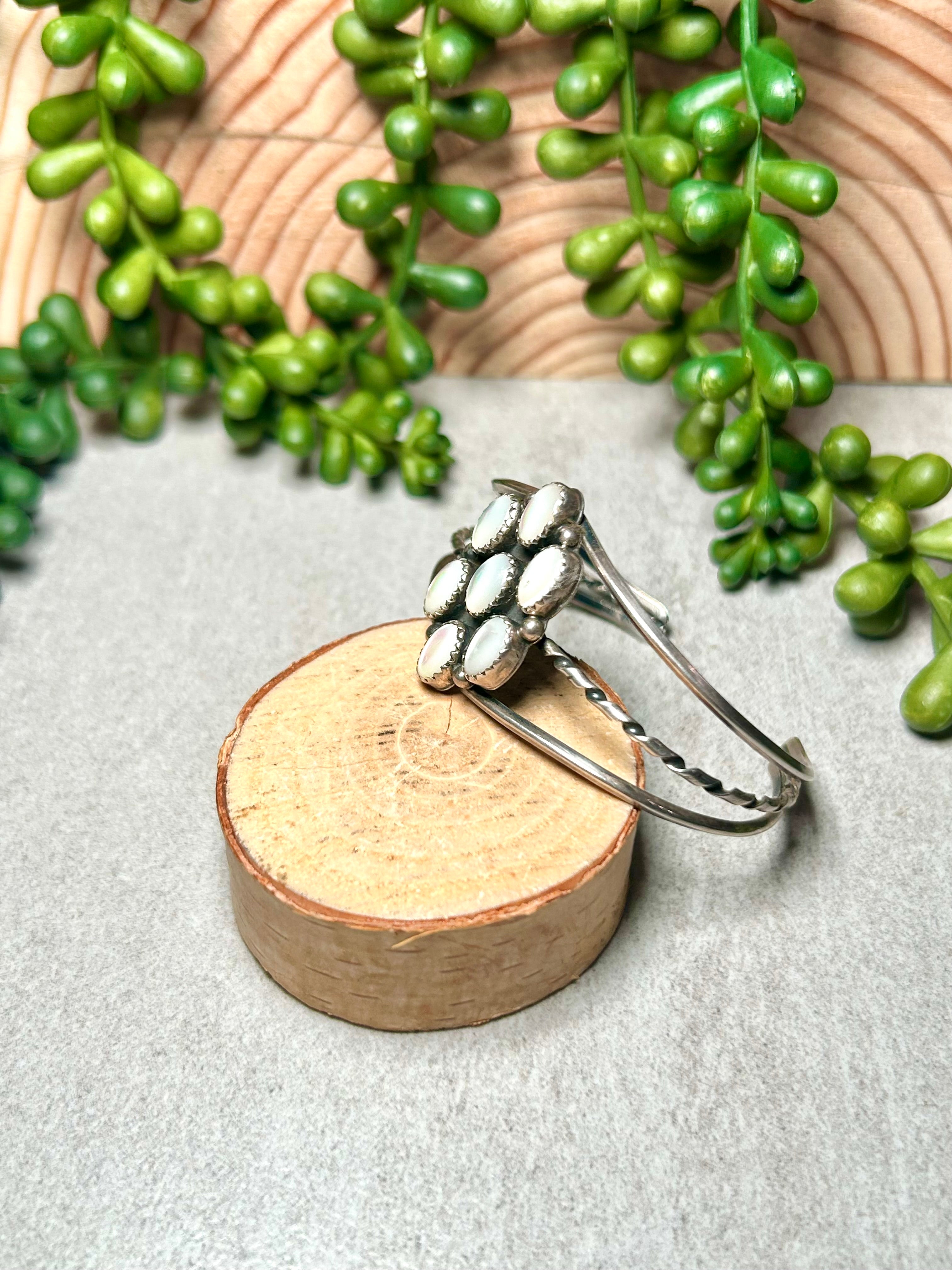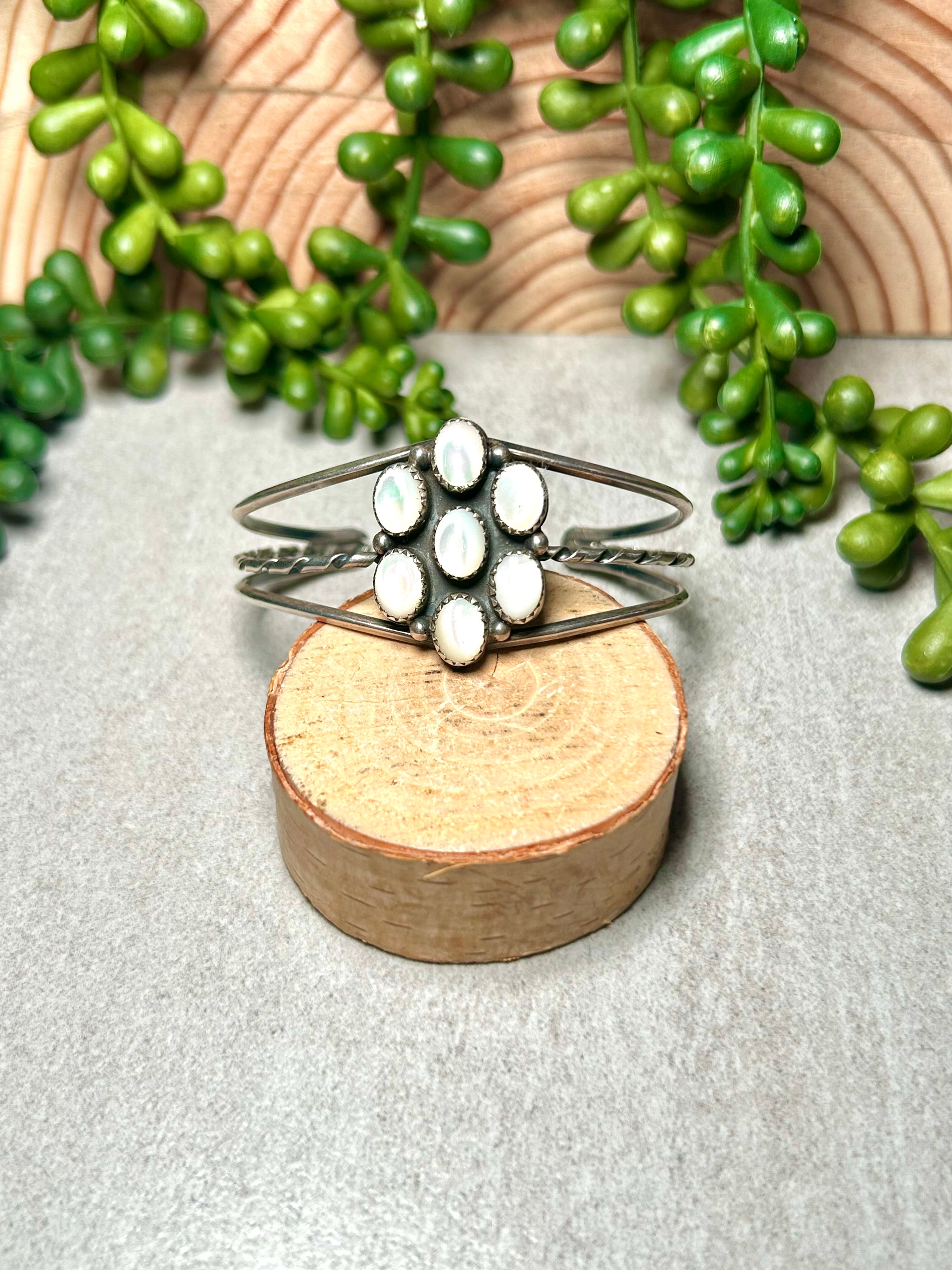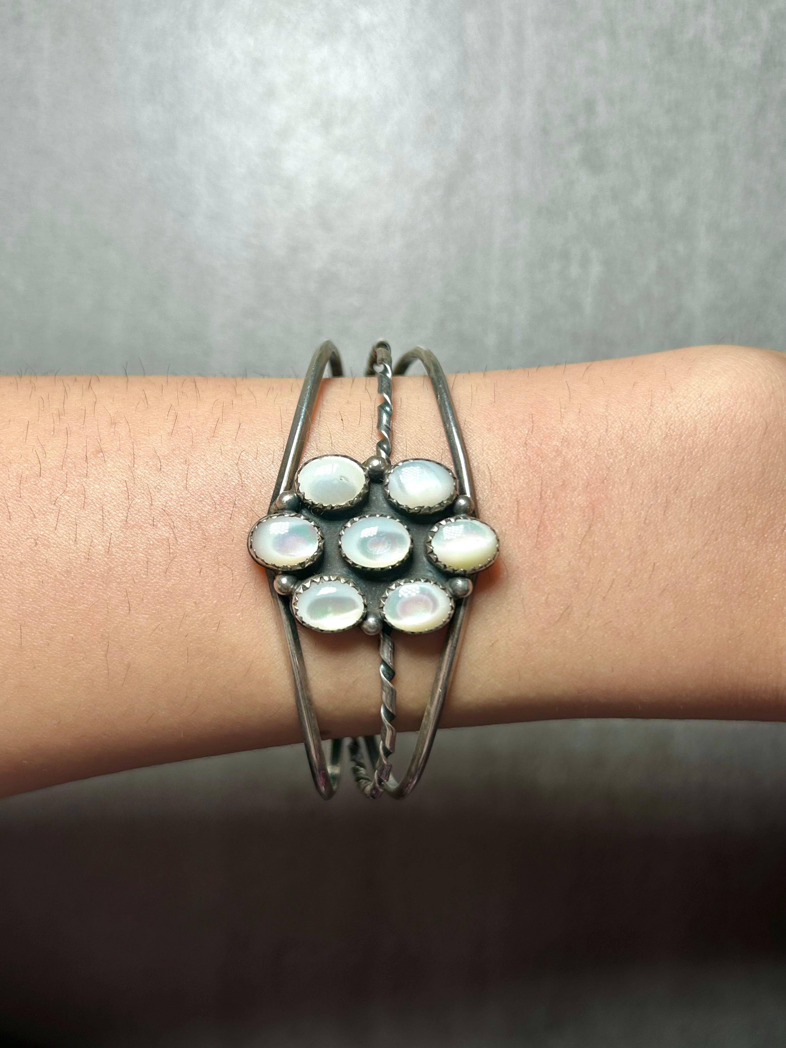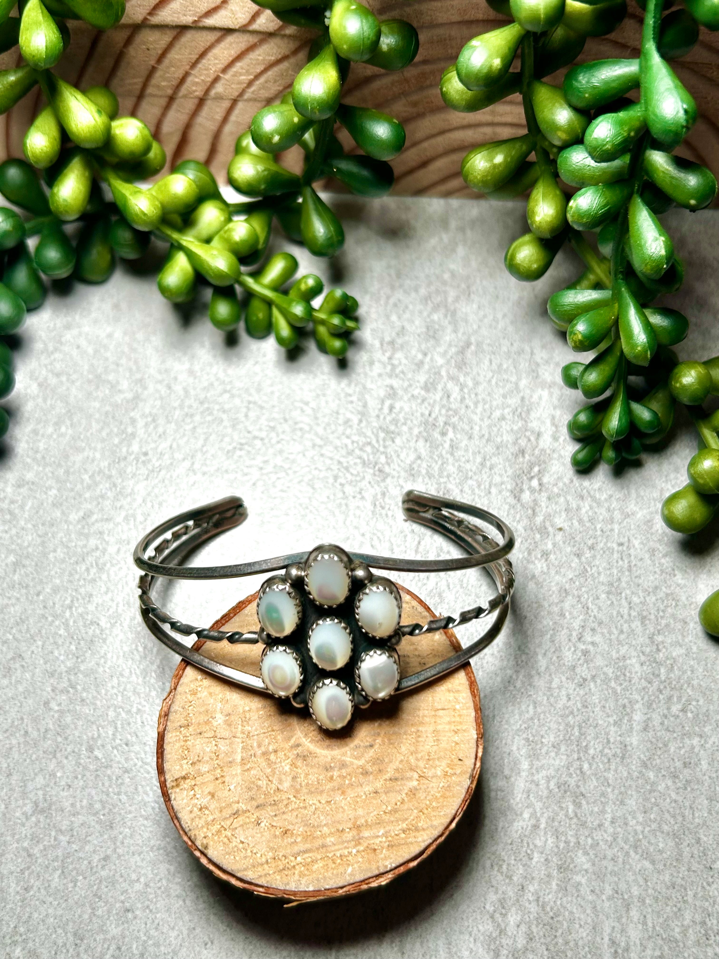 Navajo Made Mother of Pearl & Sterling Silver Cuff Bracelet