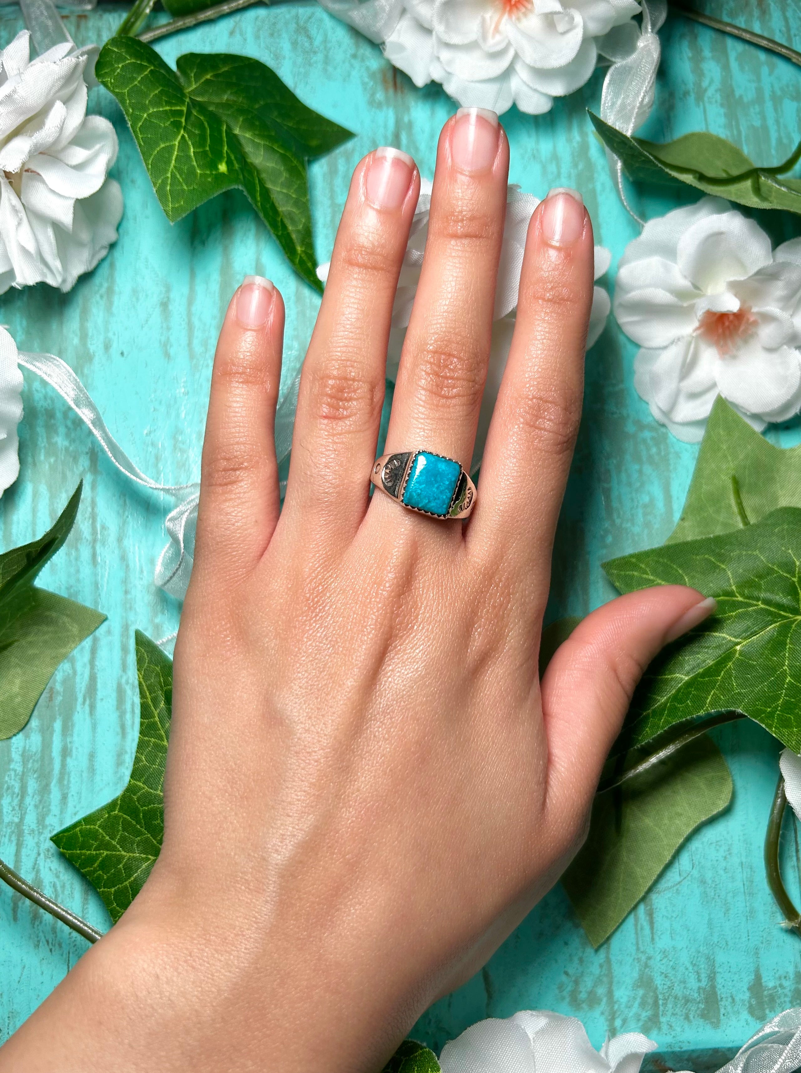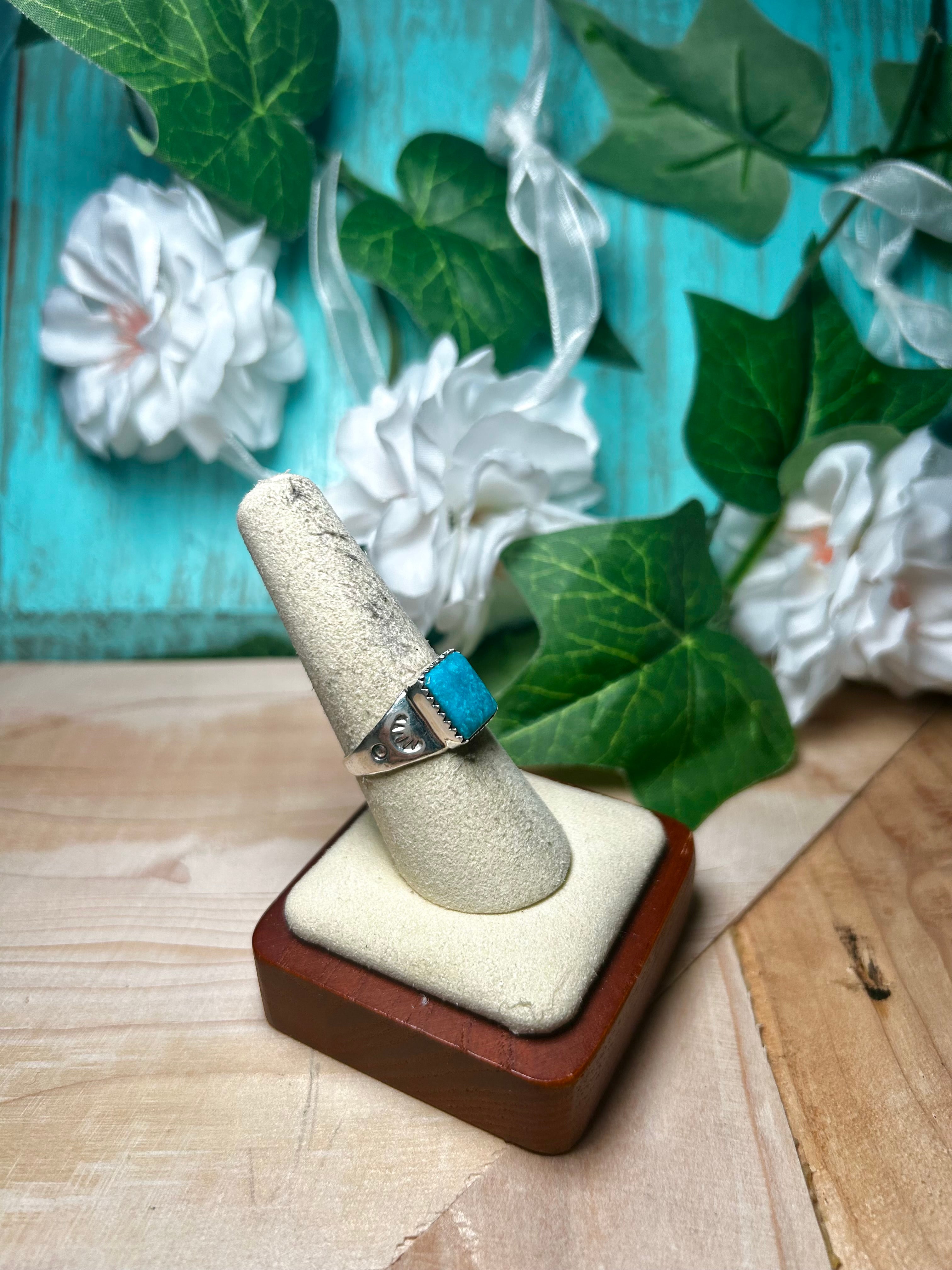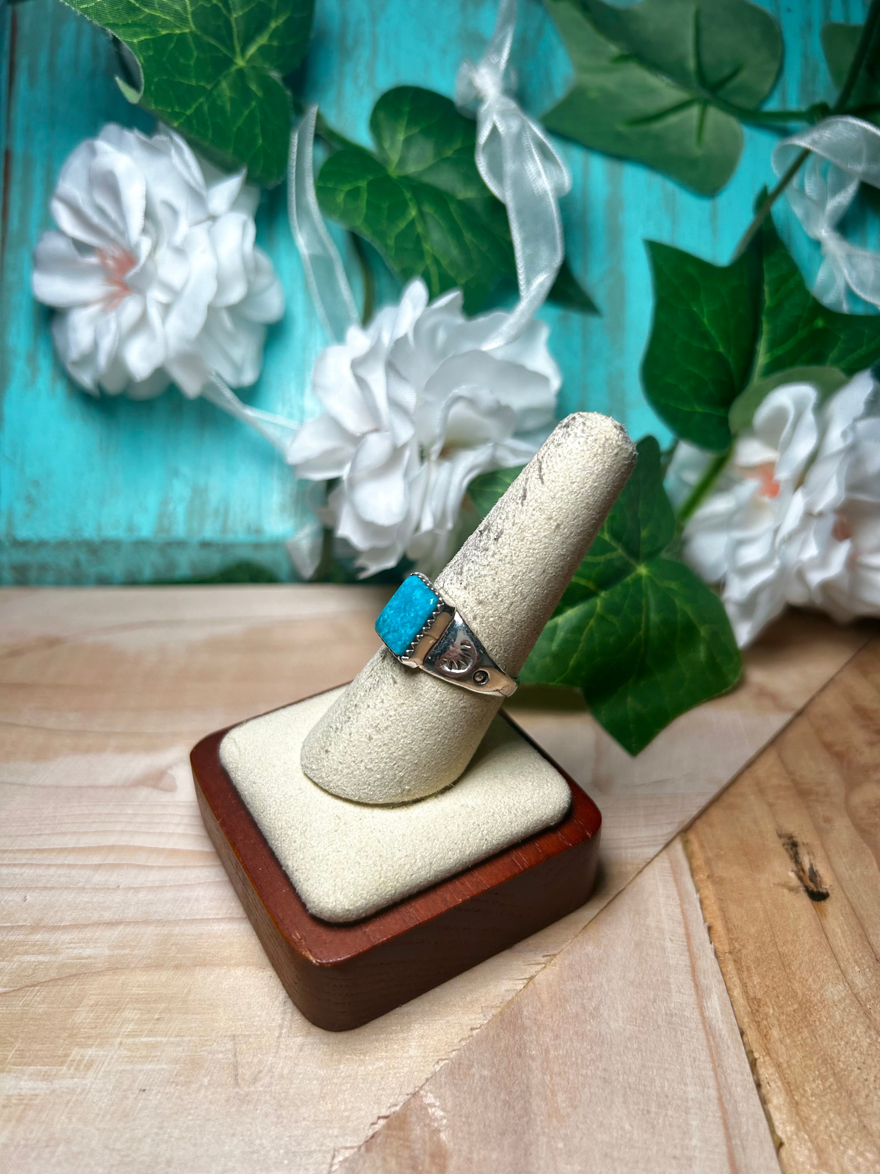 Navajo Made Royston Turquoise & Sterling Silver Ring Size 8.25