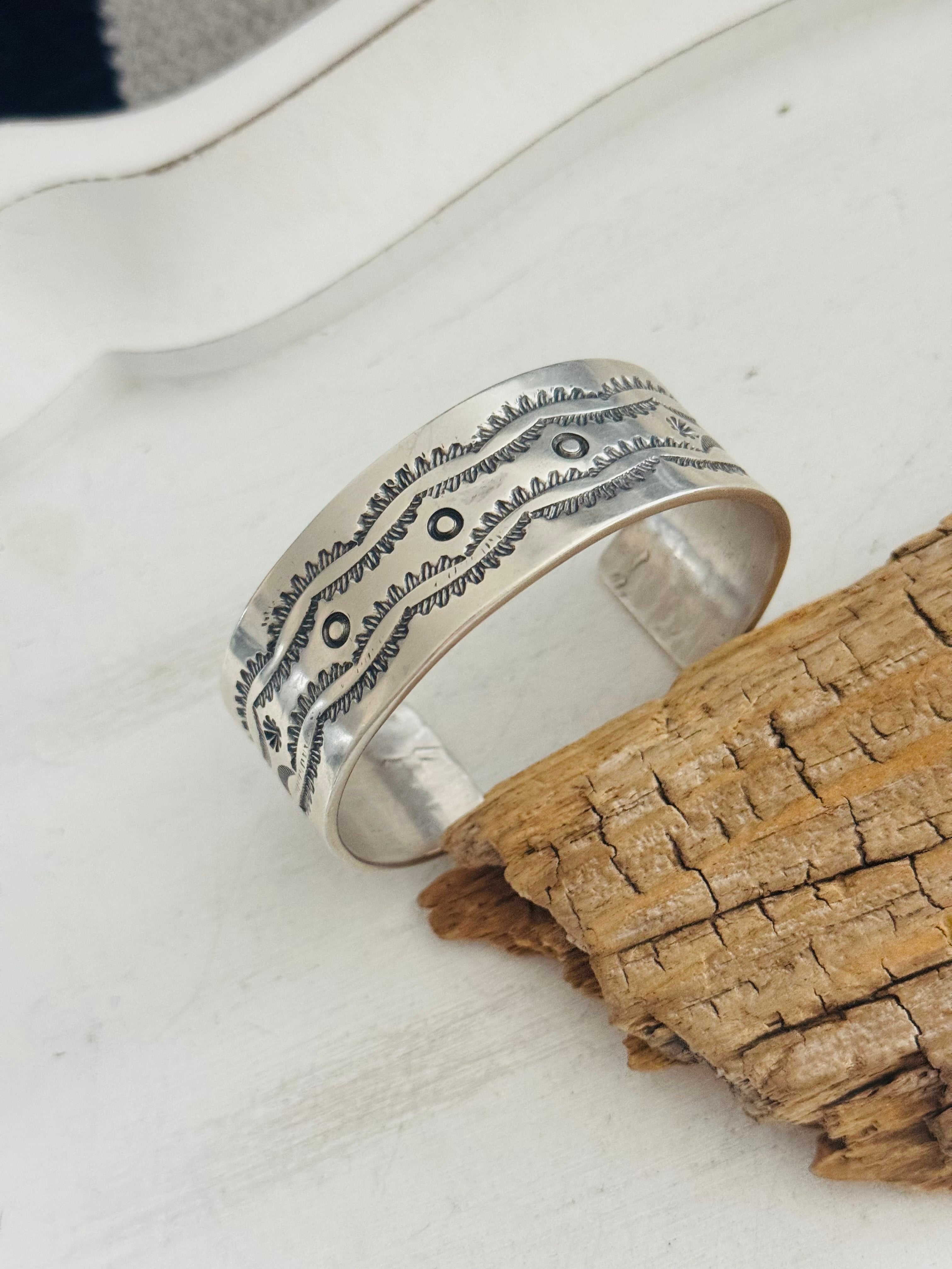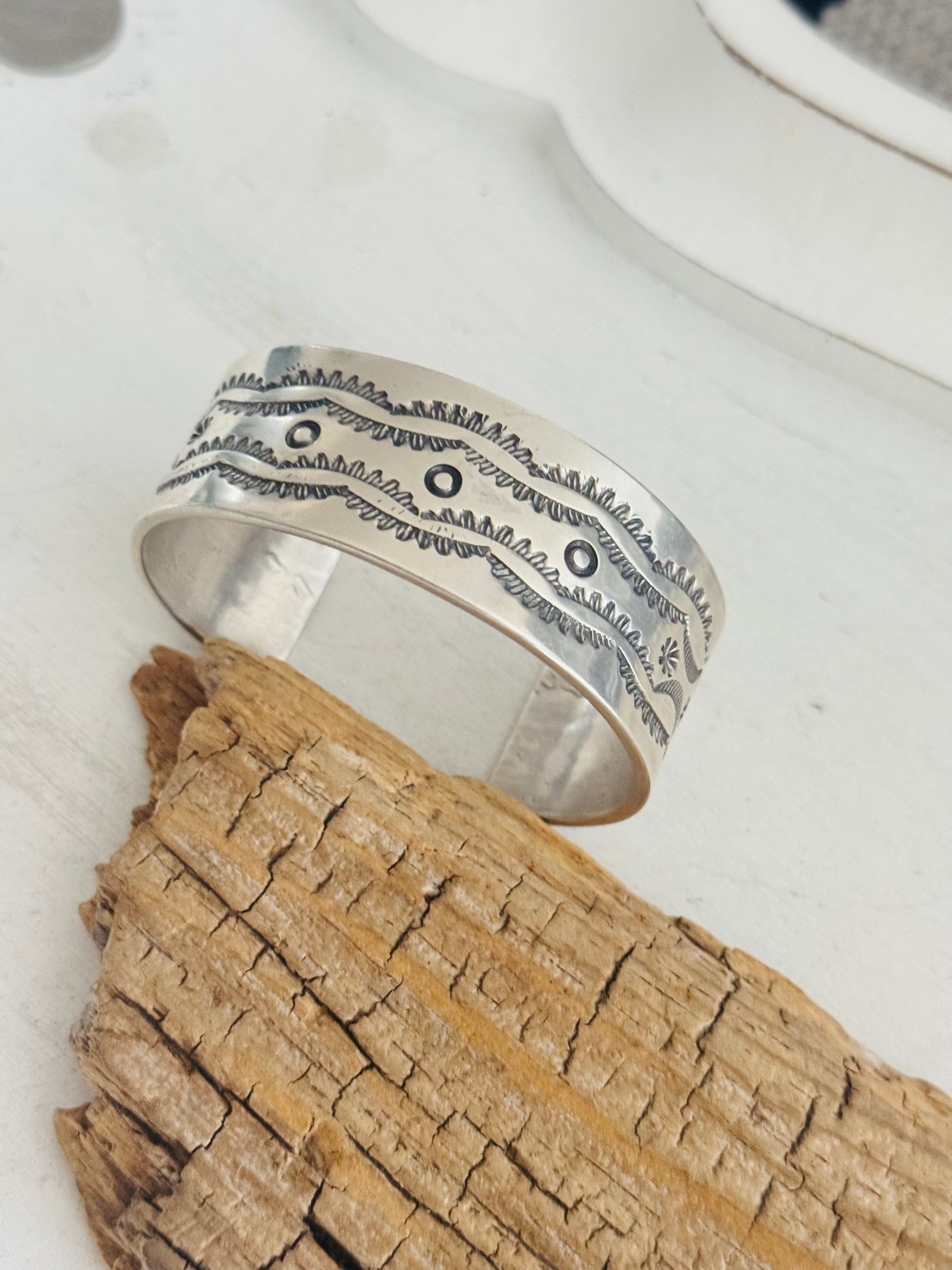 Navajo Made Stamped Sterling Silver Cuff Bracelet