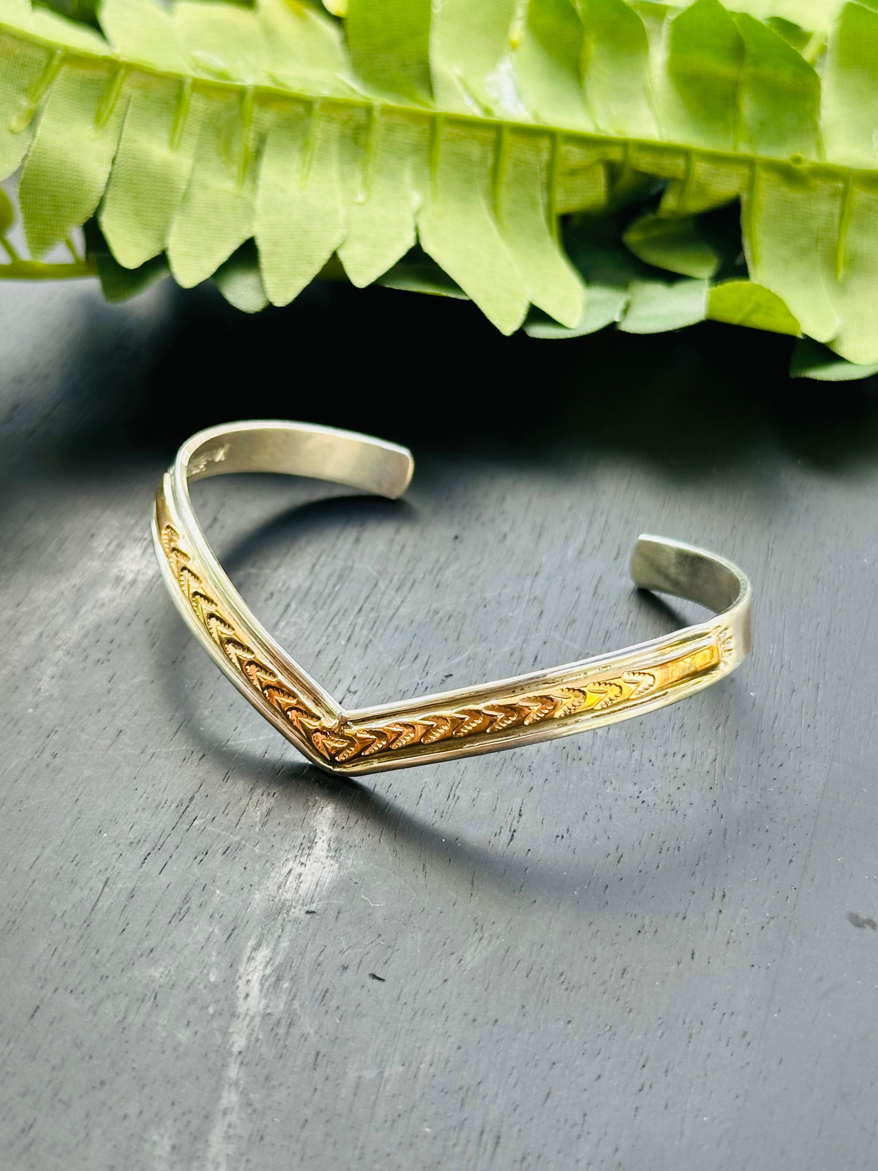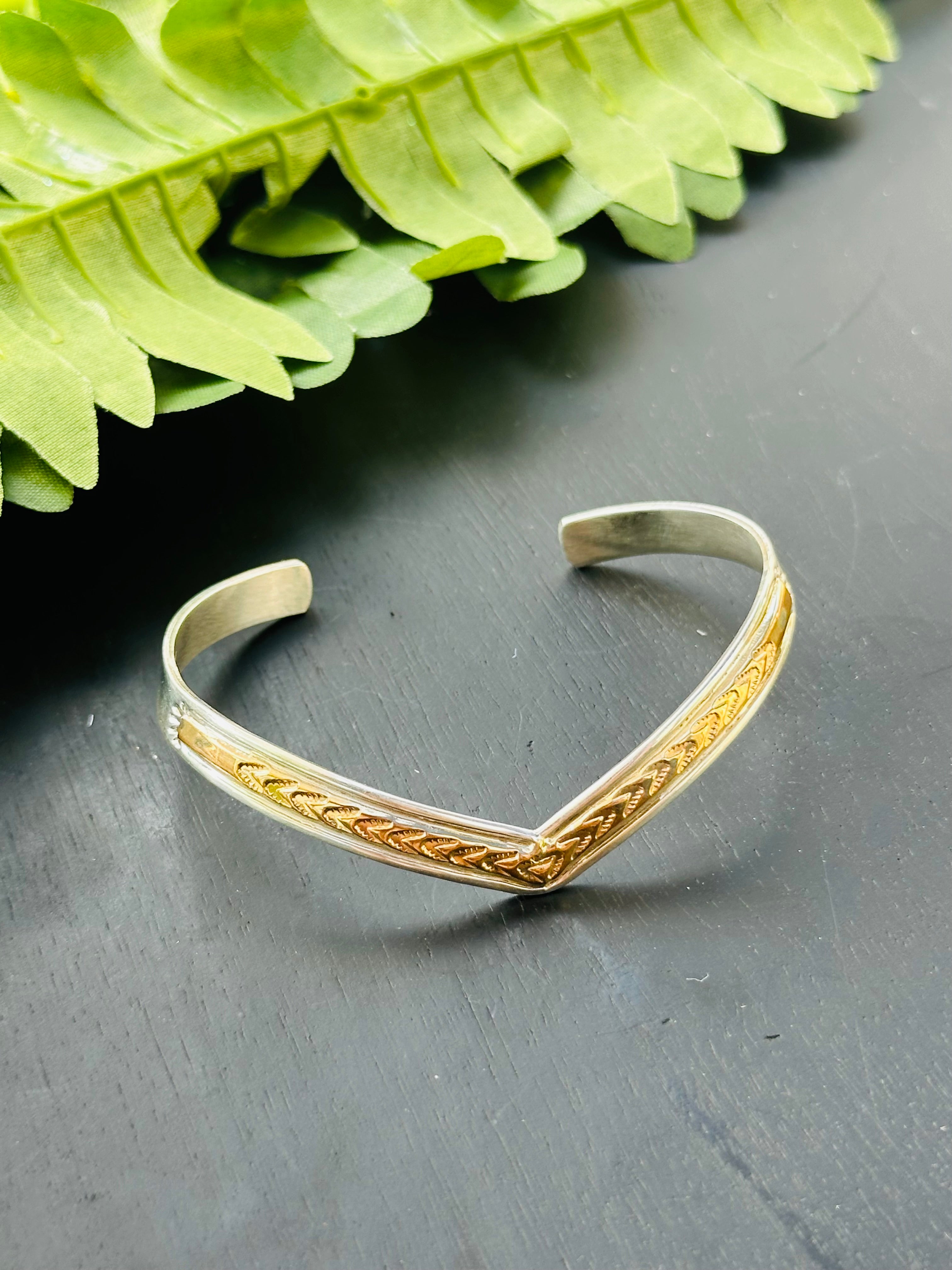 Navajo Made 14K Gold & Sterling Silver Cuff Bracelet