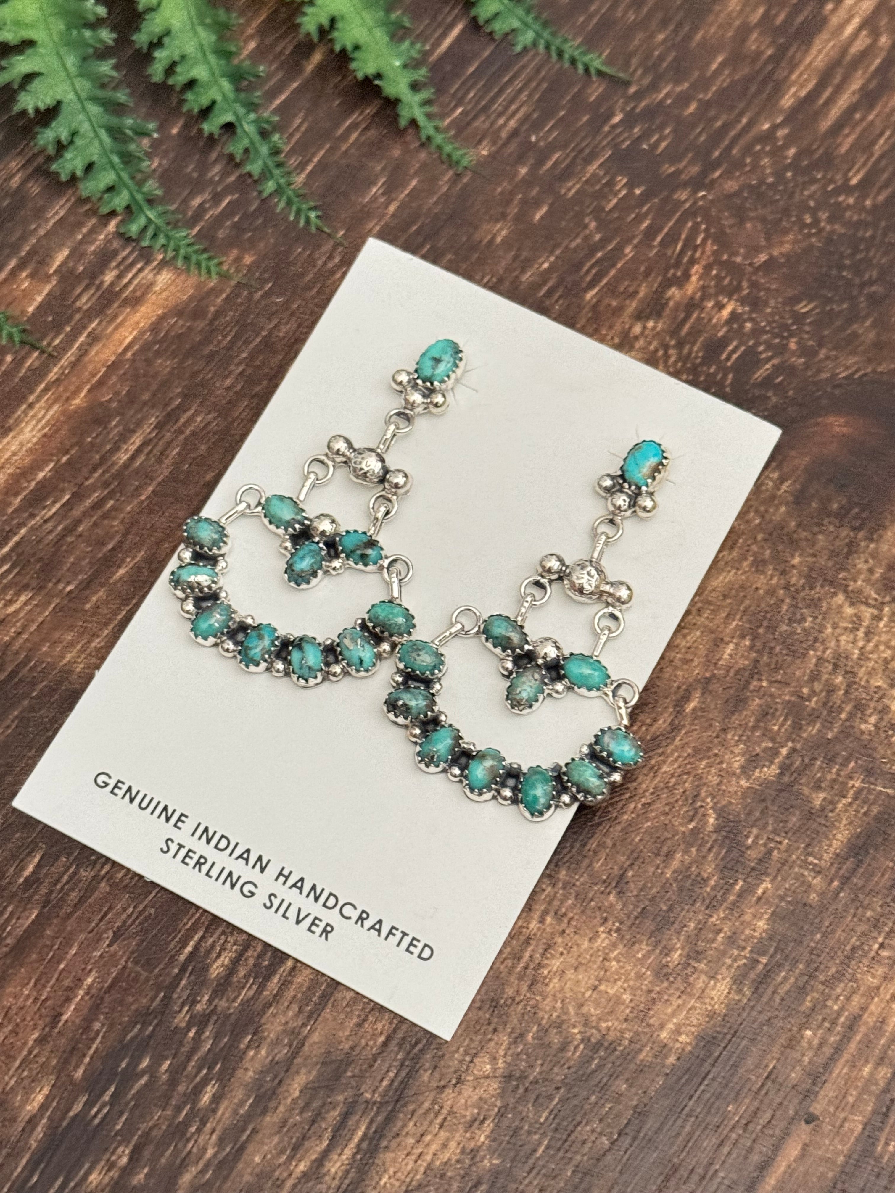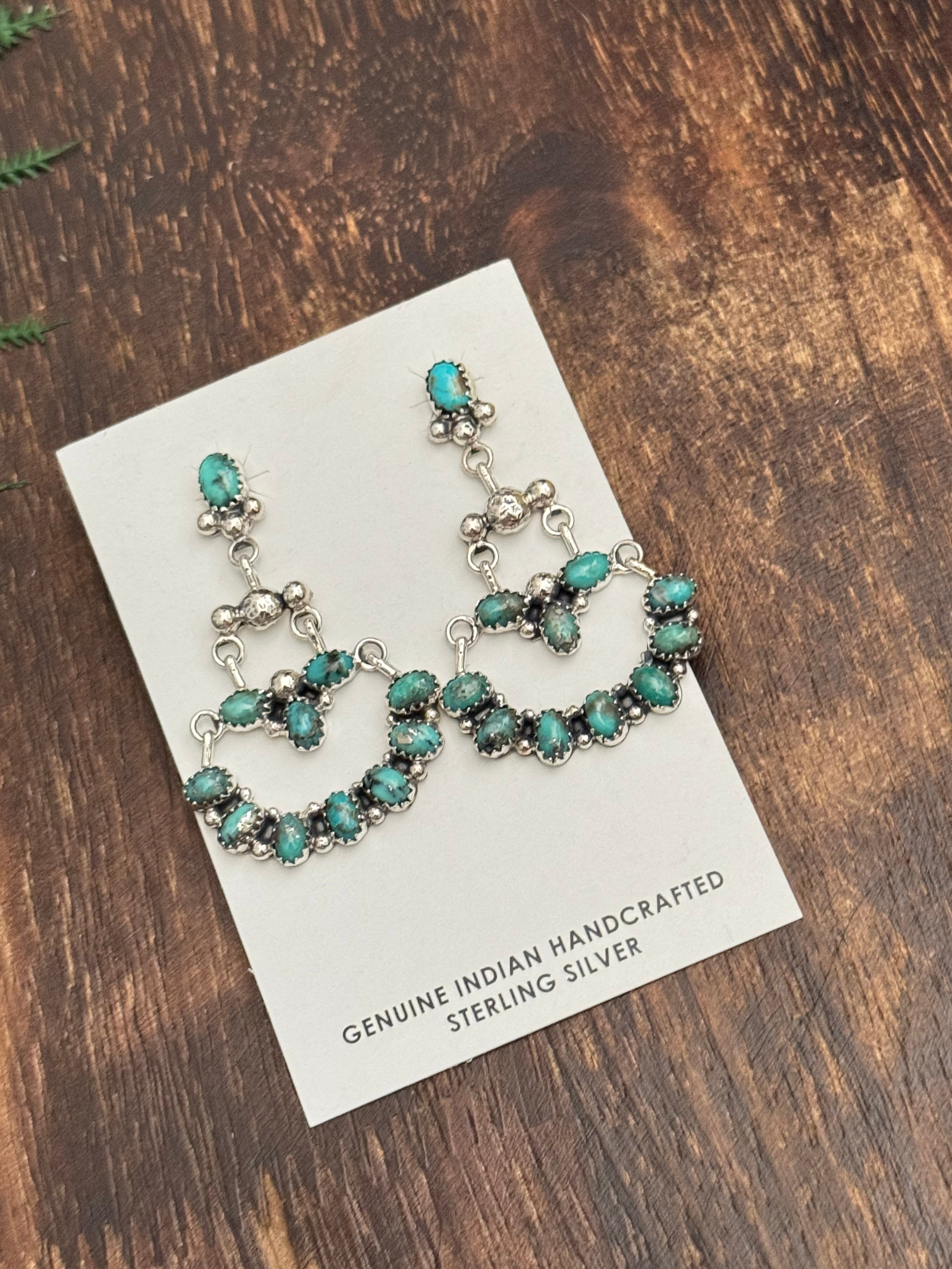 Navajo Made Red Skin Turquoise & Sterling Silver Post Dangle Cluster Earrings