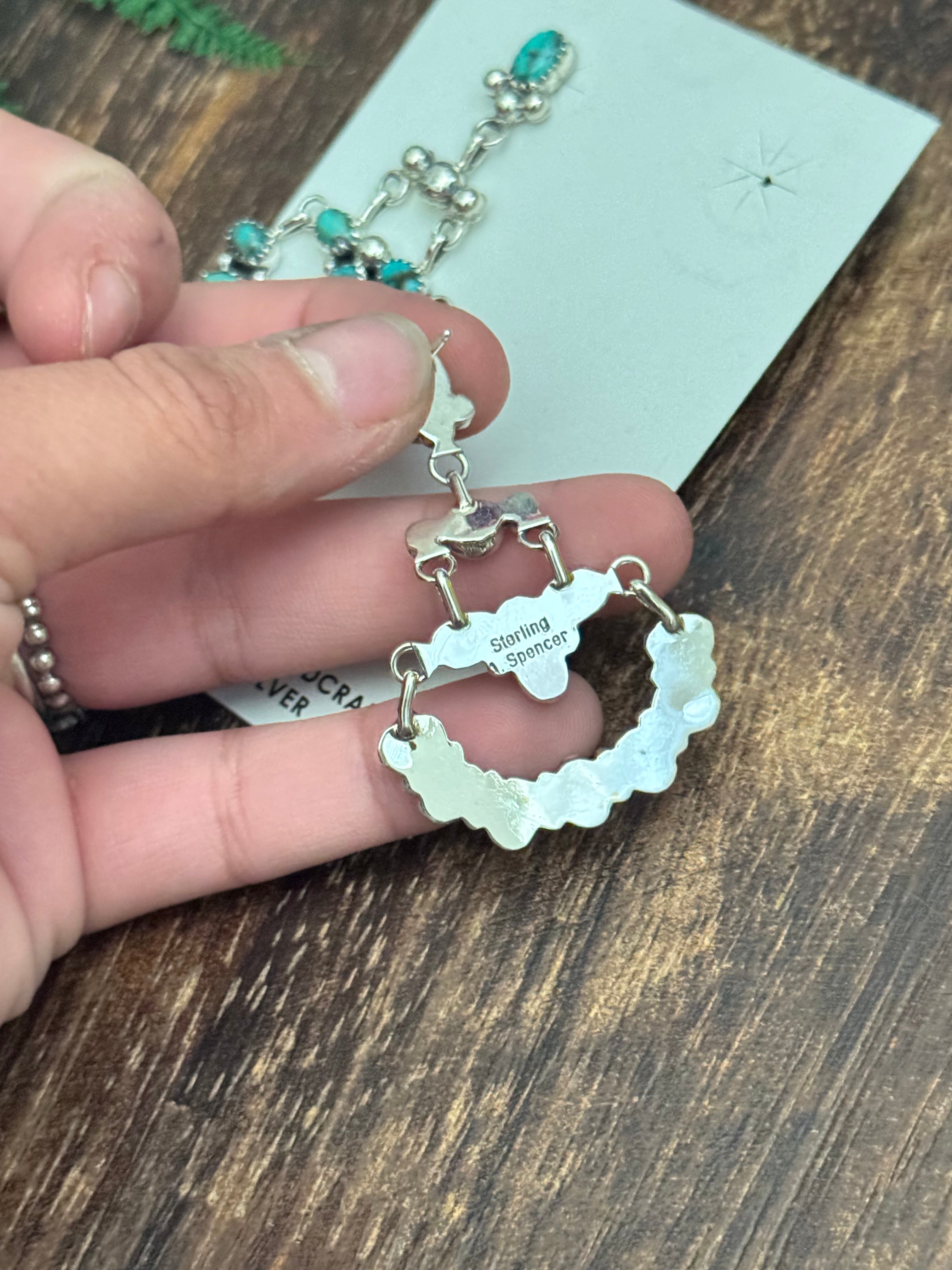 Navajo Made Red Skin Turquoise & Sterling Silver Post Dangle Cluster Earrings. It measures 2 1/8 inches long and 1 3/8 inches wide. Signed by artist and stamped sterling silver. Stones will differ due to natural stones.