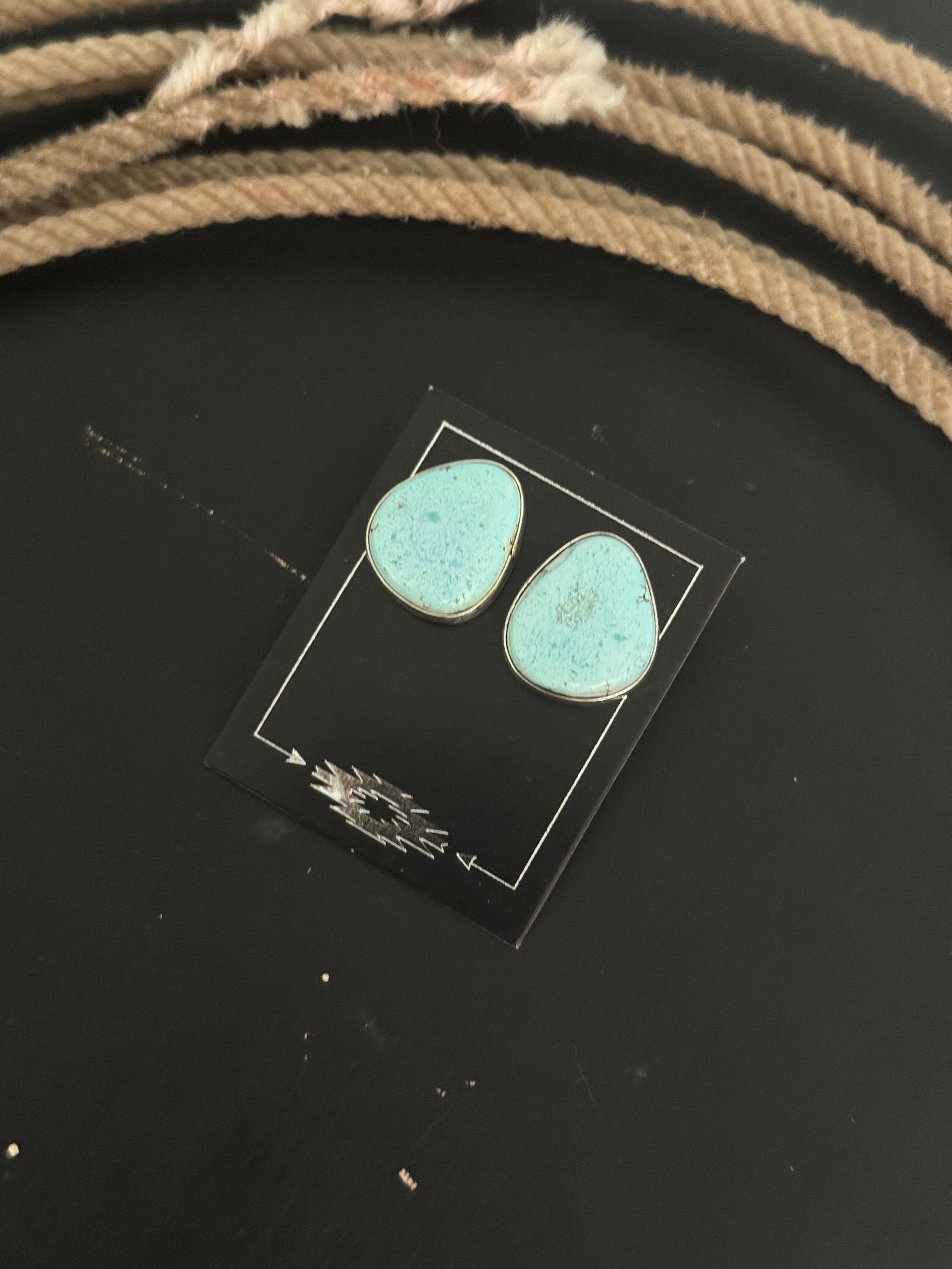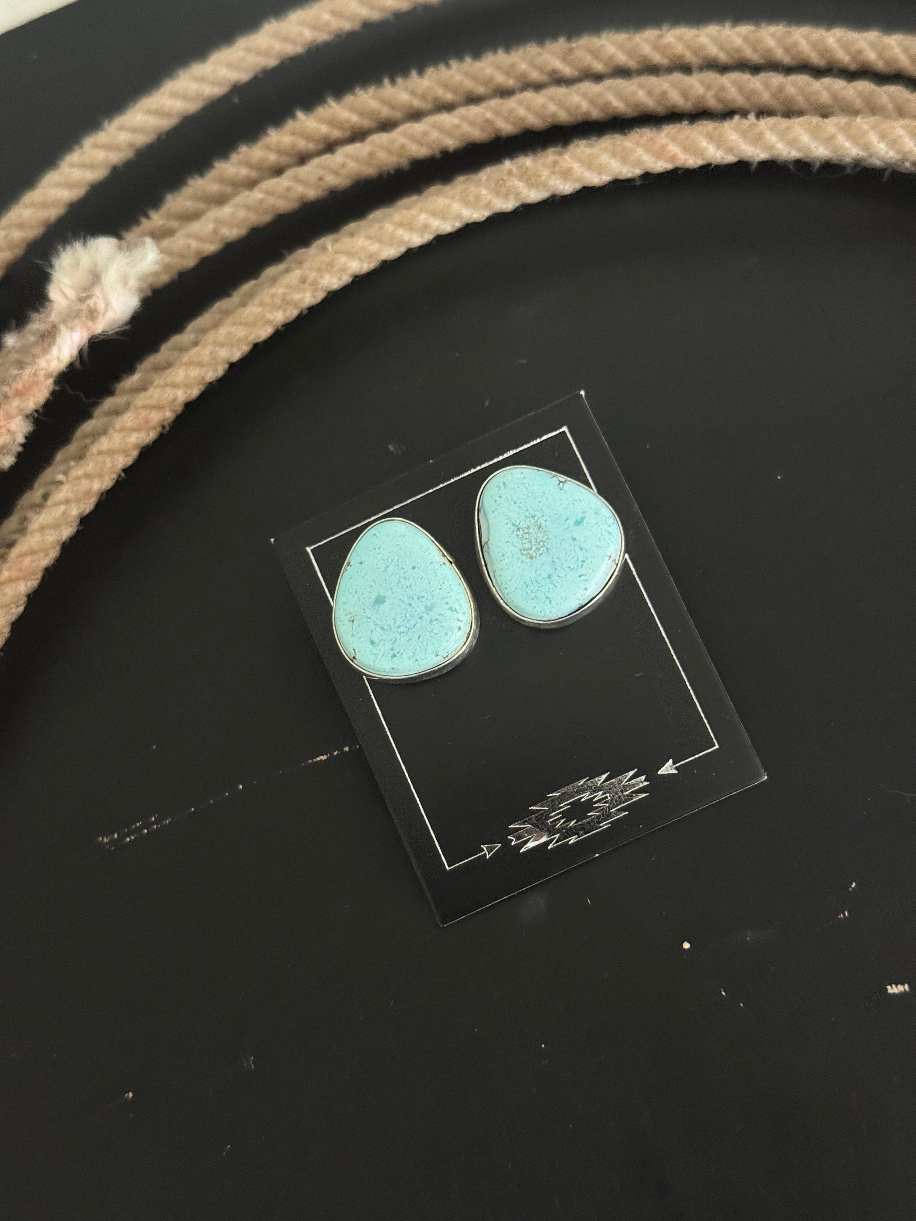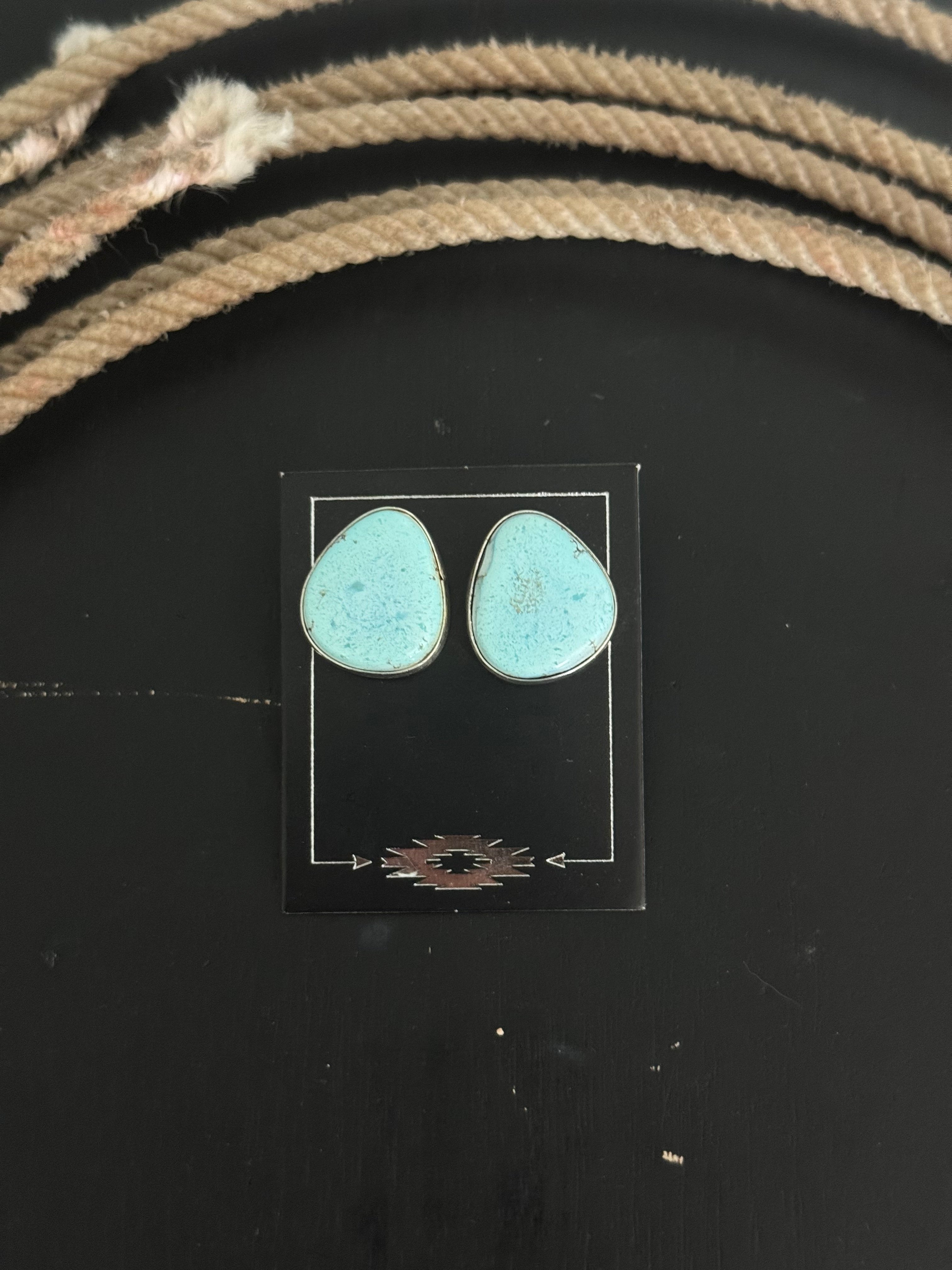 Navajo Made Golden Hills Turquoise & Sterling Silver Post Earrings