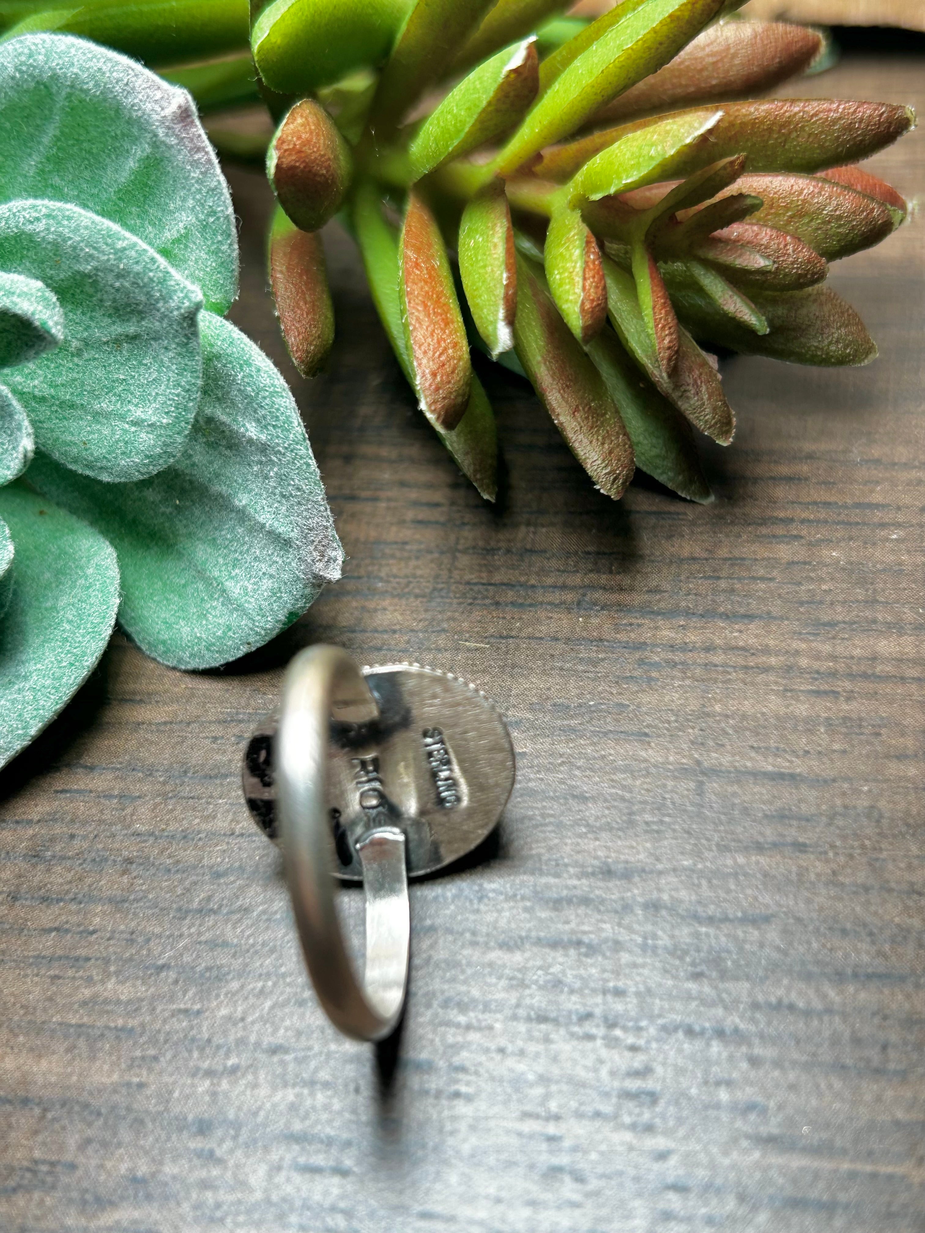 Navajo Made Golden Turquoise & Sterling Silver Ring Size 8.25