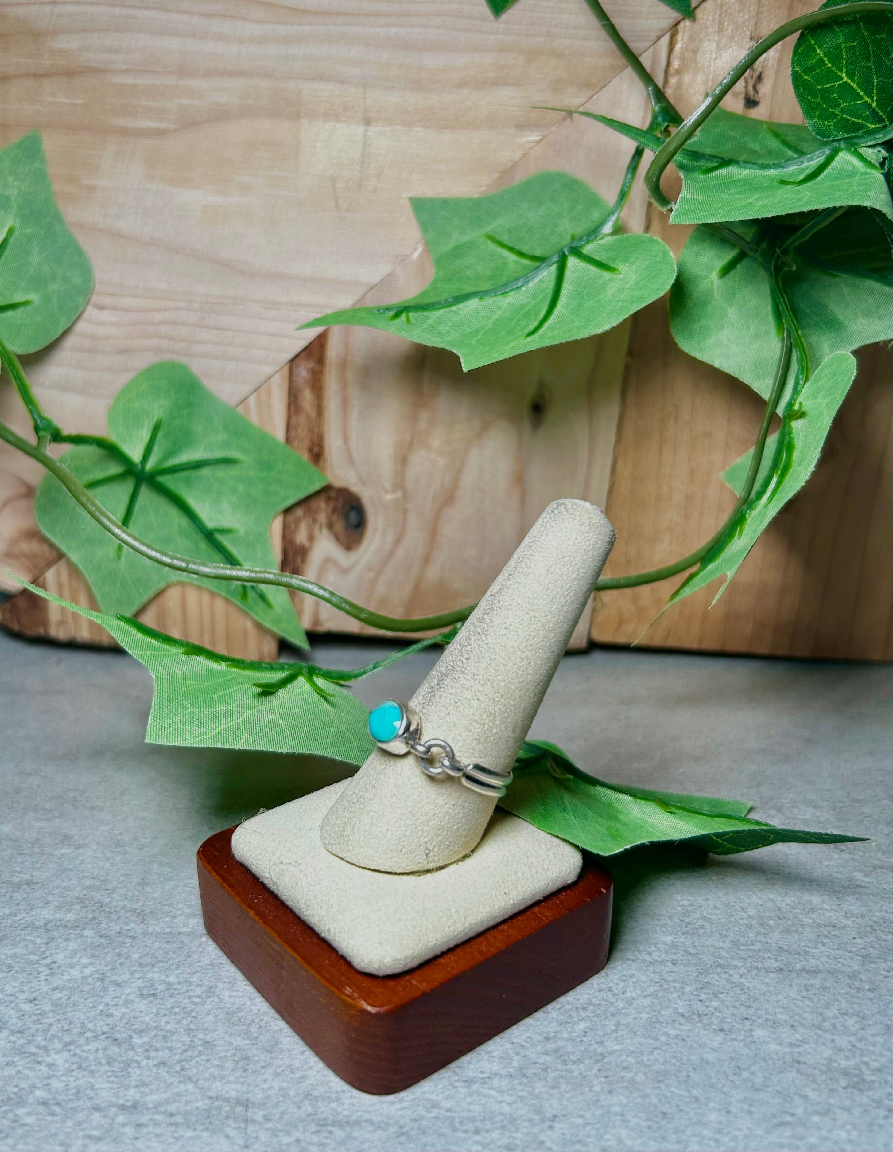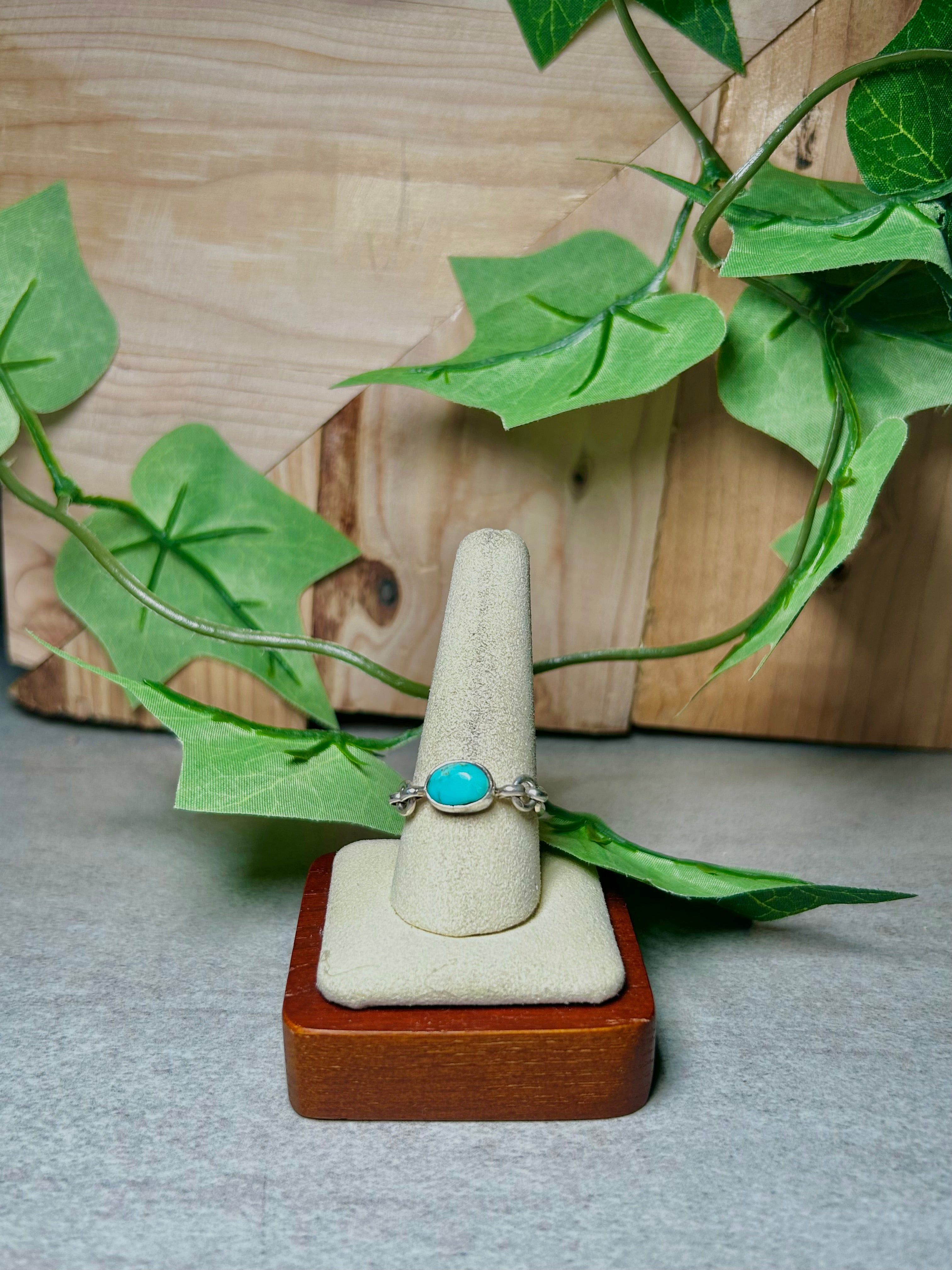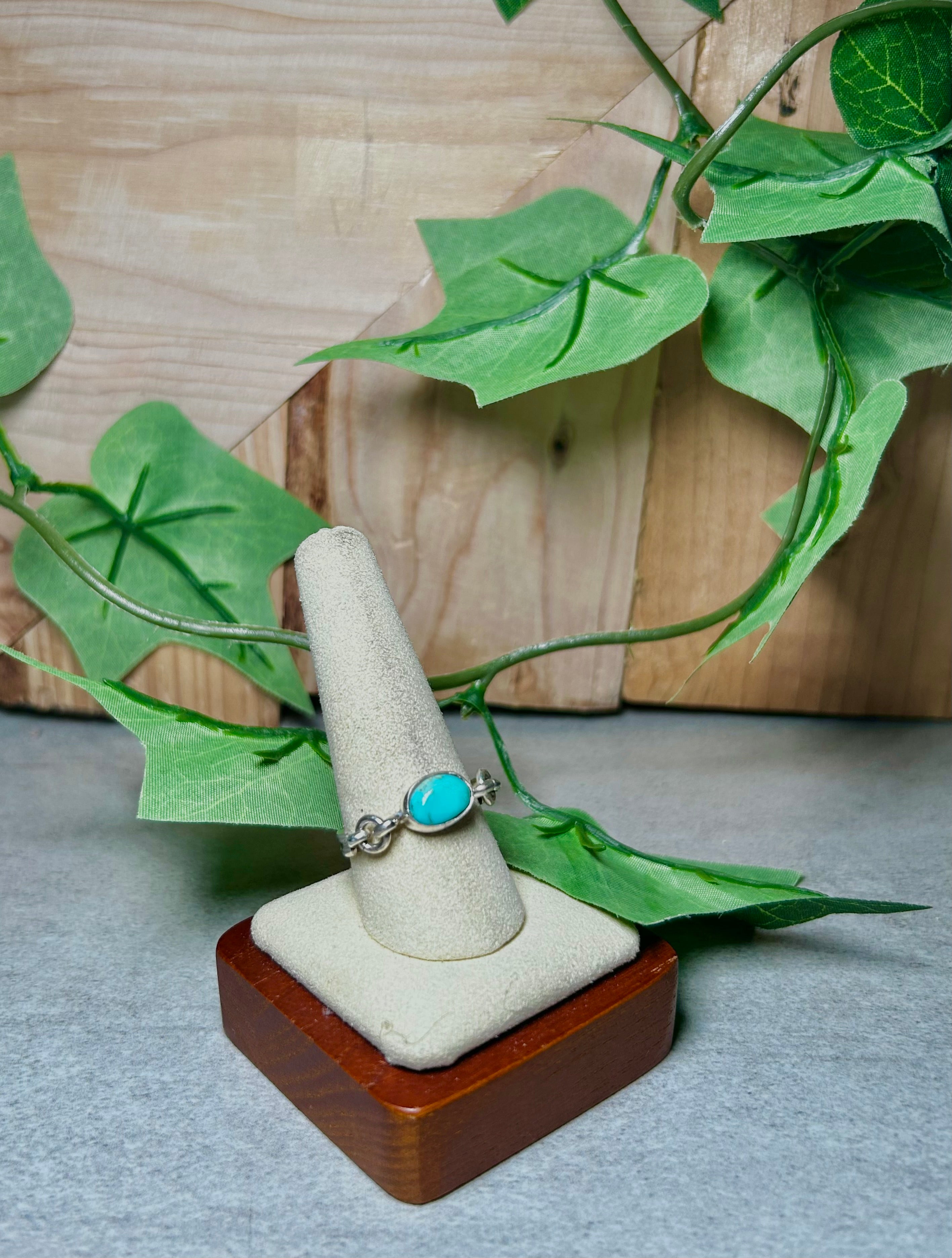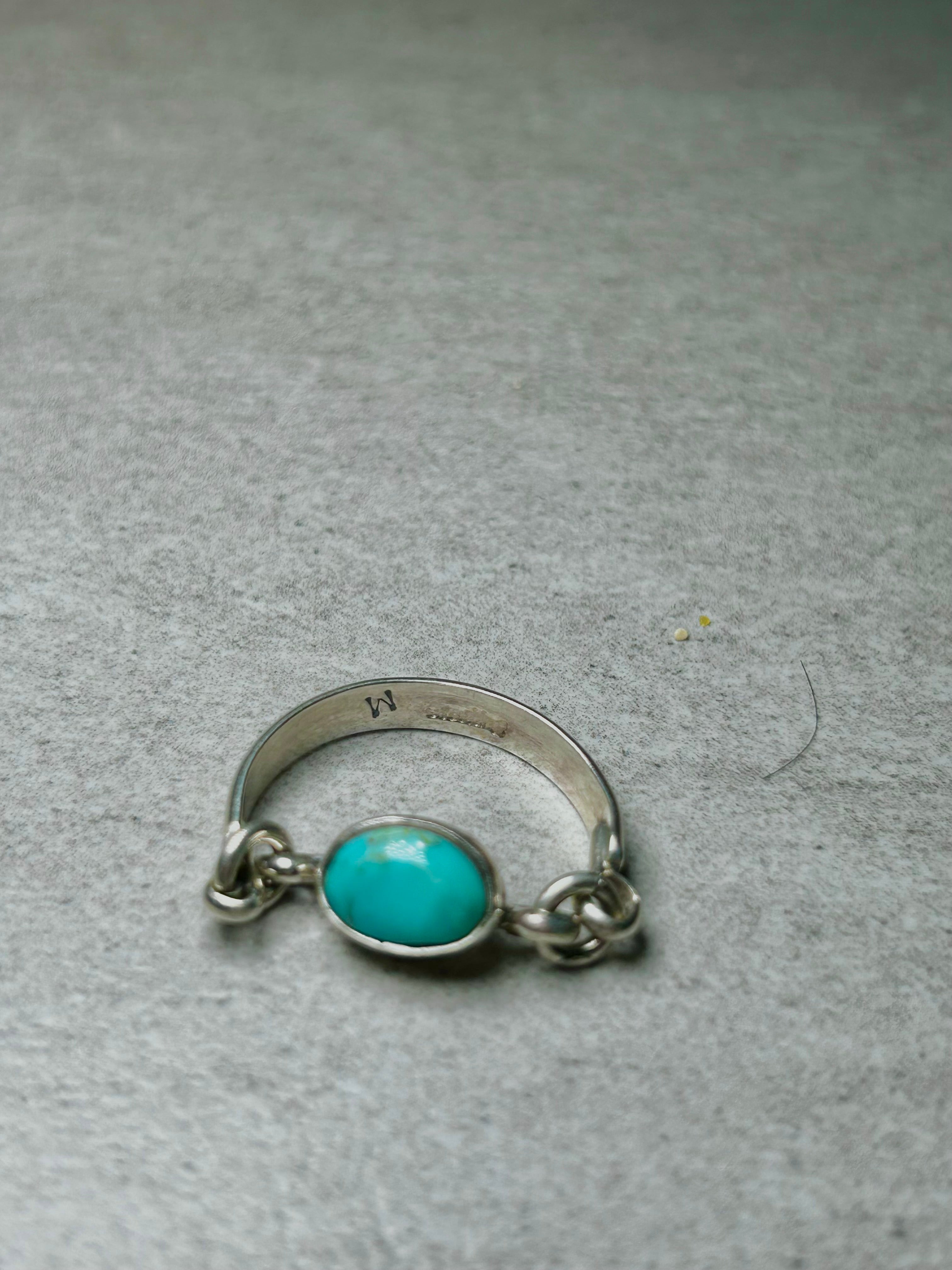 Navajo Made Kingman Turquoise and Sterling Silver Ring Size 10.25. It measures 1/4 of an inch long and 3/8 of an inch wide. Signed by the artist and stamped sterling silver.